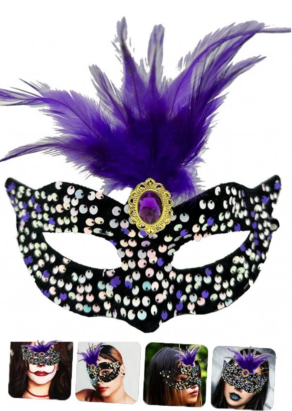 Karnavalda, baloda veya maskeli baloda göz kamaştırmak mı istiyorsunuz? Siyah Kadife Üzeri Rengarenk Payetli Pullu Mor Tüylü Mor Taşlı Parti Maskesi ile gecenin yıldızı siz olun