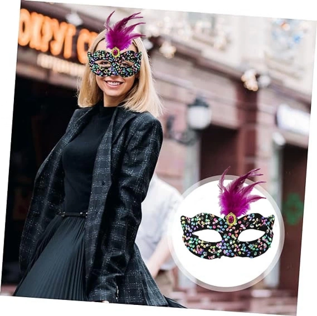 Karnavalda, baloda veya maskeli baloda göz kamaştırmak mı istiyorsunuz? Siyah Kadife Üzeri Rengarenk Payetli Pullu Pembe Tüylü Pembe Taşlı Parti Maskesi ile gecenin yıldızı siz olun