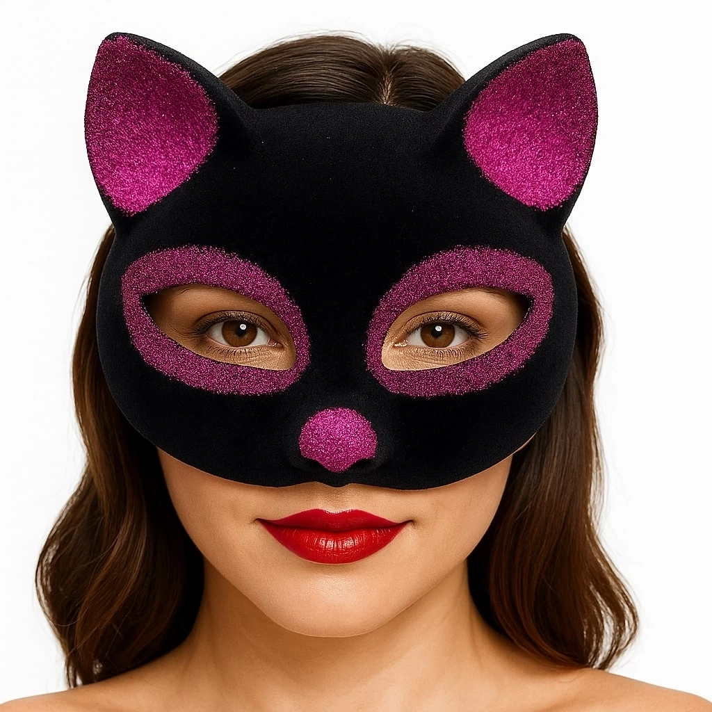 Siyah Renk Fuşya Simli Süet Kedi Maskesi ile sevimli ve eğlenceli bir görünüm oluşturun ve özel günlerinizi unutulmaz kılın