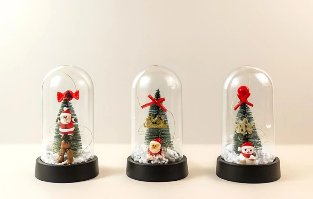 Yılbaşı Temalı Işıklı Dekoratif Cam Fanus Alk5038