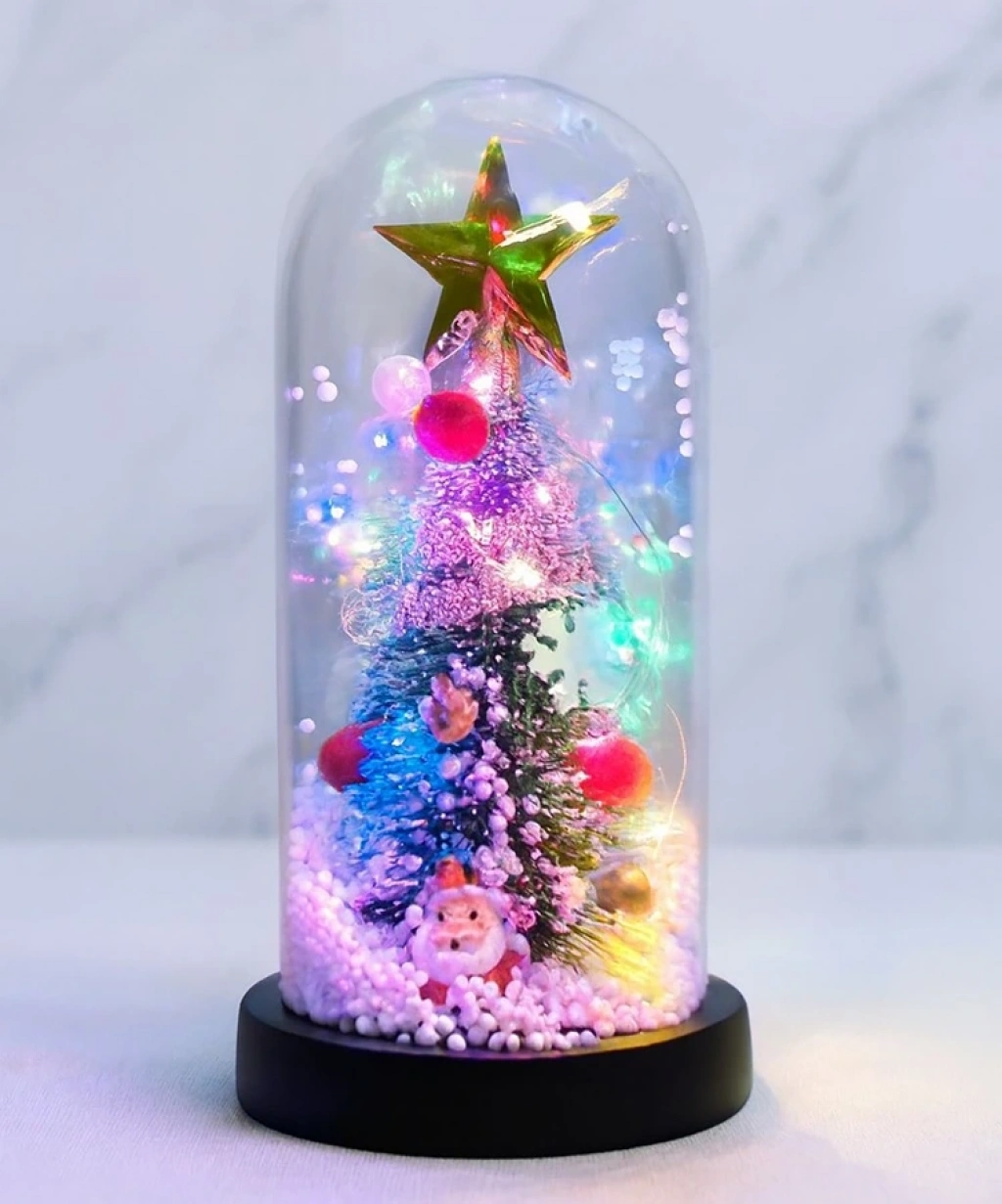 Yılbaşı Temalı Işıklı Dekoratif Cam Fanus Alk5077