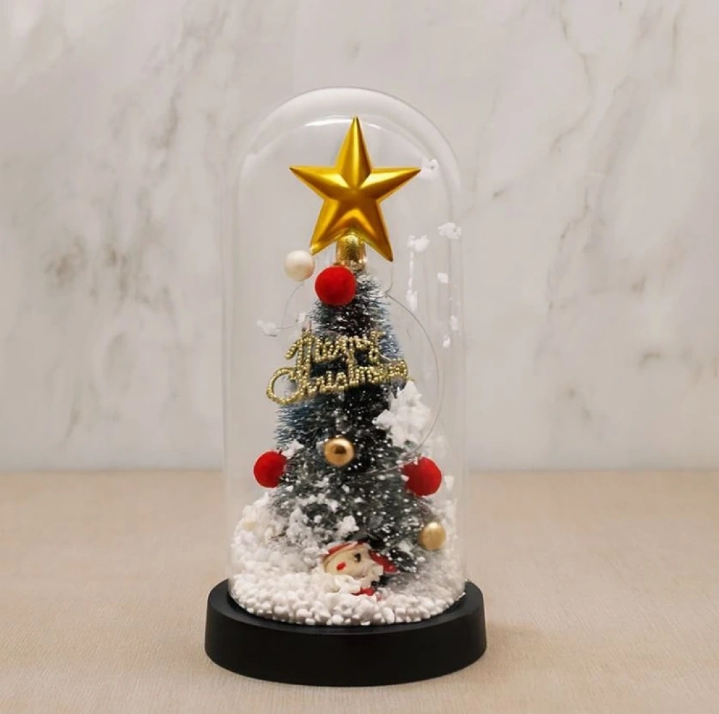 Yılbaşı Temalı Işıklı Dekoratif Cam Fanus Alk5074
