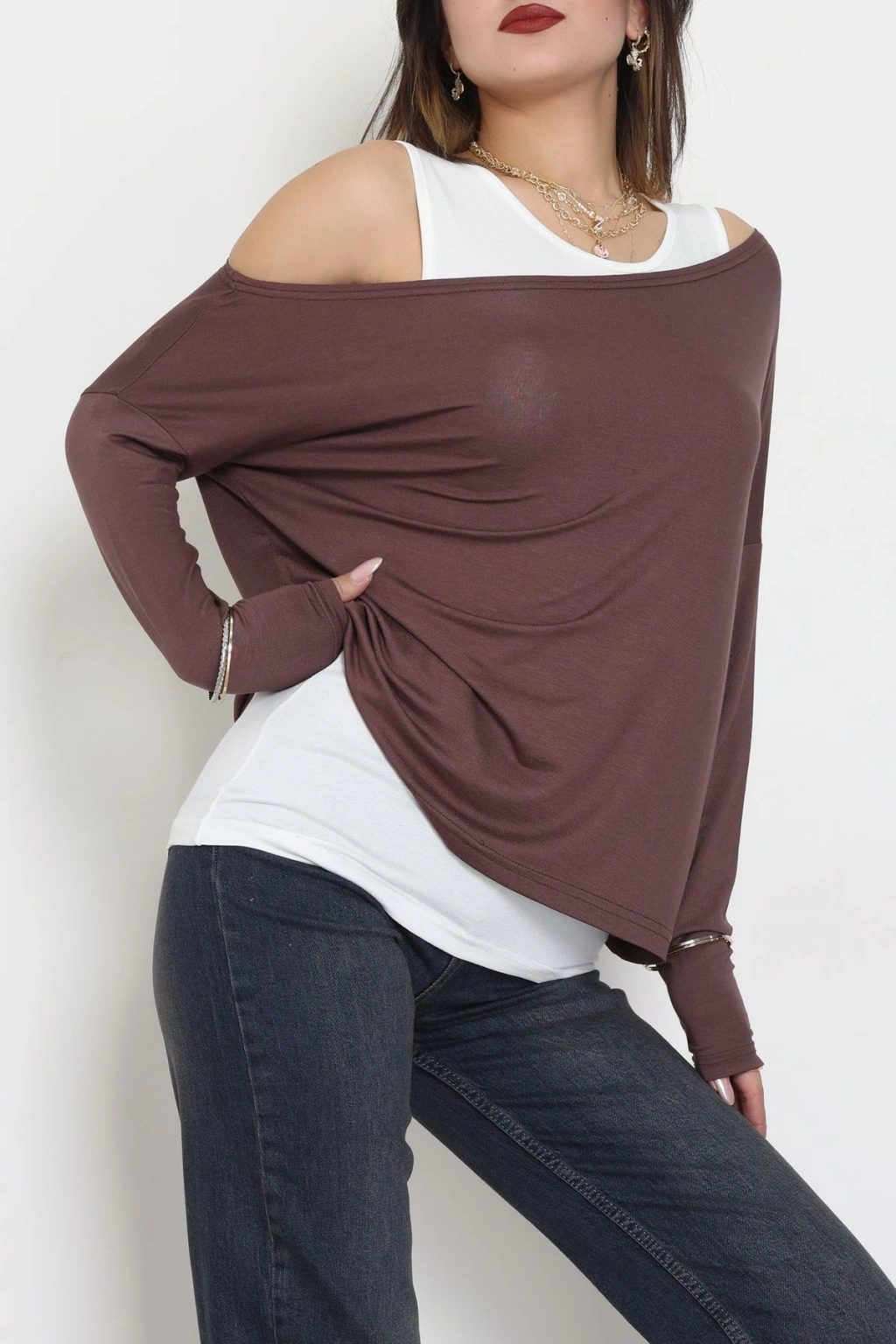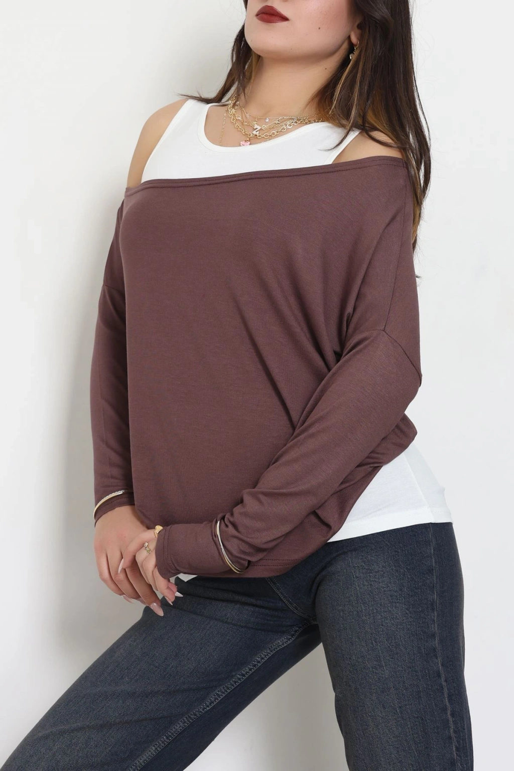 İçli Dışlı İkili Viskon Bluz Kahve - 70827.1095.