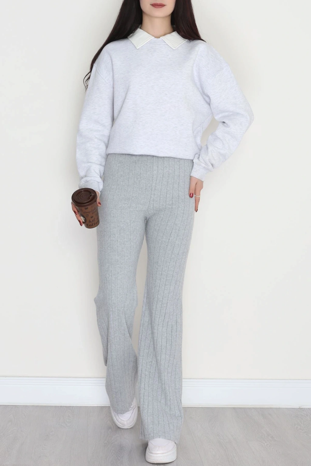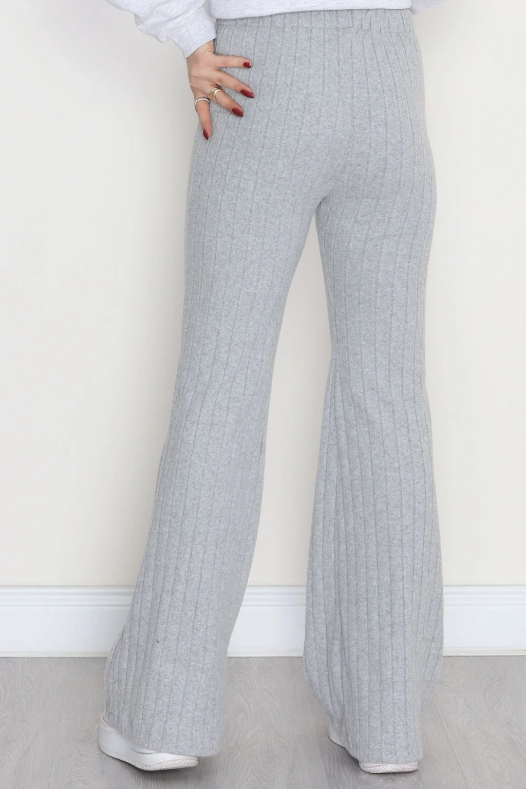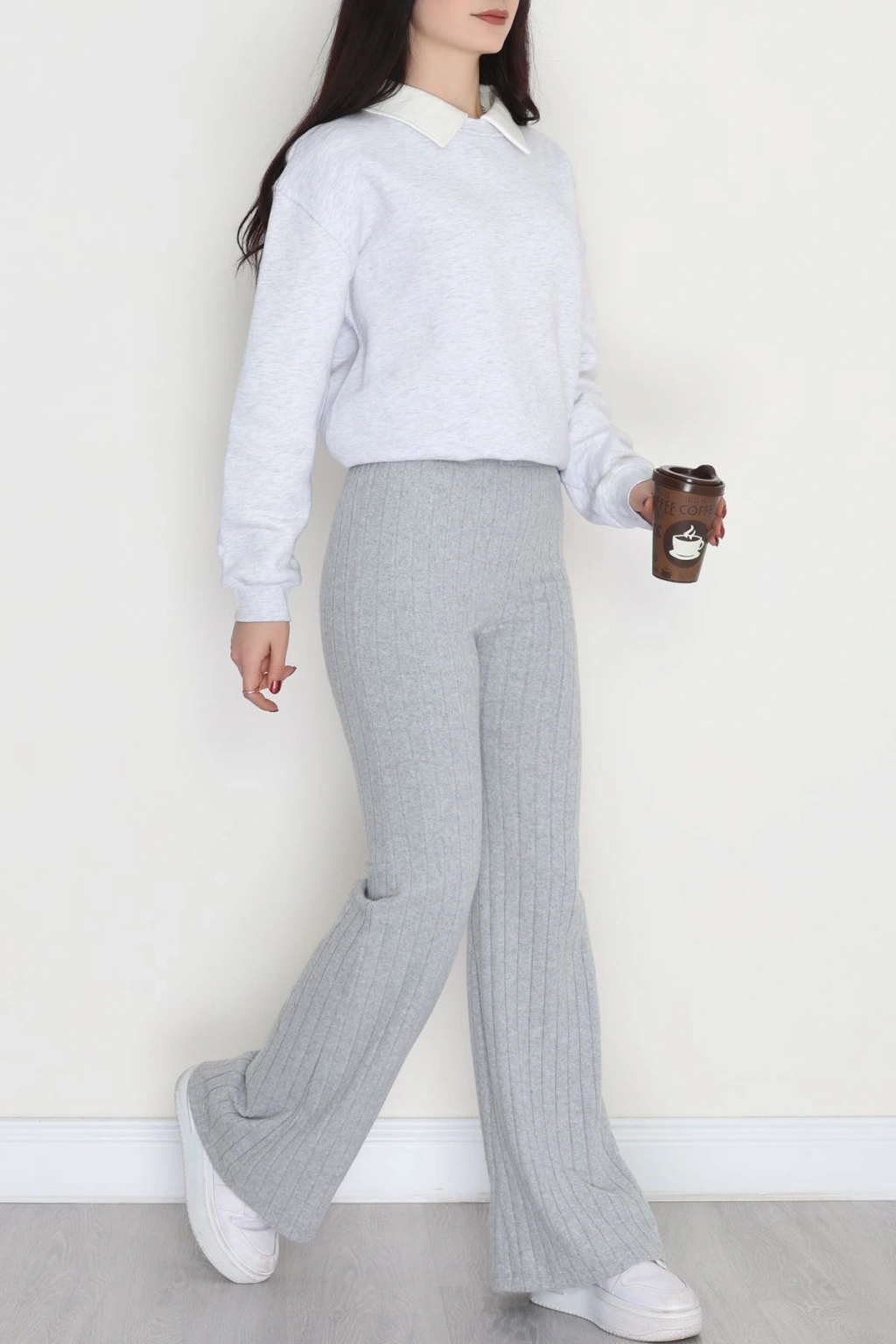 3 İplik Biyeli Palazzo Eşofman Altı Beyaz - 30104.1878.
