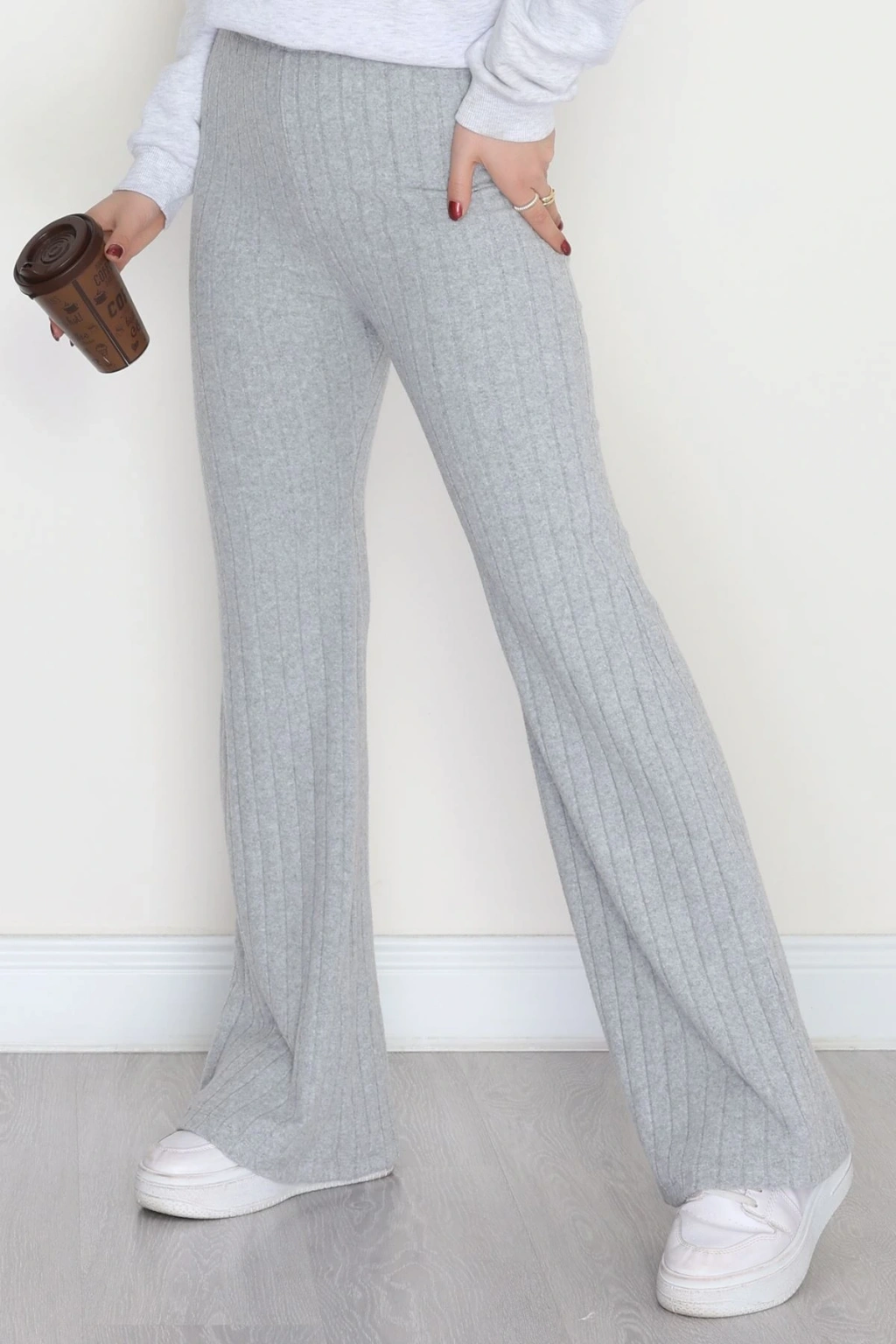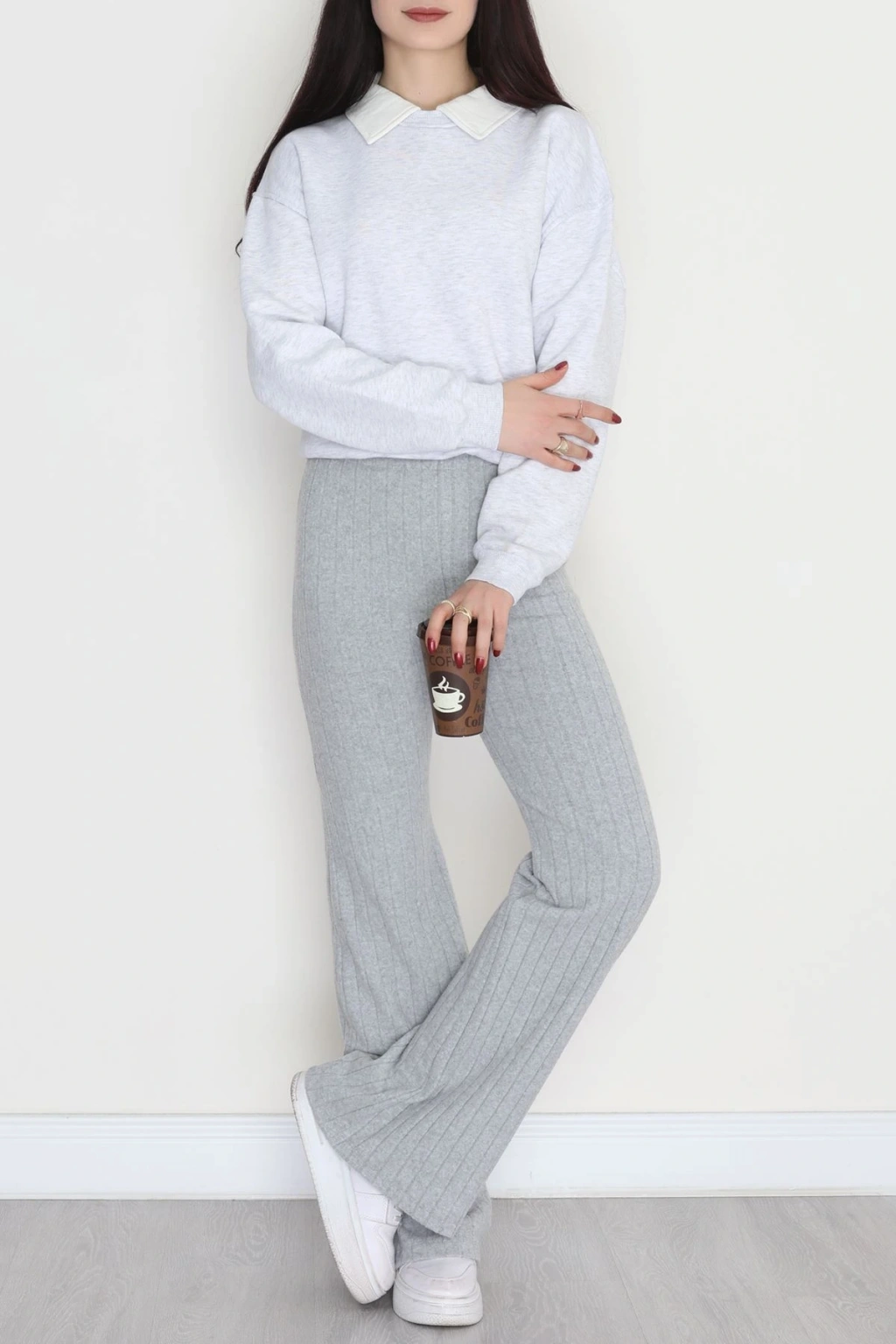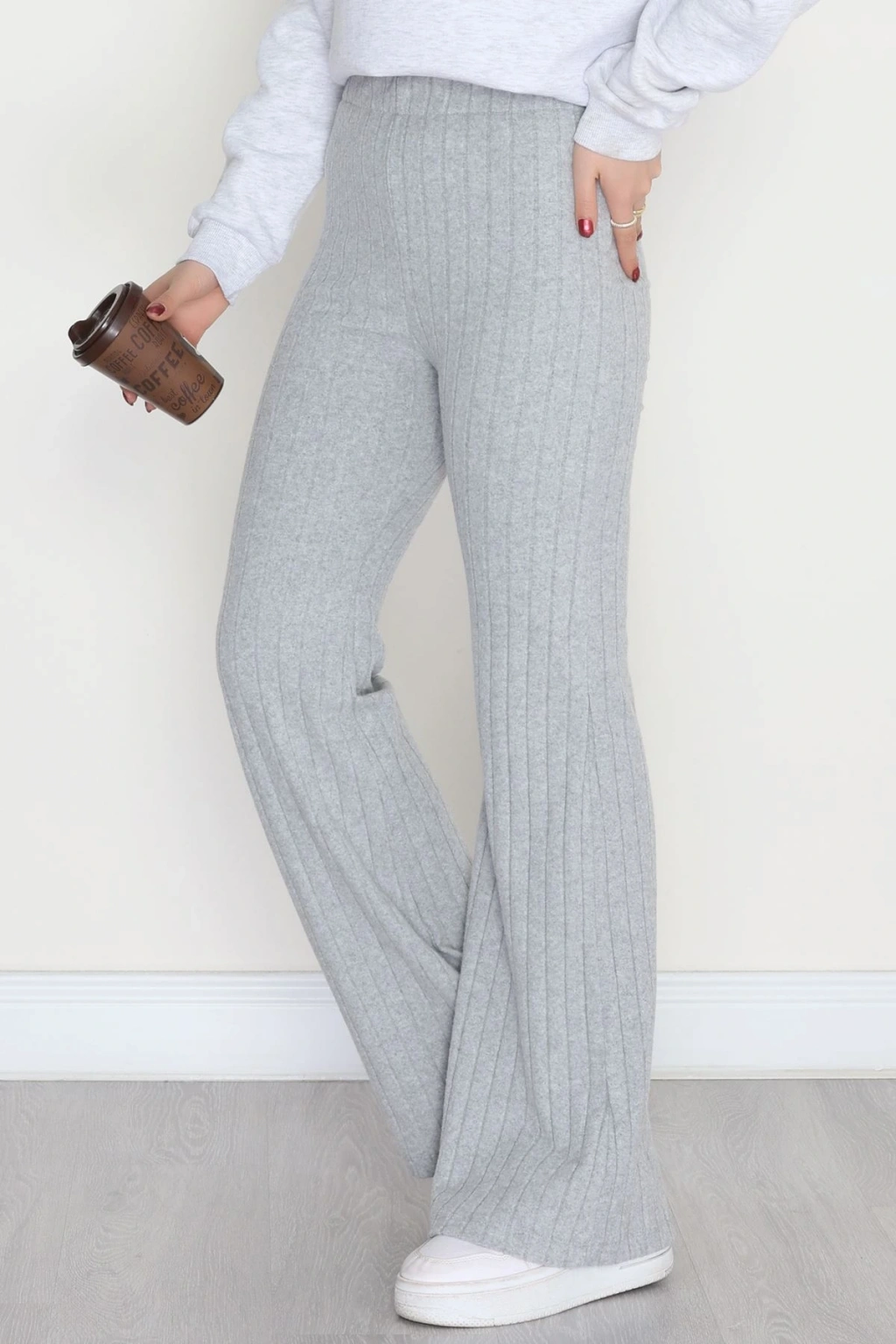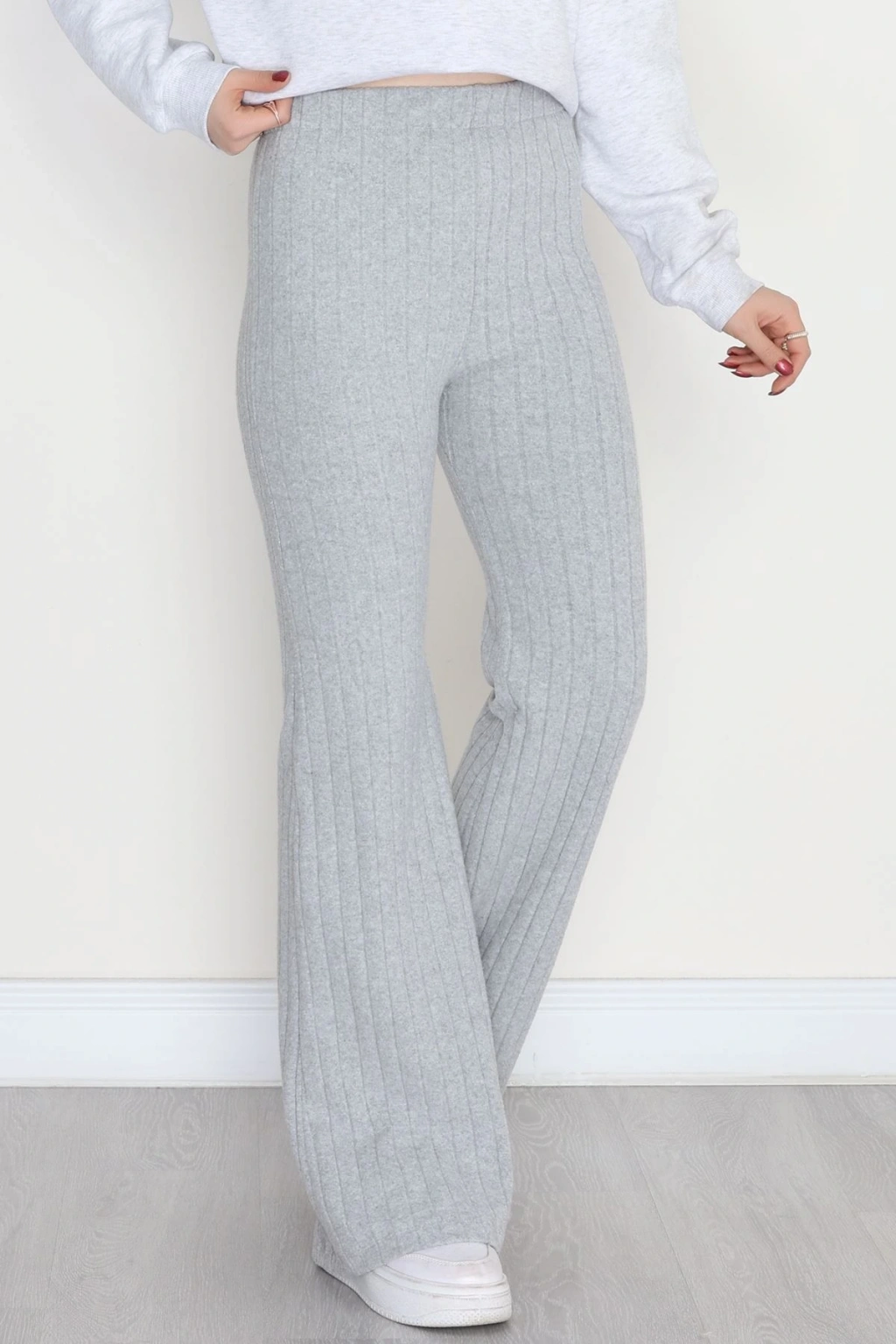 3 İplik Biyeli Palazzo Eşofman Altı Beyaz - 30104.1878.