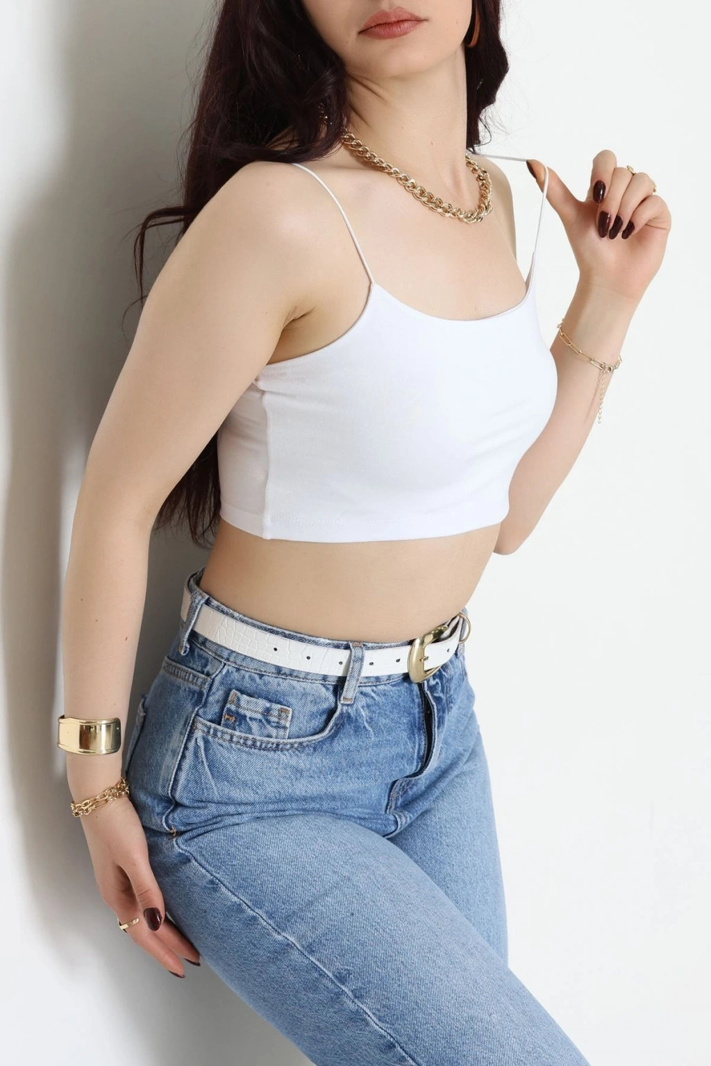Biyeli Kalın Askılı Crop Atlet Beyaz - 9032.125.