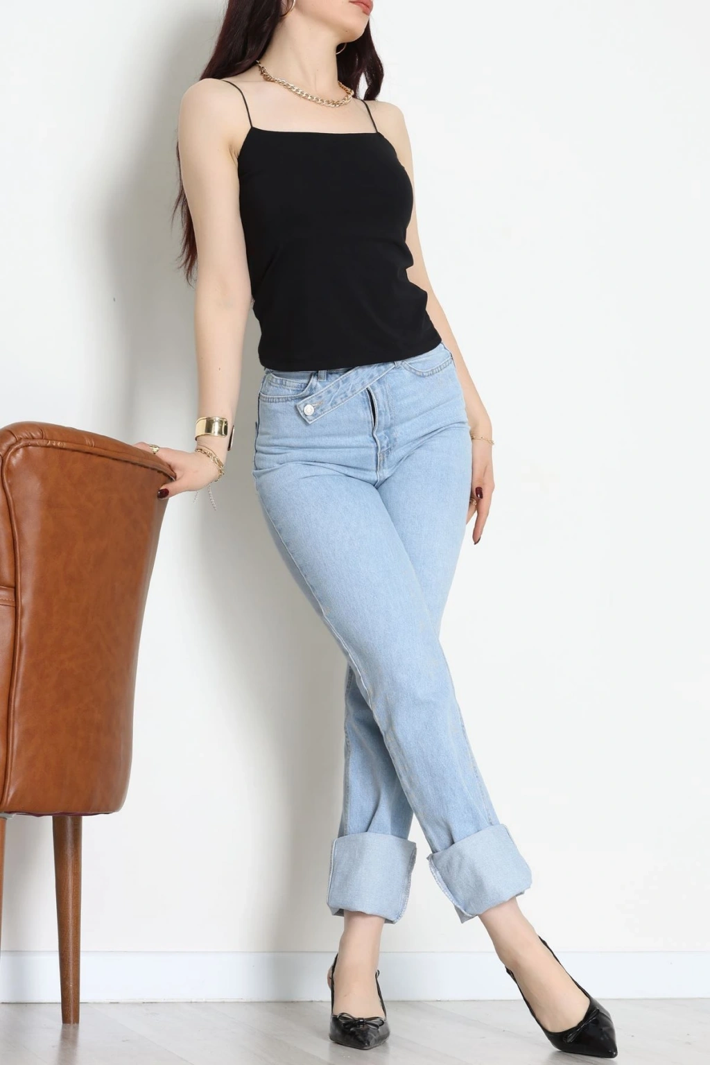 Biyeli Kalın Askılı Crop Atlet Siyah - 9032.125.