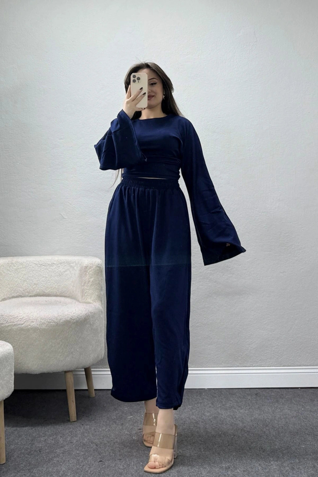 # İspanyol Kol Lacivert Takım ## Modern Kesim ve Konforlu Tasarım Yumuşak dokusuyla üst düzey konfor sunan **ispanyol kol lacivert takım**, hareket özgürlüğü sağlayan geniş kesimiyle günlük kullanımda şık bir duruş sergiliyor. Bu parça, lacivert tonu ve dikiş detaylarıyla modern silüet oluştururken gün boyu formunu koruyor. Bu ispanyol kol lacivert takım, esnek lifli yapısı sayesinde yüksek konfor sağlayarak **kadın ikili takım** modelleri arasında ön plana çıkıyor. Rahat ve şık ikili takım arayanlar için ideal bir çözüm sunan modelimiz, kumaşın akıcı yapısı sayesinde her adımda estetik bir görünüm kazandırıyor. Genişleyen ispanyol kol detayları, tasarımın omuz hattına farklı bir derinlik katarak sıradan görünümlerden uzaklaştırıyor. Paça kısmındaki dikiş ayrıntıları, pantolonun formunu sabit tutarak çok daha derli toplu ve estetik bir görünüm sergilemesini sağlıyor. Bel bölgesindeki gizli elastik bant, vücuda baskı yapmadan güvenli bir tutuş sağlarken hareket kabiliyetini de kısıtlamıyor. Tok dokulu esnek kumaş özelliği, diz yapma ve sarkma ihtimalini ortadan kaldırarak uzun ömürlü bir kullanım sunuyor. Hem konforu hem de modern çizgileri birleştiren bu **dikişli paça pantolon** tasarımı, fiyat performans dengesiyle dikkat çeken ekonomik bir seçenektir. Satın almak için hemen sepete ekleyin.