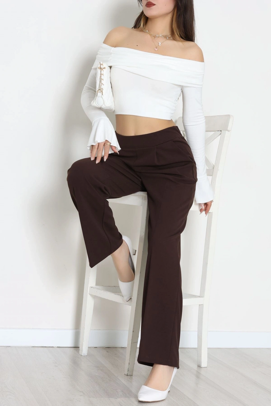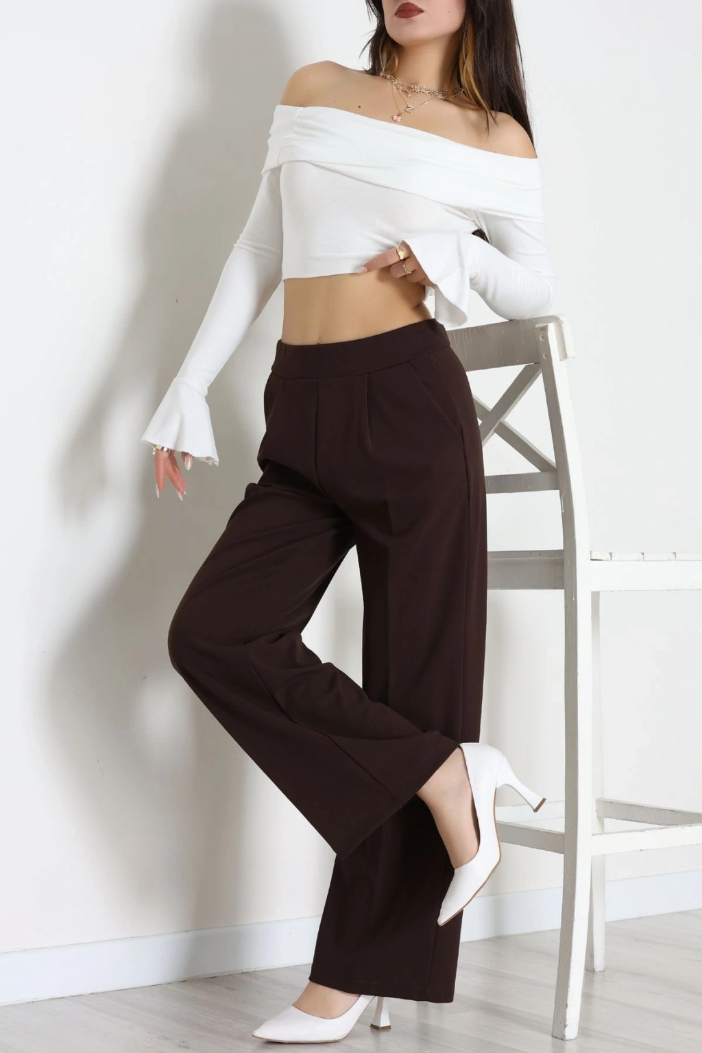 Beli Garnili Poliviskon Palazzo Pantolon Kahve - 51235.1920.