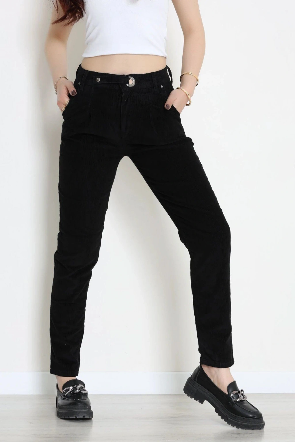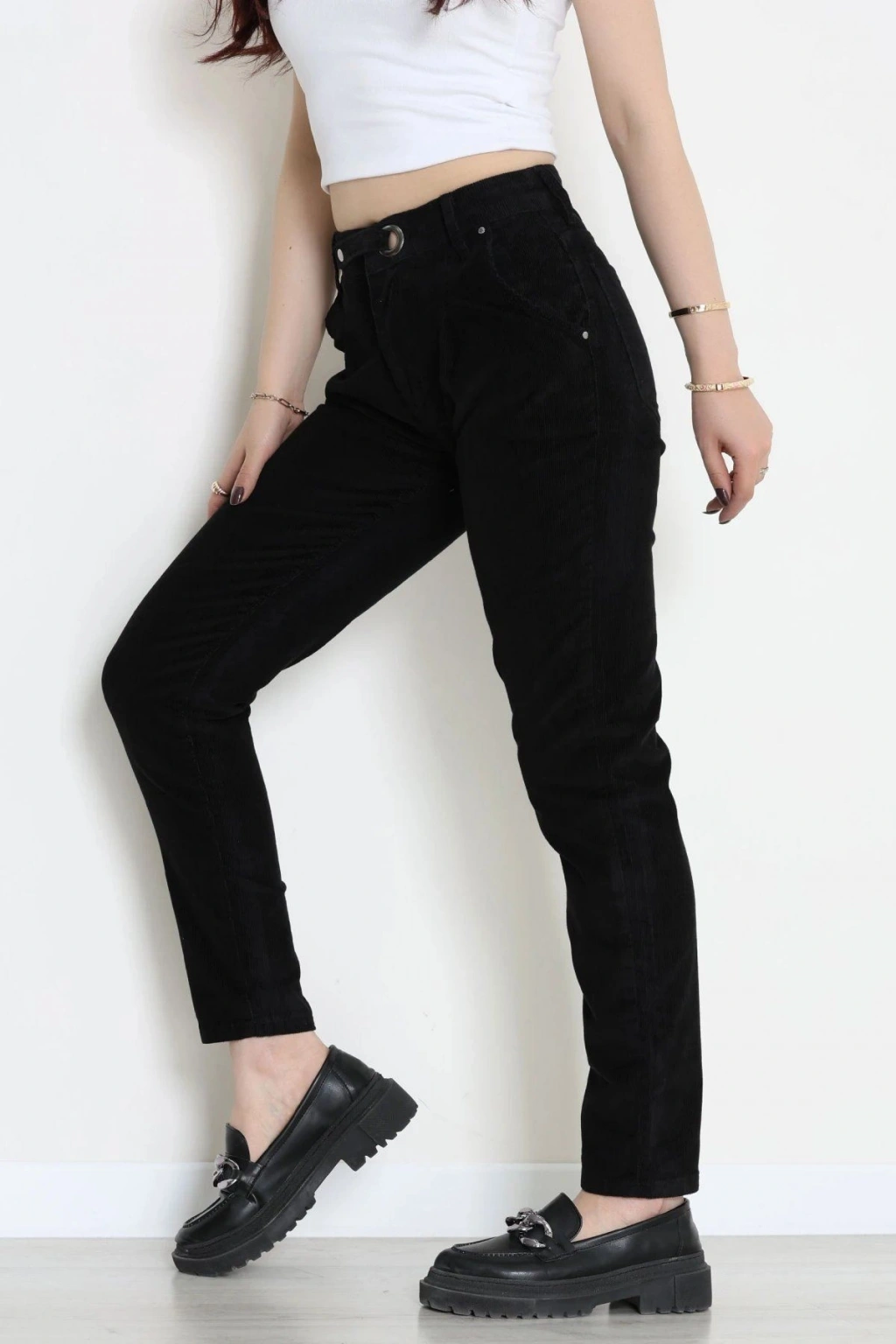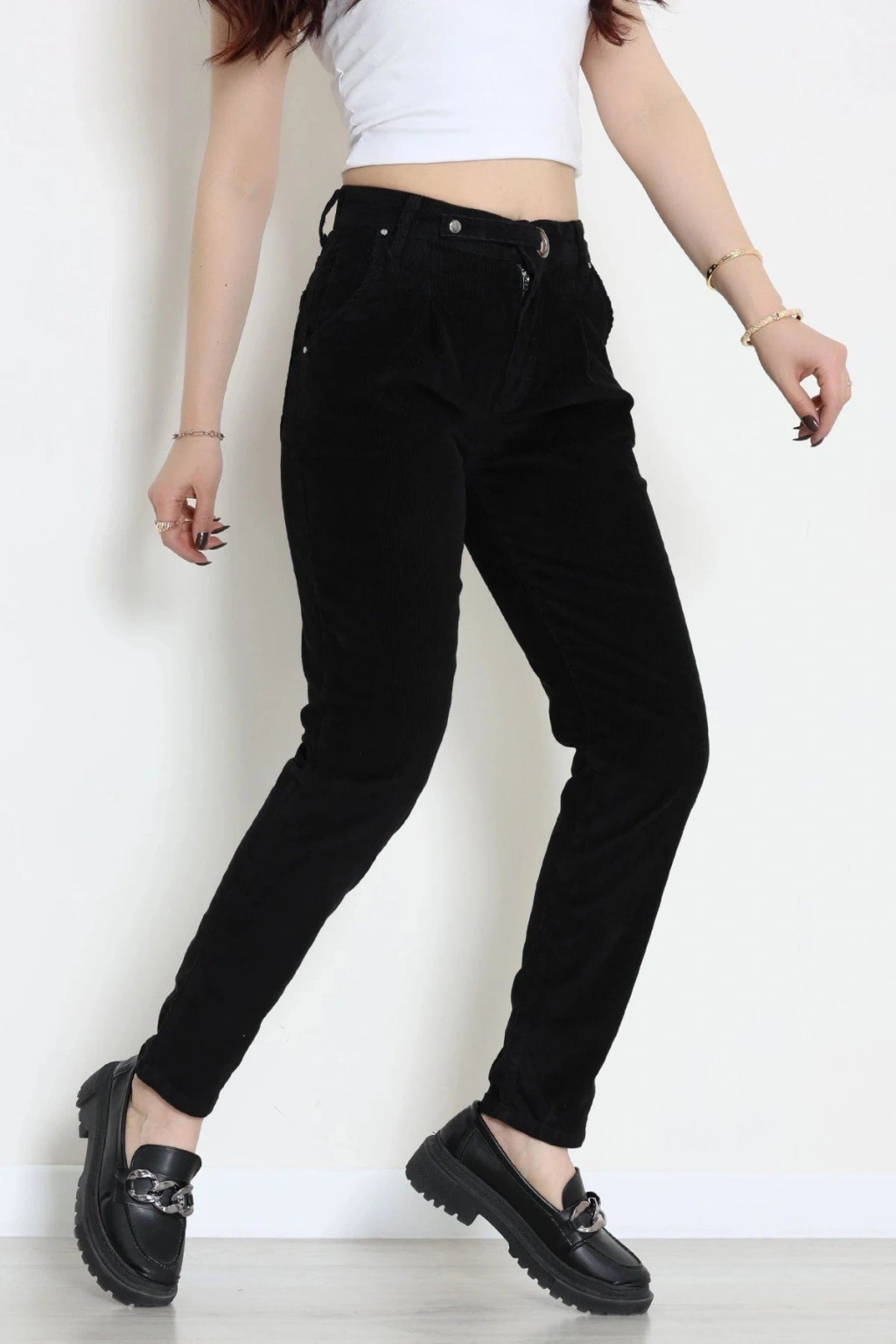 # Siyah Kadife Pantolon ## Tasarım Detayları ve Kumaş Yapısı Siyah **kadife pantolon** modeli, yumuşak dokusu ve kış aylarında sıcak tutan yapısı ile son derece konforlu bir kullanım sunar. Bu parça, derin siyah rengiyle her ortamda sade ve şık bir görünüm elde etmenizi sağlar. Modelimiz, vücut hatlarını dengeli bir şekilde saran kesimi sayesinde hareket özgürlüğünü kısıtlamadan vücudunuza tam uyum sağlar. **Yüksek bel pantolon** formuyla bel bölgesini toparlayarak zarif bir siluet oluşturmaya yardımcı olurken rahatlık seviyesini artırır. Fitilli kumaşın kendine has dokusu, bu tasarımın yüzeyinde ince ve belirgin çizgiler oluşturarak estetik bir görsel derinlik katar. Ön kısımda yer alan metalik düğme detayı ve sağlam dikiş yapısı, uzun süreli ve dayanıklı bir kullanım vadeder. **Siyah kadife pantolon arayanlar için** üretilen bu model, kaliteli pamuklu lifleri sayesinde cildin doğal şekilde nefes almasına olanak tanır. Paça boyu ve kalıp özellikleri, farklı zeminlerde rahatça hareket etmeniz için özel olarak tasarlanmış fiyat performans ürünüdür. Satın almak için hemen sepete ekleyin.