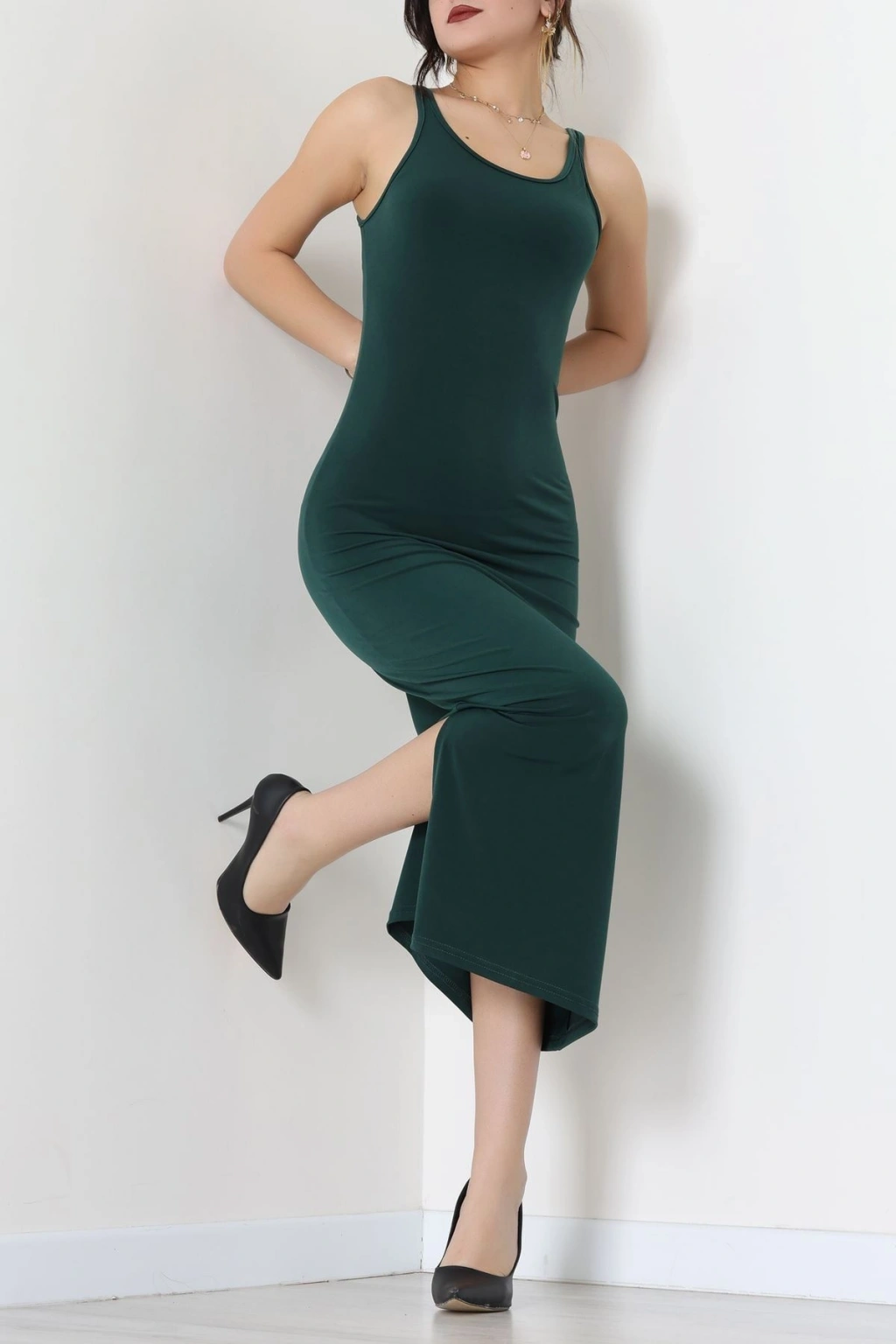 Kalın Askılı Sandy Elbise Zümrüt - 70833.1949.