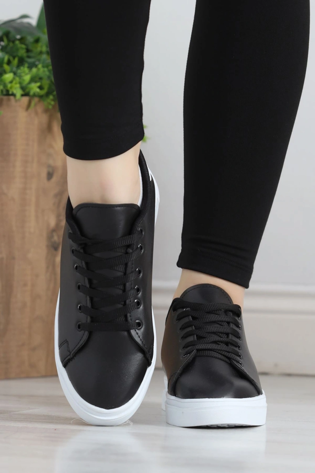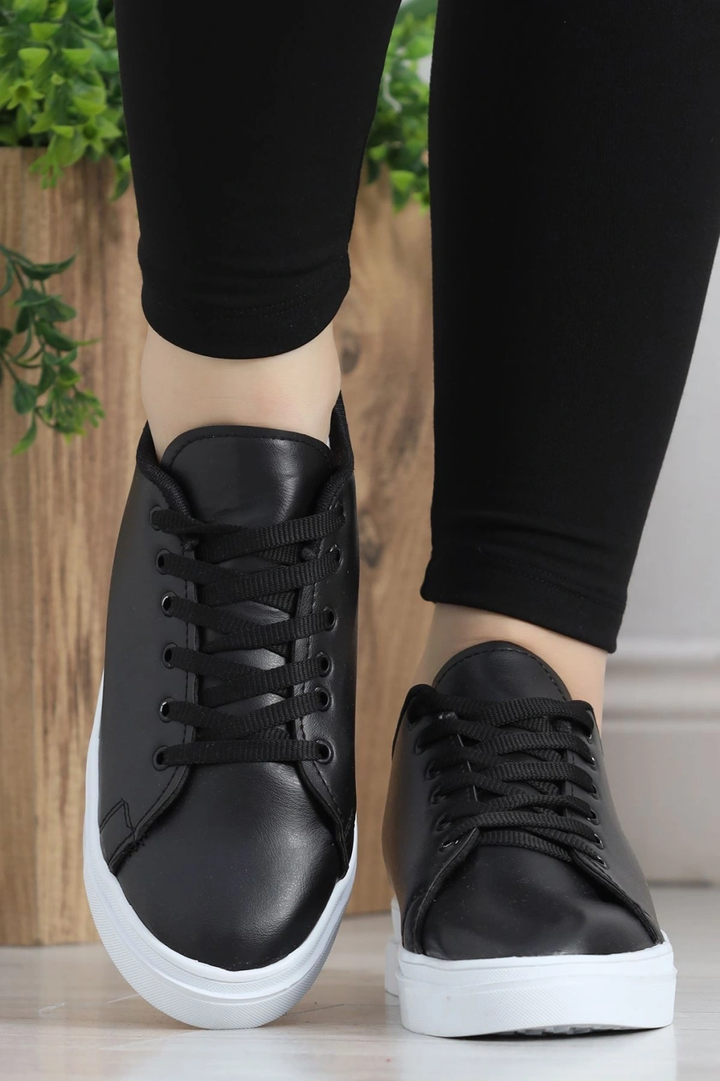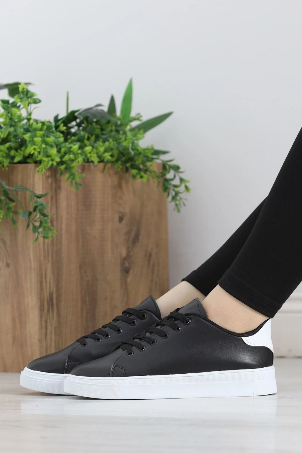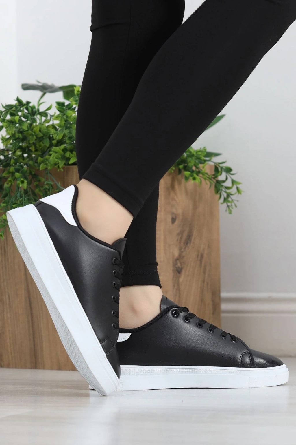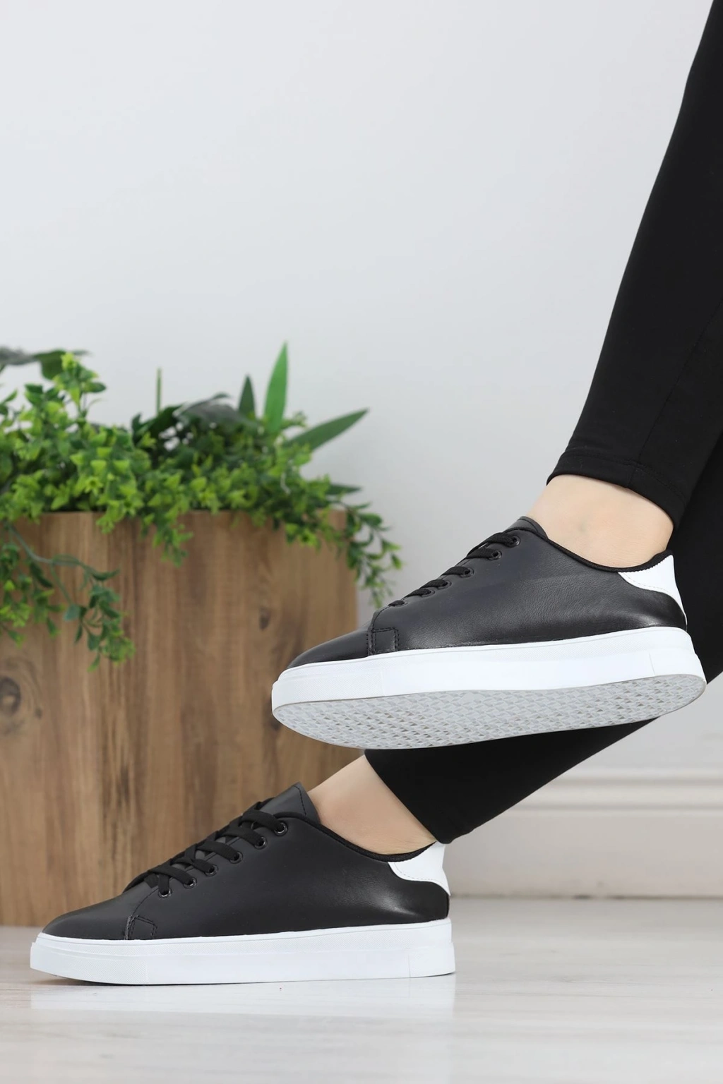 # Kalın Taban Günlük Ayakkabı ## Modern Tasarım ve Kullanım Rahatlığı Gün boyu adımlarınıza eşlik eden konfor ve stil için bu **kalın taban günlük ayakkabı** modelimiz ideal bir seçimdir. Kaliteli suni deri materyaliyle üretilen bu tasarım, modern duruşuyla dikkat çekerken, siyah ana rengiyle her giyime uyum sağlar ve beyaz taban detayıyla keskin bir kontrast oluşturur. Bu **siyah beyaz spor ayakkabı**, hem estetik hem de fonksiyonelliği bir araya getirerek şehir hayatının dinamik temposuna ayak uydurur. Ayak sağlığınızı destekleyen kalın ve esnek tabanı sayesinde uzun süreli kullanımlarda bile üstün **yürüyüş konforu** sunar. Topuktaki beyaz panel detayı, ayakkabıya karakteristik ve çağdaş bir dokunuş katarken, bağcıklı yapısı kişiye özel bir uyum sağlar. Rahatlığı ön planda tutanlar için tasarlanan bu parça, fiyat performans açısından uygun bir seçenektir. Hemen sepete ekleyin.