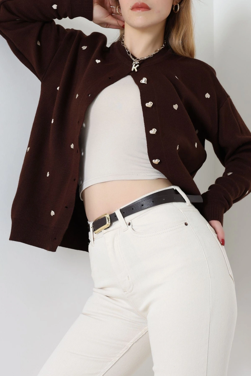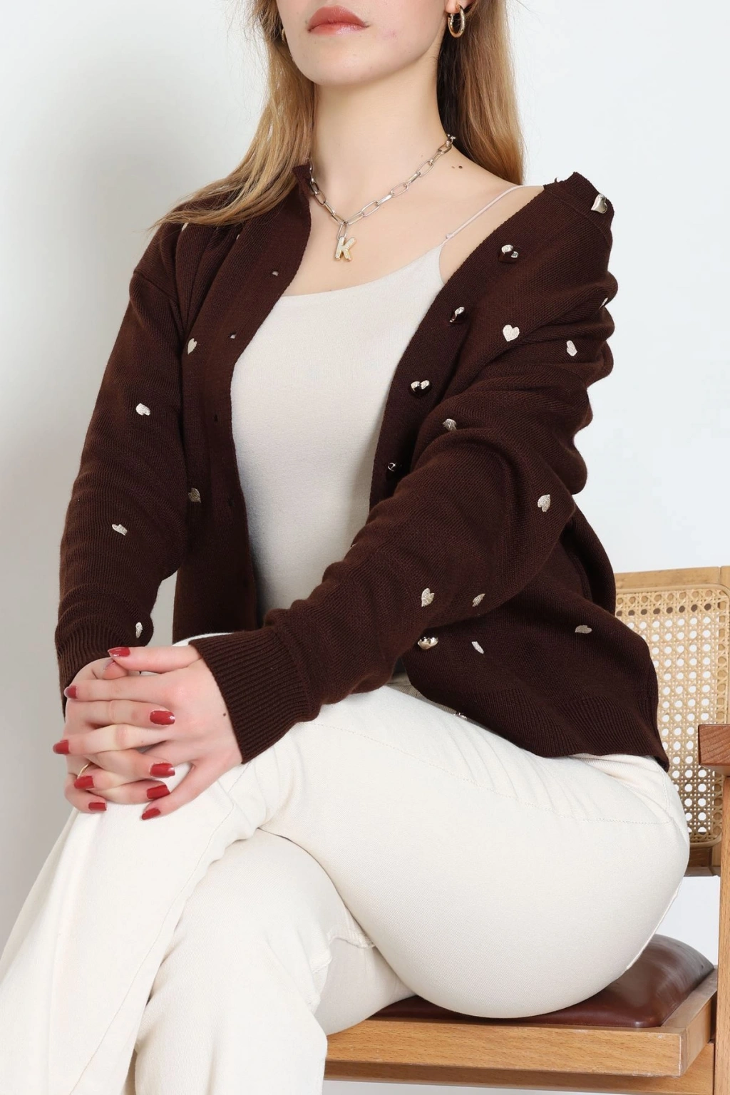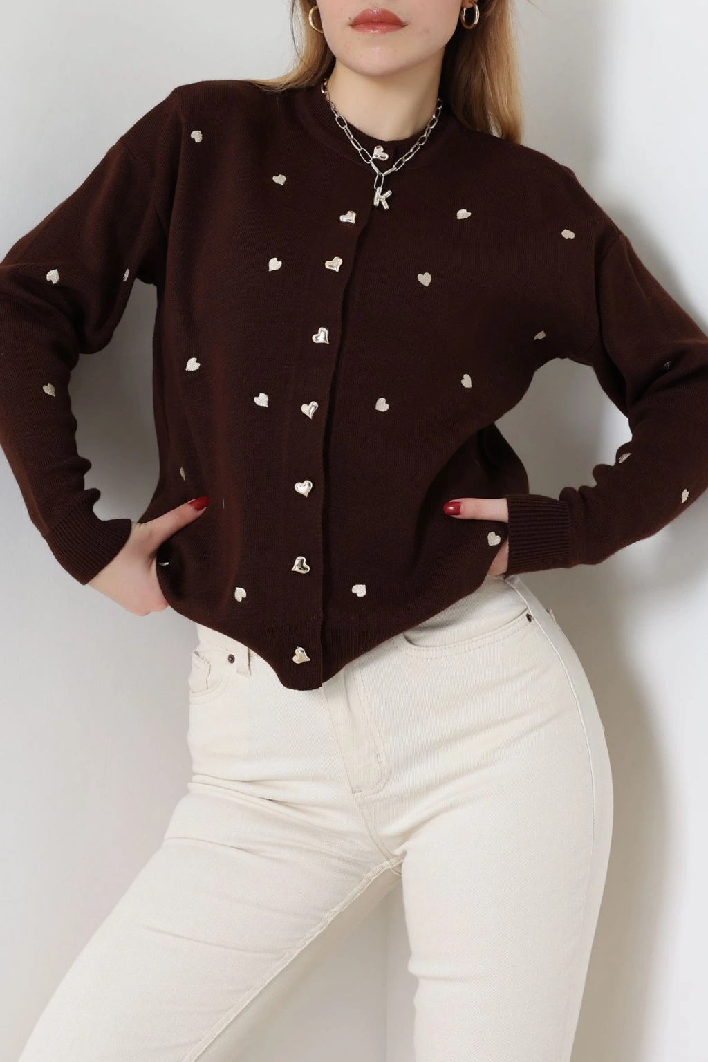 Kalp Detaylı Hırka Kahvelatte - 3219.1577.