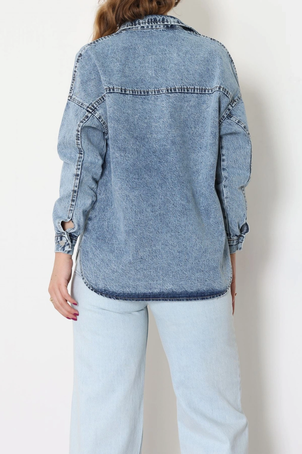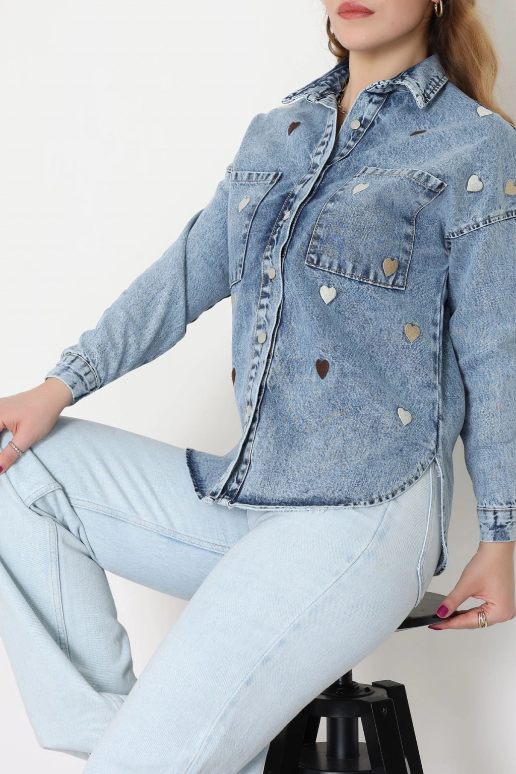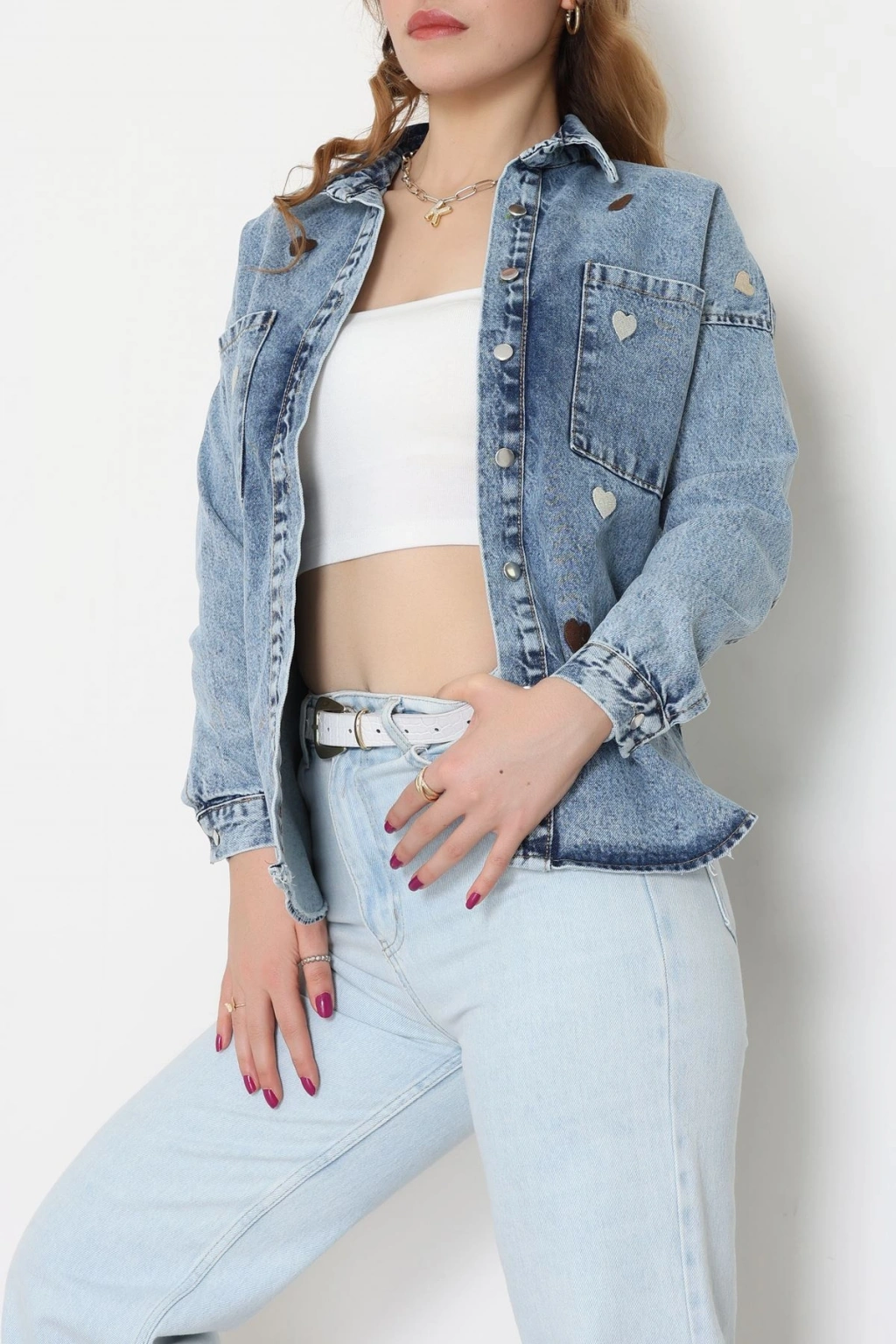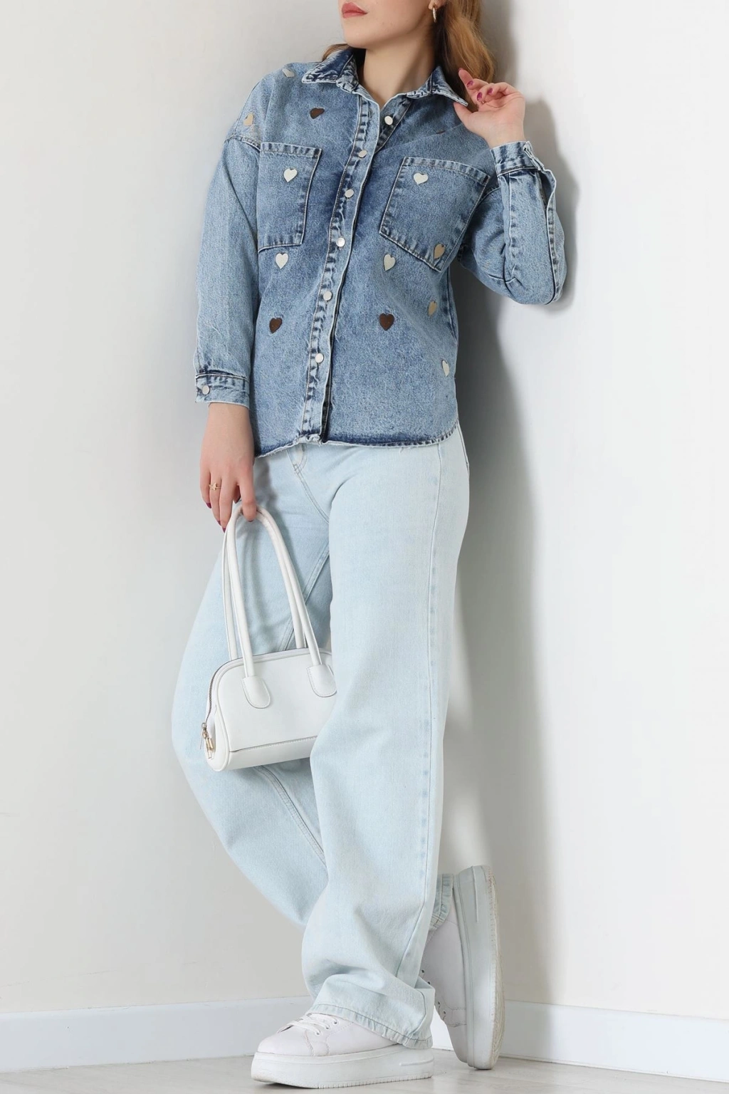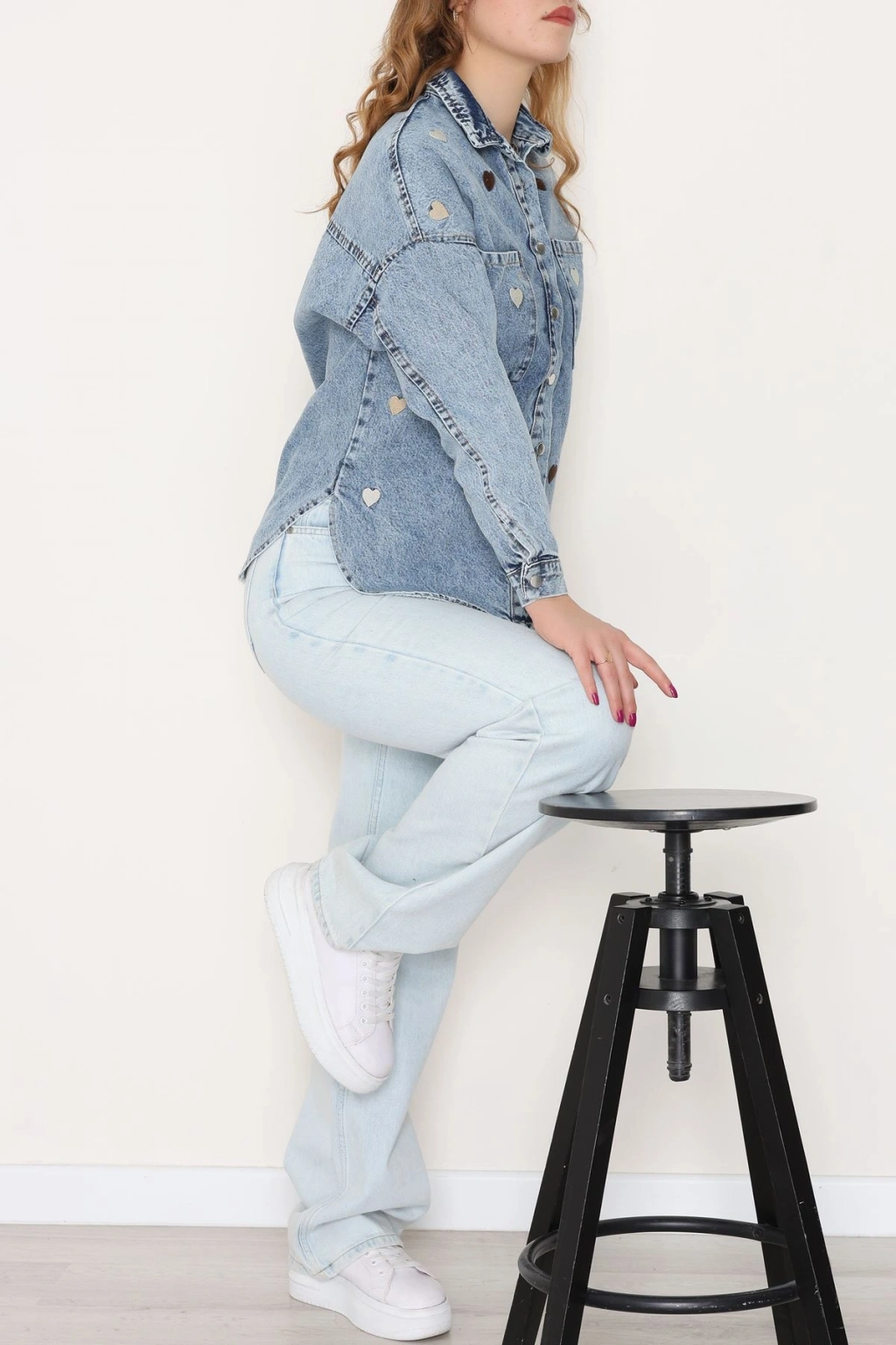 Kalp Nakışlı Kot Ceket Mavi - 31784.683.