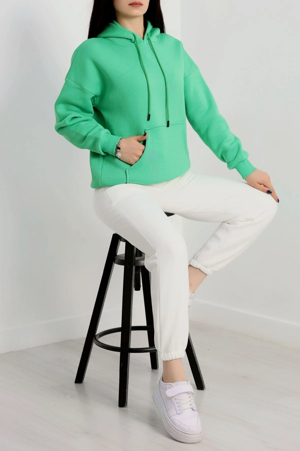 Kanguru Cepli Kapşonlu Sweat Açıkyeşil - 20960.1878.