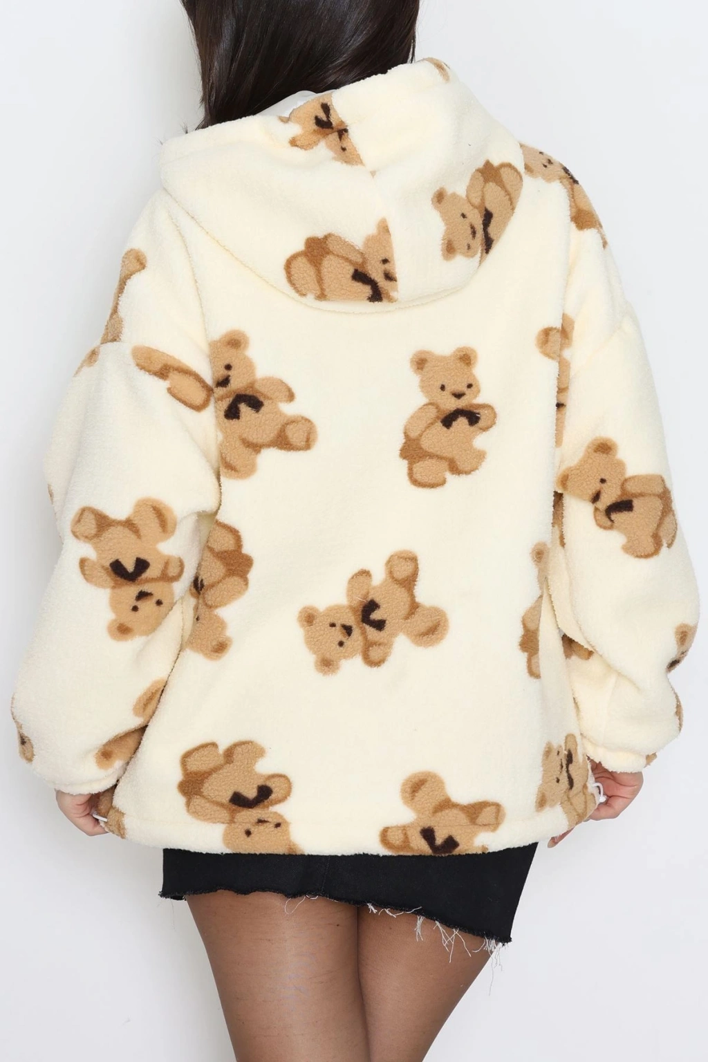 Fermuarlı Kürklü Ceket Krem - 8780.179.