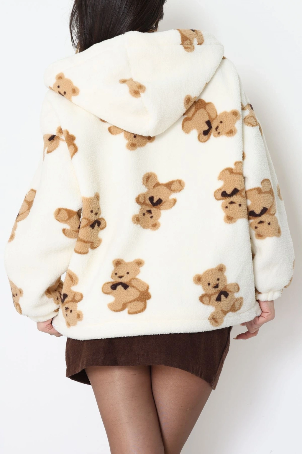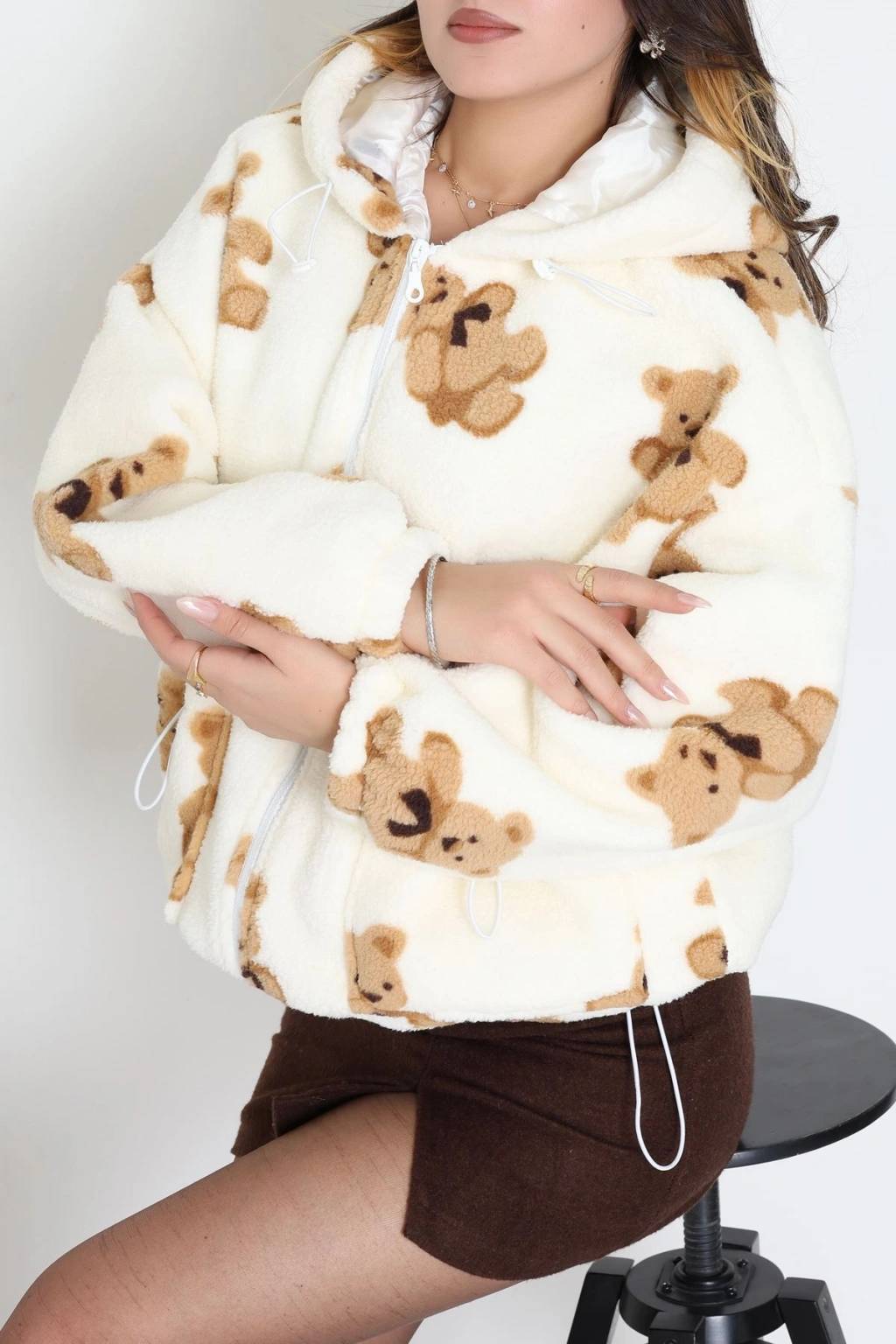 Fermuarlı Kürklü Ceket Krem - 8780.179.