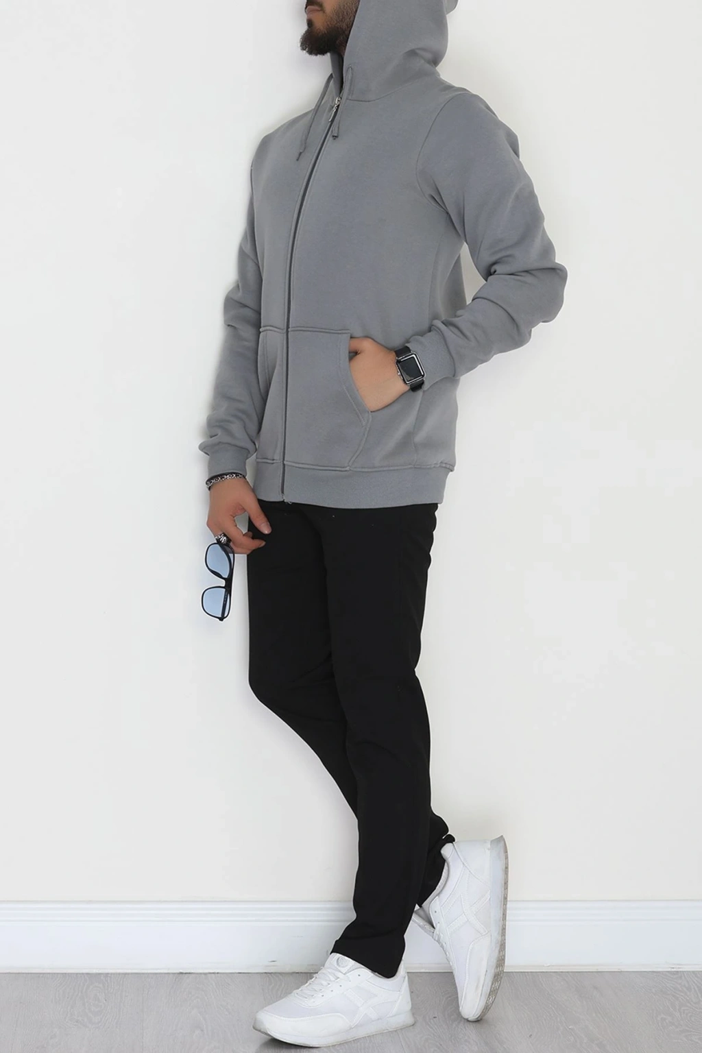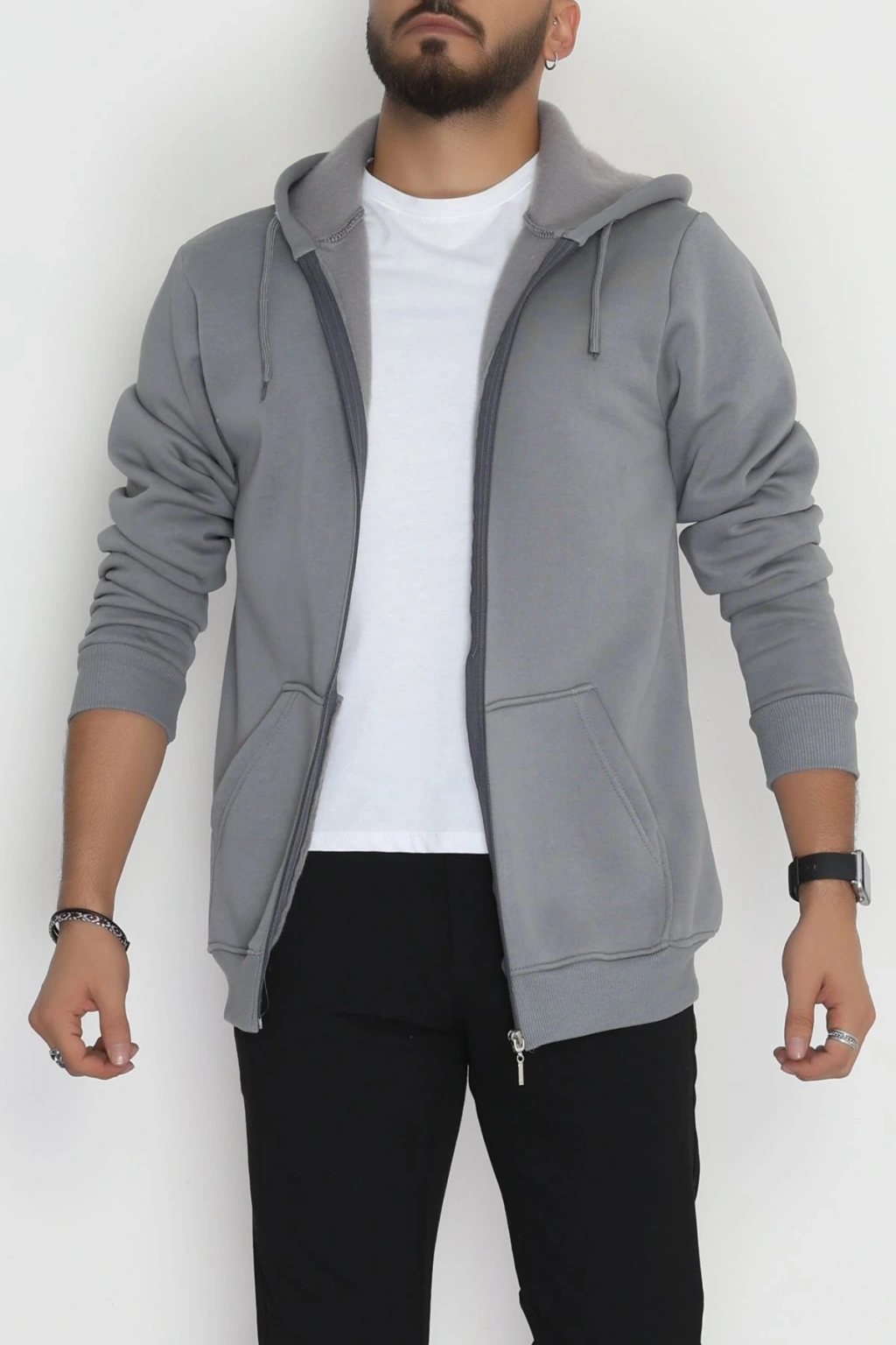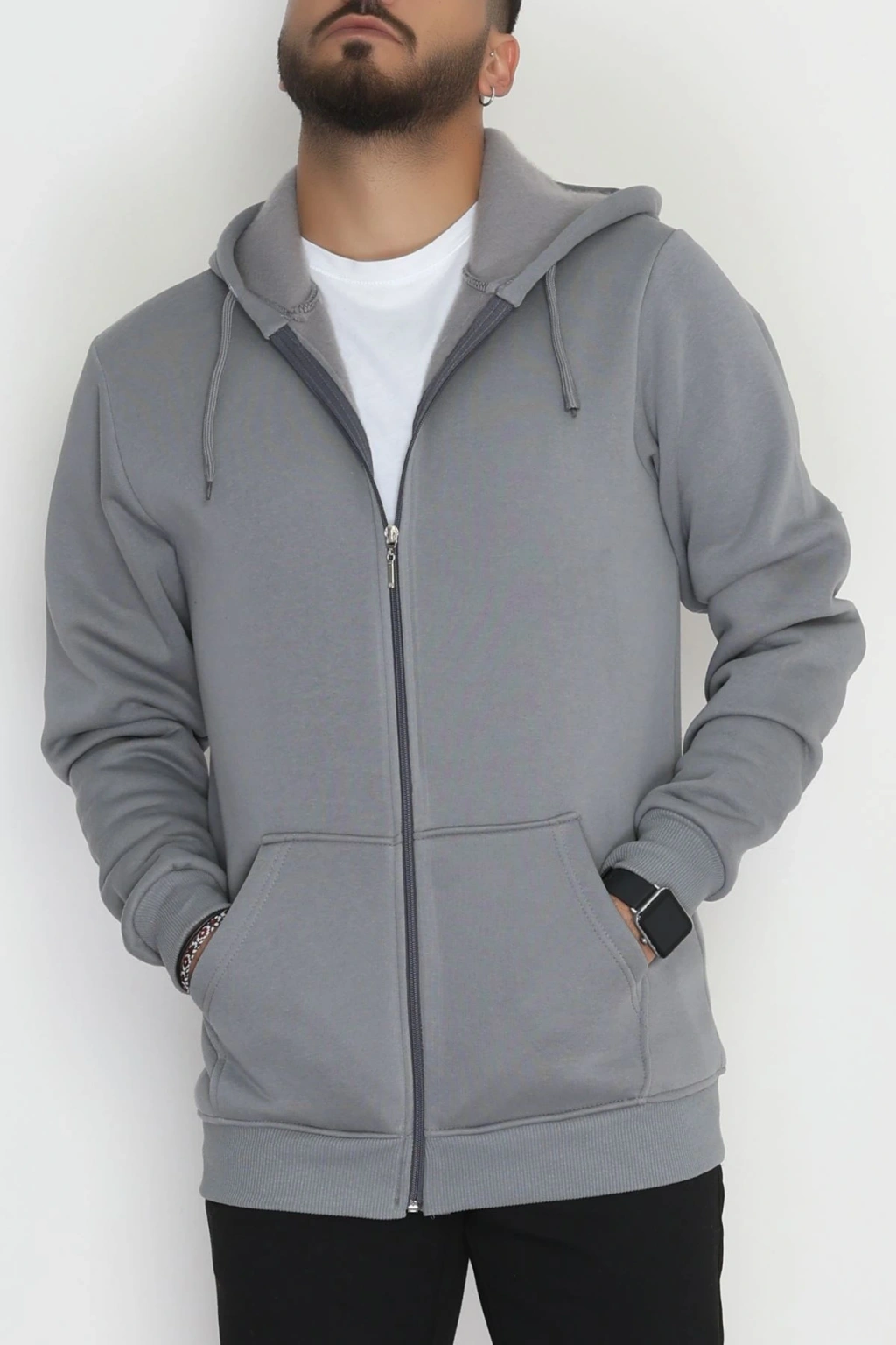 Kapşonlu Fermuarlı 3 İplik Erkek Sweat Antrasit - 42575.1878.