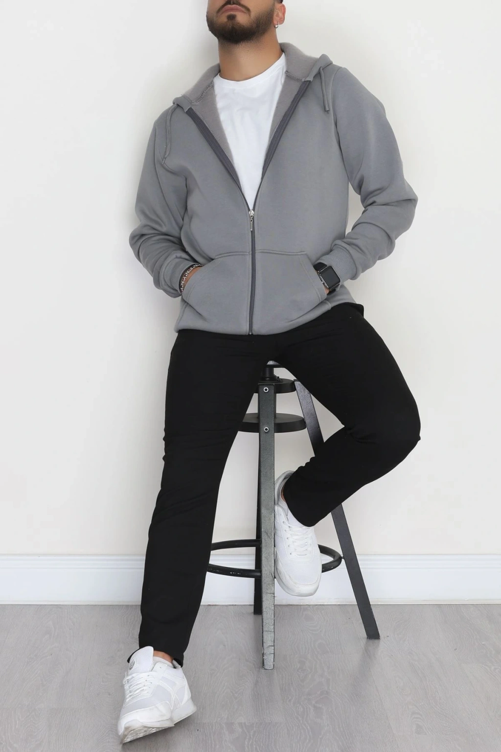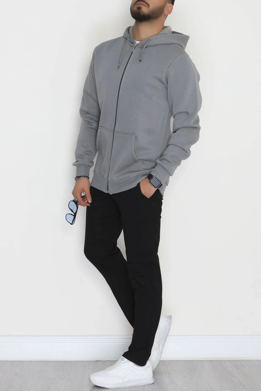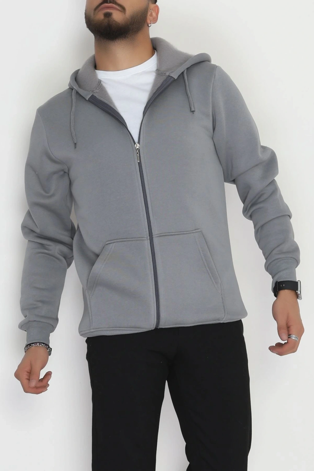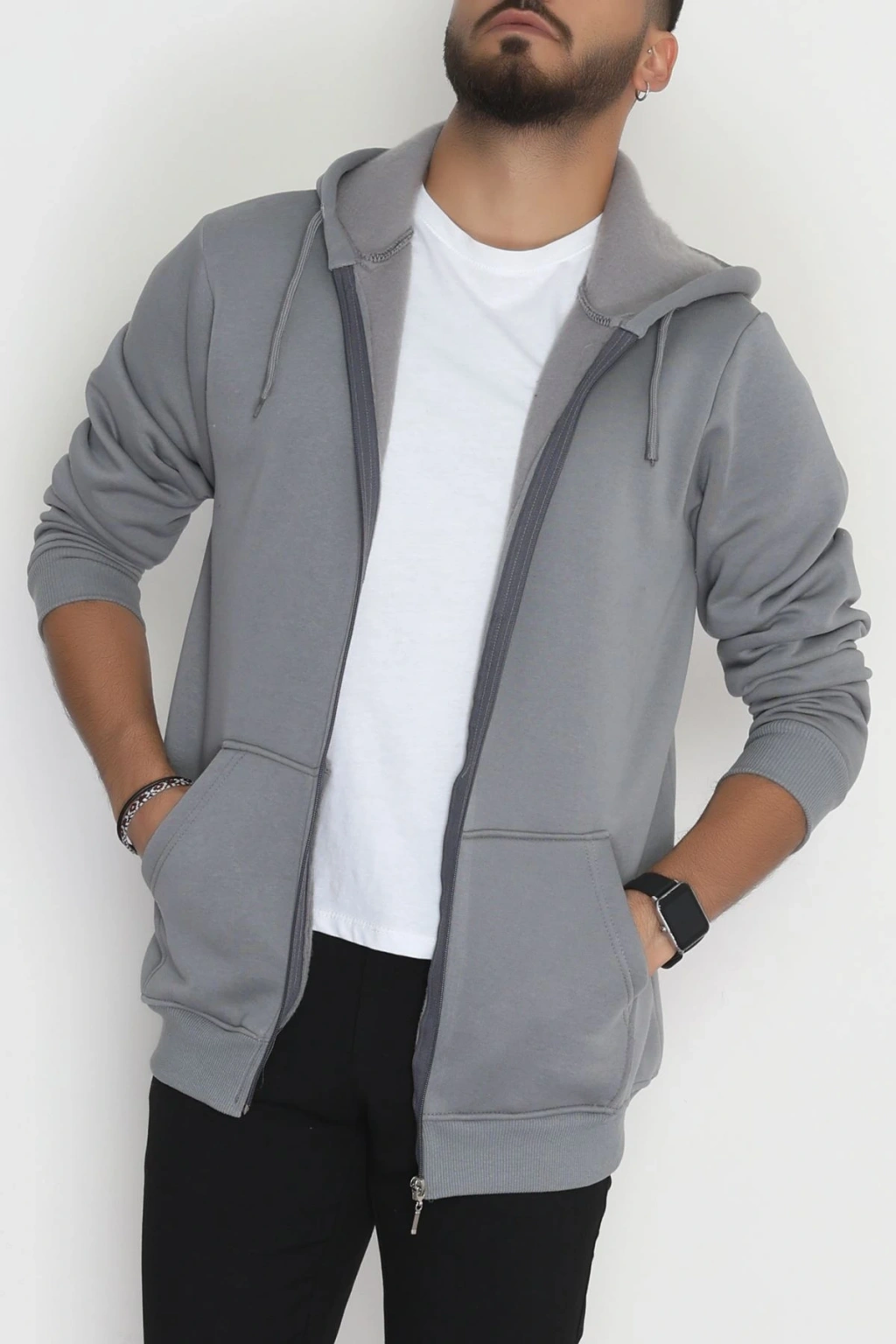 Kapşonlu Fermuarlı 3 İplik Erkek Sweat Antrasit - 42575.1878.