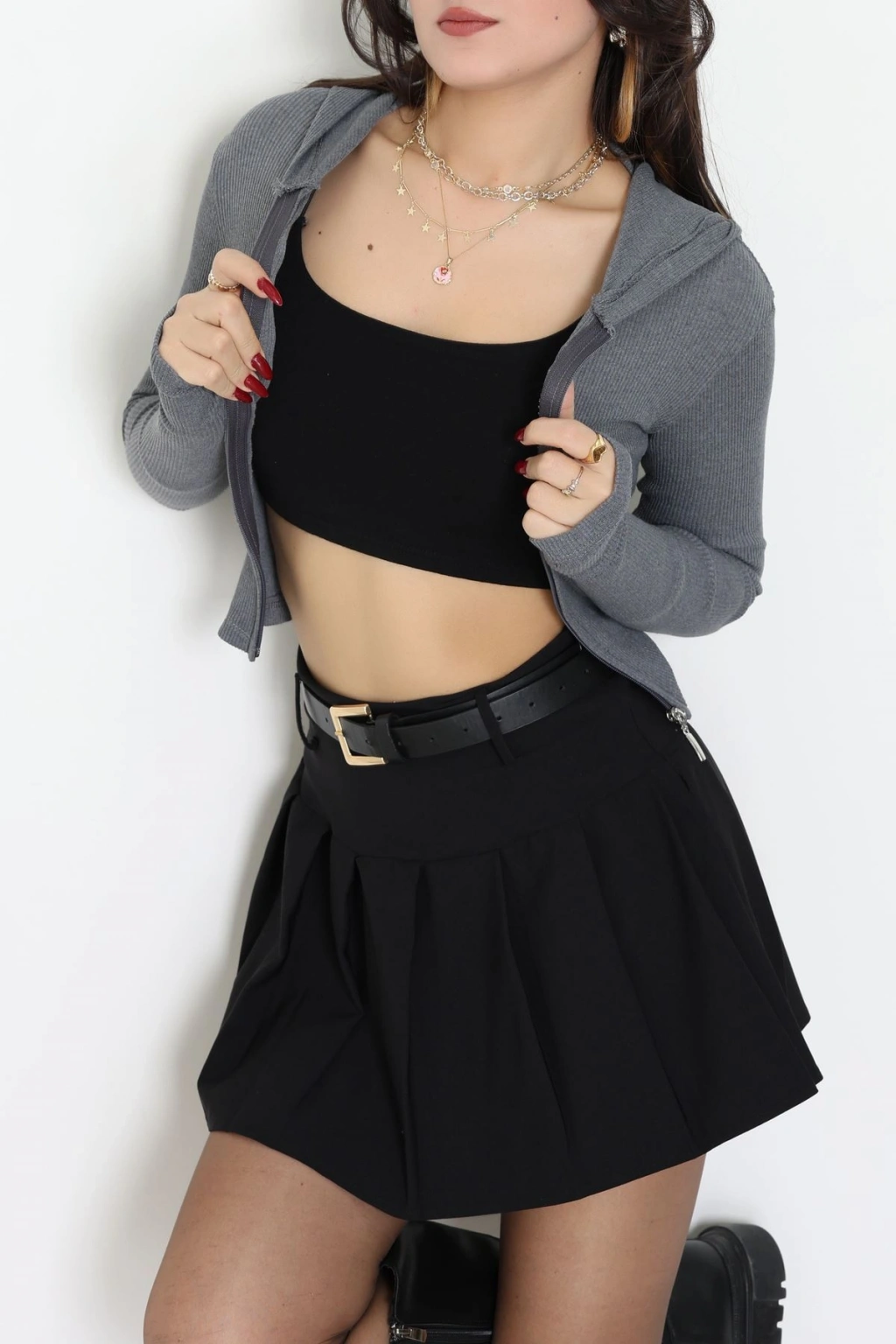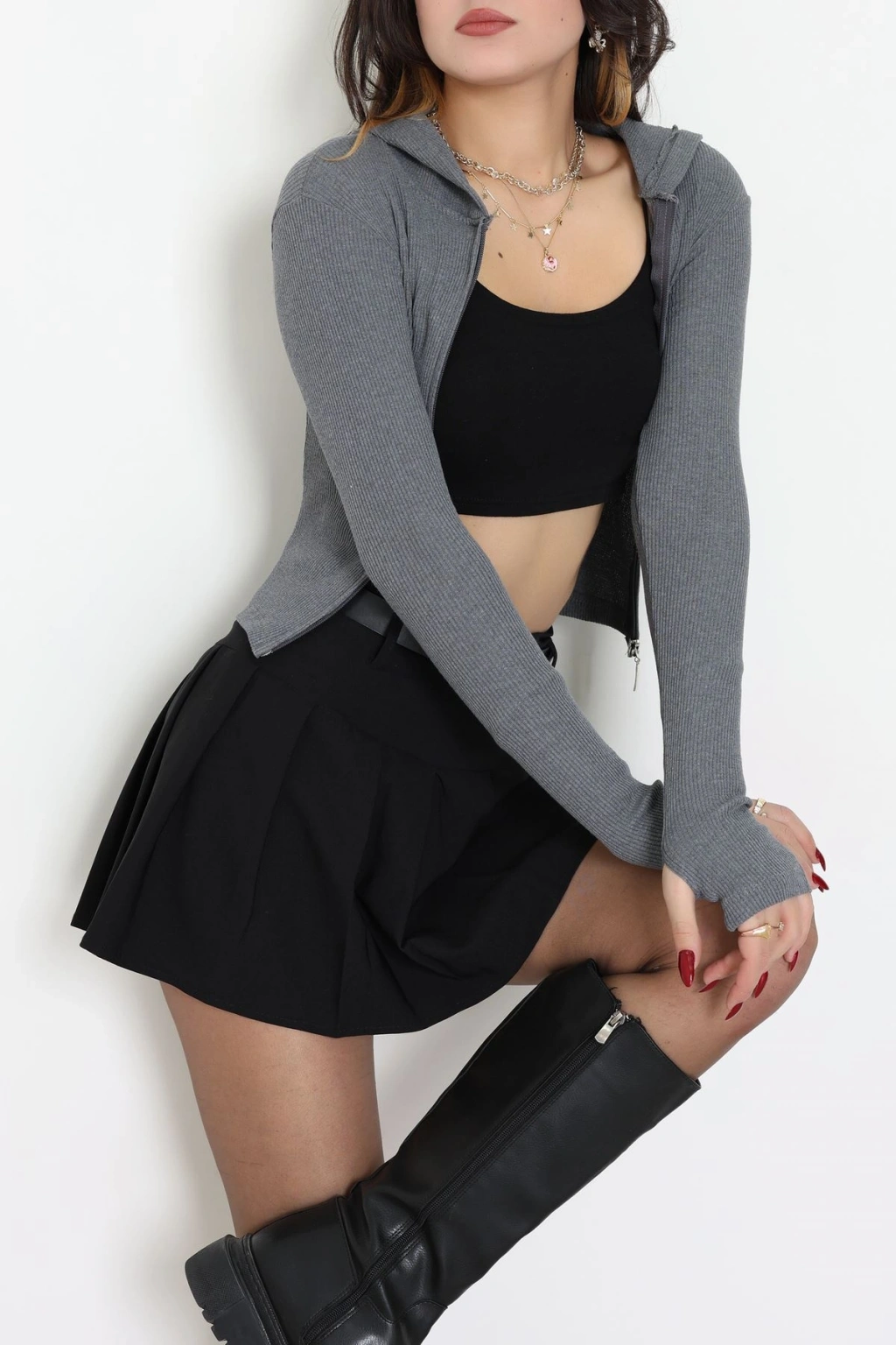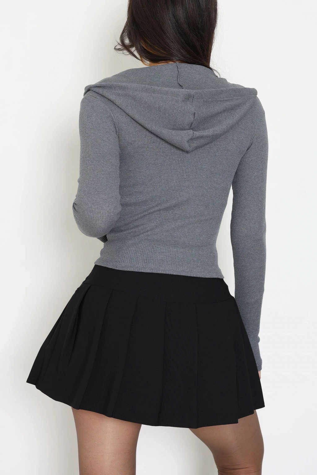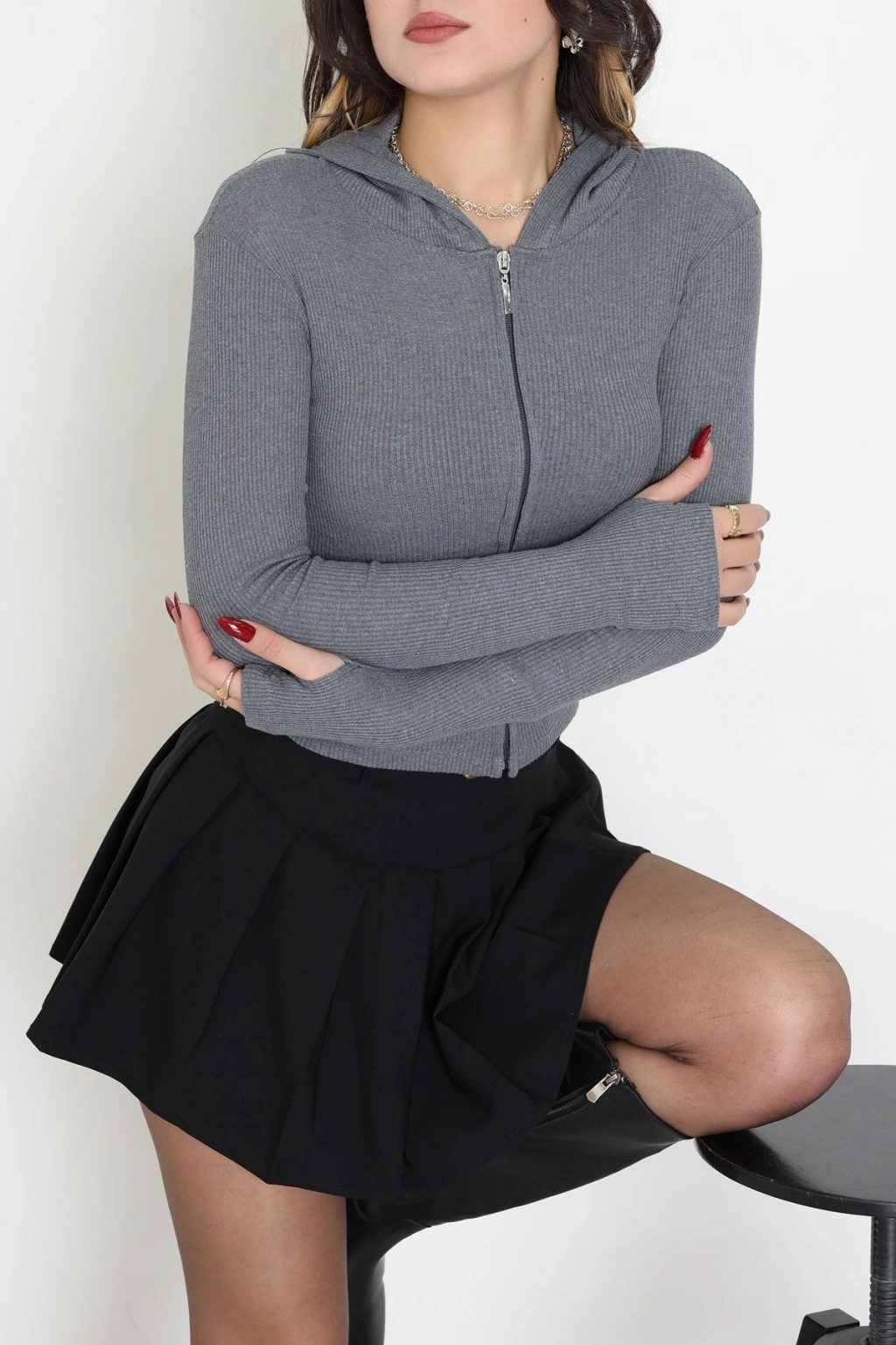 Kapşonlu Parmak Geçmeli Body Antrasit - 70769.1567.