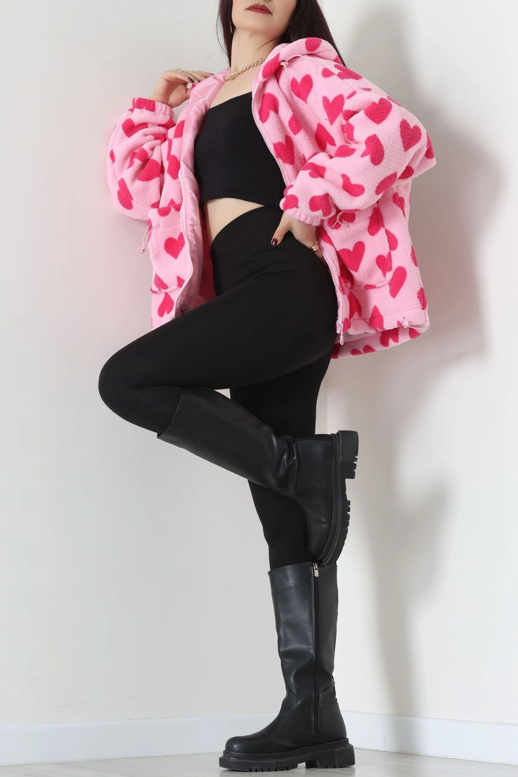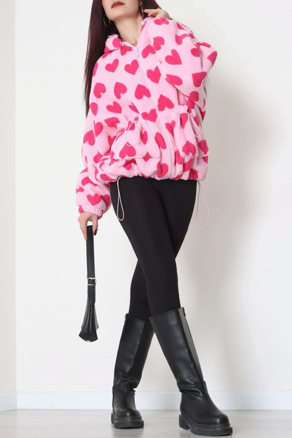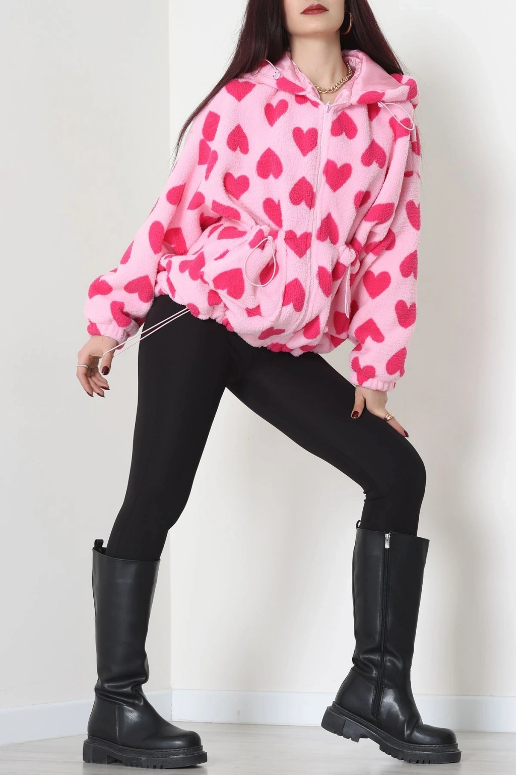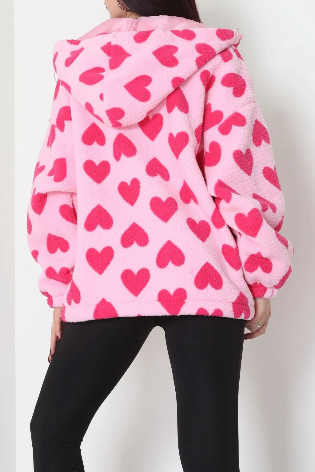 Kapüşonlu Kalpli Peluş Mont Pembe - 31482.1247.