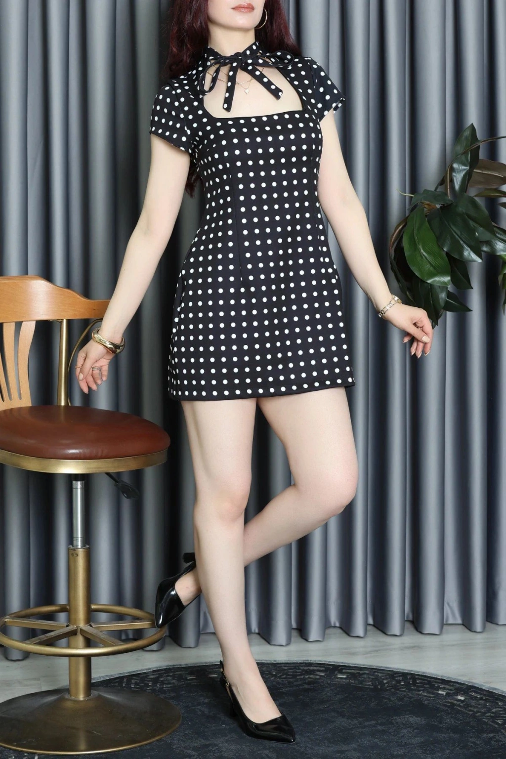 # Kare Yaka Puantiyeli Elbise ## Şıklık ve Konforun Buluştuğu Tasarım Zarif detaylarıyla göz kamaştıran bu **kare yaka puantiyeli elbise**, stil sahibi kadınlar için vazgeçilmez bir parça. Siyah zemin üzerine serpiştirilmiş beyaz puantiyeleriyle dikkat çeken bu modern tasarım, enerjik bir görünüm sunar. Krep kumaşının hafif dokusu gün boyu rahatlık vaat ederken, her ortamda şıklığınızı tamamlayacak ideal bir mini elbise seçeneğidir. Bu tasarımın çerçeve yaka tipi ve boyun kısmındaki zarif fiyonk detayı, tasarıma özgün bir dokunuş katıyor. Astarlı yapısıyla iç göstermeyen ve esneme payı olan bu **kısa kollu** model, hareket özgürlüğü sunarak gün boyu konfor vadediyor. **Siyah beyaz puantiyeli** detaylara sahip bu şık elbise, modern bir görünüm arayanlar için fiyat performans ürünüdür. Hemen sepete ekleyin.