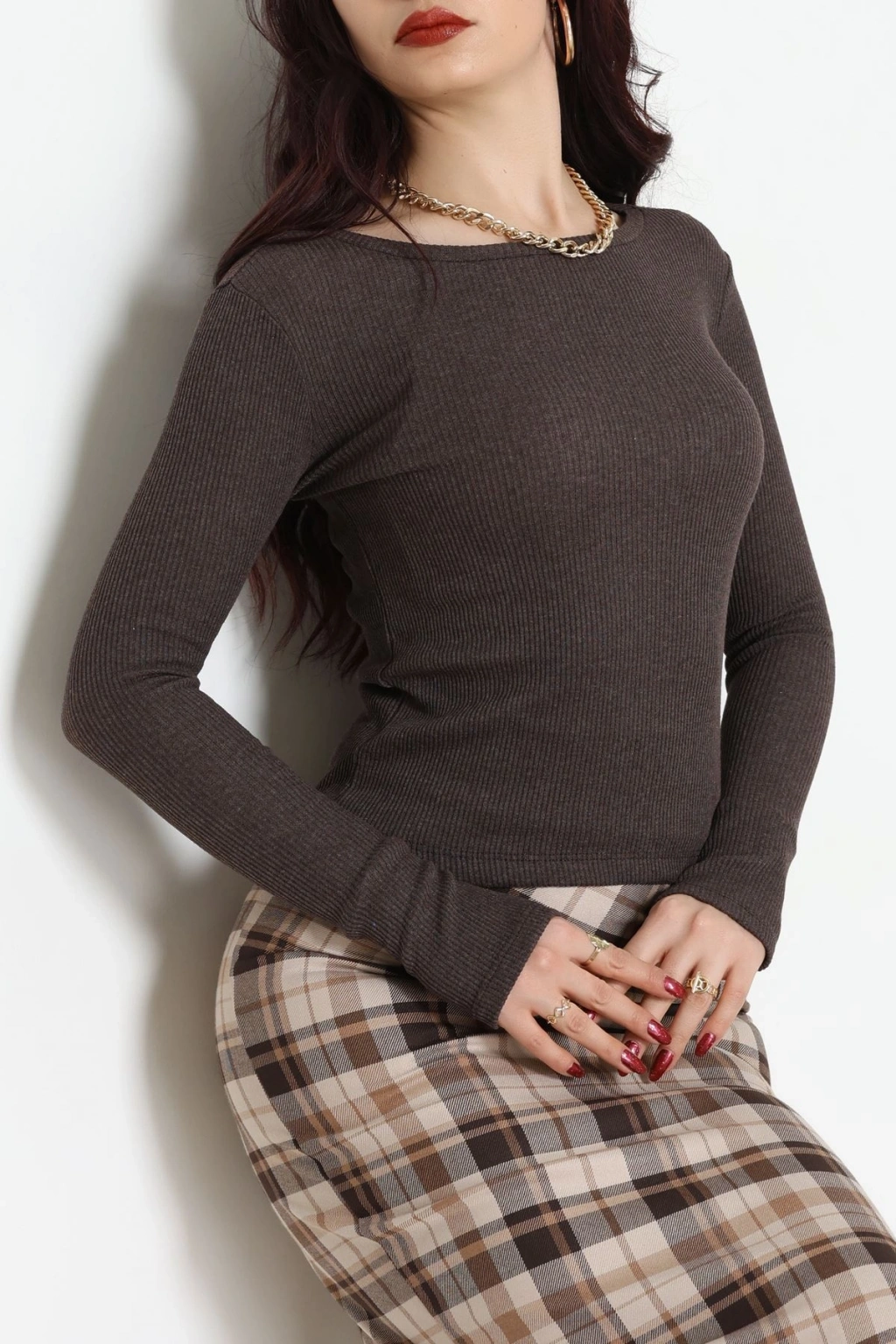 Kaşkorse Parmak Geçmeli Body Acıkahve - 55031.1567.