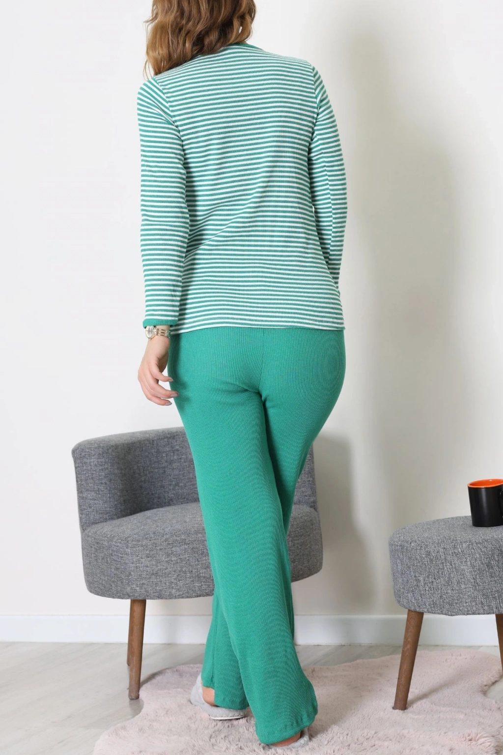 Süet Düğmeli Pijama Takımı Yeşil - 31876.1049.