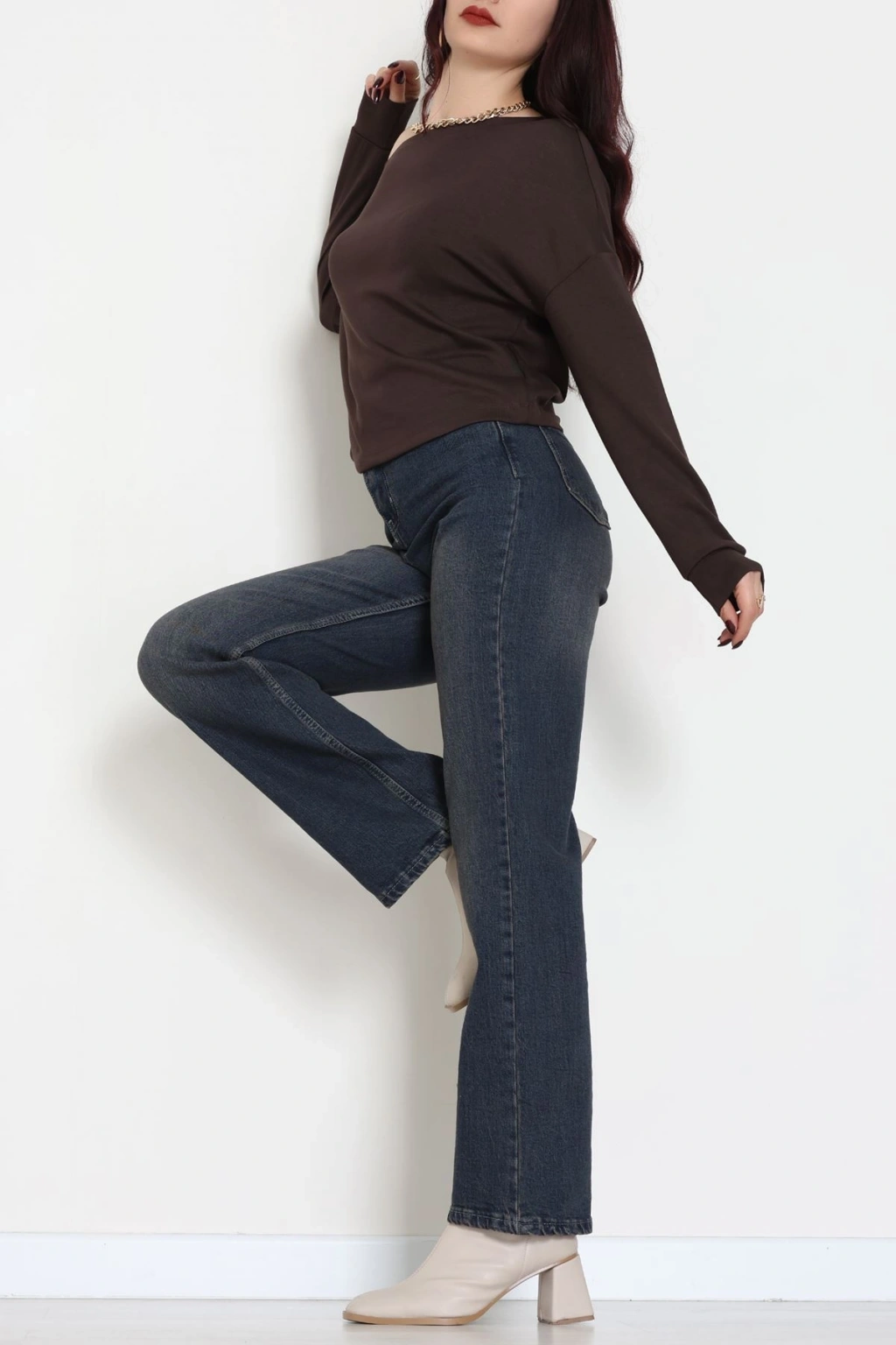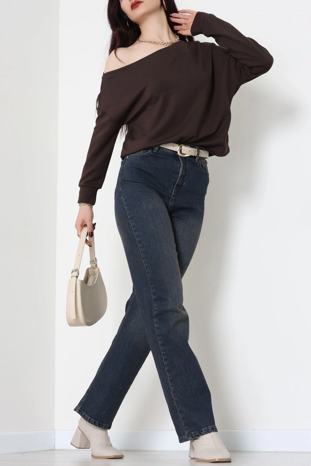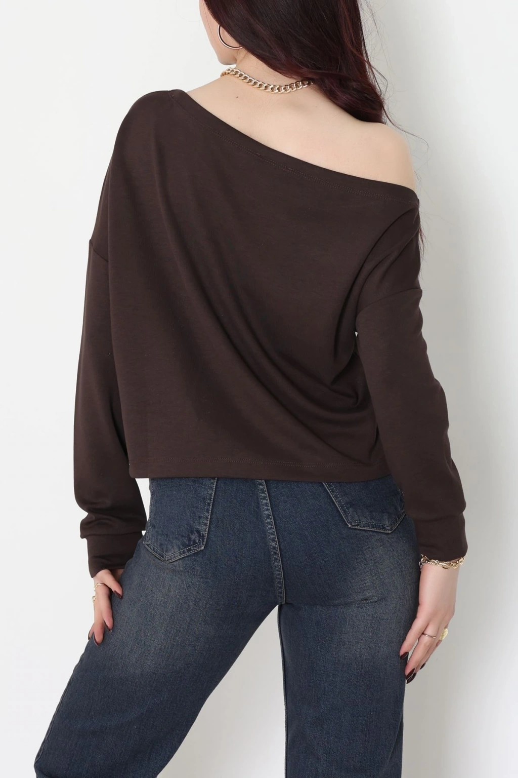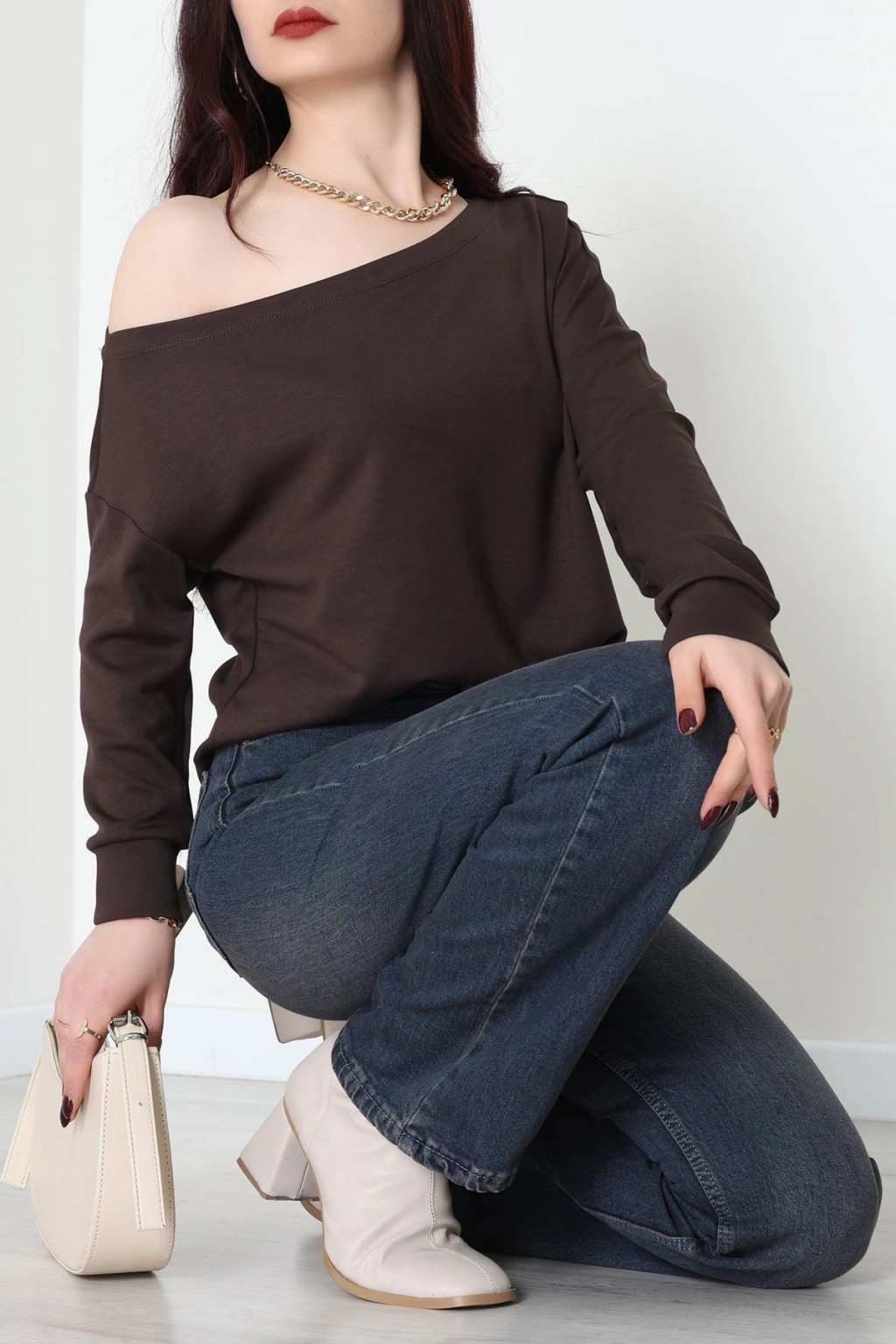Kayık Yaka Omuz Düşümlü Double Face Kumaş Bluz Acıkahve - 22185.200.