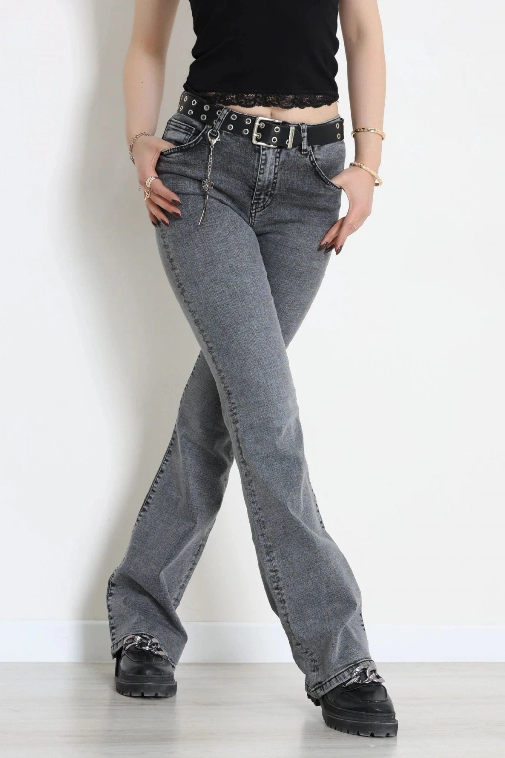 # İspanyol Kot Pantolon ## Modern Kesim ve Antrasit Tonlar Bu **İspanyol kot pantolon** modeli, antrasit tonlarındaki yıkaması ve yüksek bel kesimiyle konforlu bir kullanım sunarken silüetinizi daha uzun gösterir. Tasarımımızda yer alan metal detaylı kemer, bel bölgesini belirginleştirerek feminen bir hat oluşturmanıza yardımcı olur. Esnek olmayan dayanıklı denim kumaşı sayesinde bu parça, formunu uzun süre koruyarak kalitesini hissettirir. **Yüksek bel kot** tasarımıyla bu İspanyol kot pantolon, dizden aşağıya doğru genişleyen paçalarıyla retro bir hava katar. Bu modelimiz, dikiş detaylarındaki sağlamlık ve derin ön cepleriyle hem işlevsel hem de estetik bir yapı sunar. Paça kısmındaki dökümlü duruş, ayakkabıların üzerine yığılarak modern bir kesim görünümü oluşturur. **Geniş paça pantolon** arayanlar için ideal bir yapıya sahip olan ürün, antrasit rengin asaletini denim kumaşın rahatlığıyla birleştirir. Pamuklu içeriği ve **gri denim** dokusu cildinizin nefes almasını sağlarken, beldeki kuşak halkaları aksesuarların kullanımına imkan tanır. Uzun ömürlü kullanımı destekleyen yıkama efektleri, her kullanımda yeni bir görünüm sunan ekonomik bir seçenektir. Satın almak için sepete ekleyin.