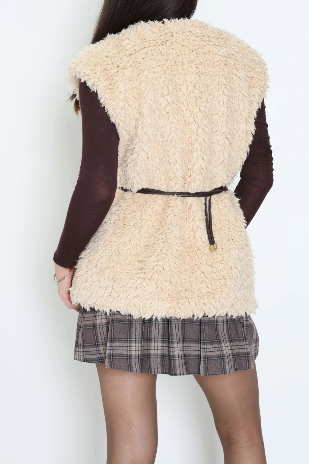 Kemerli Kürklü Yelek Bej - 8785.179.