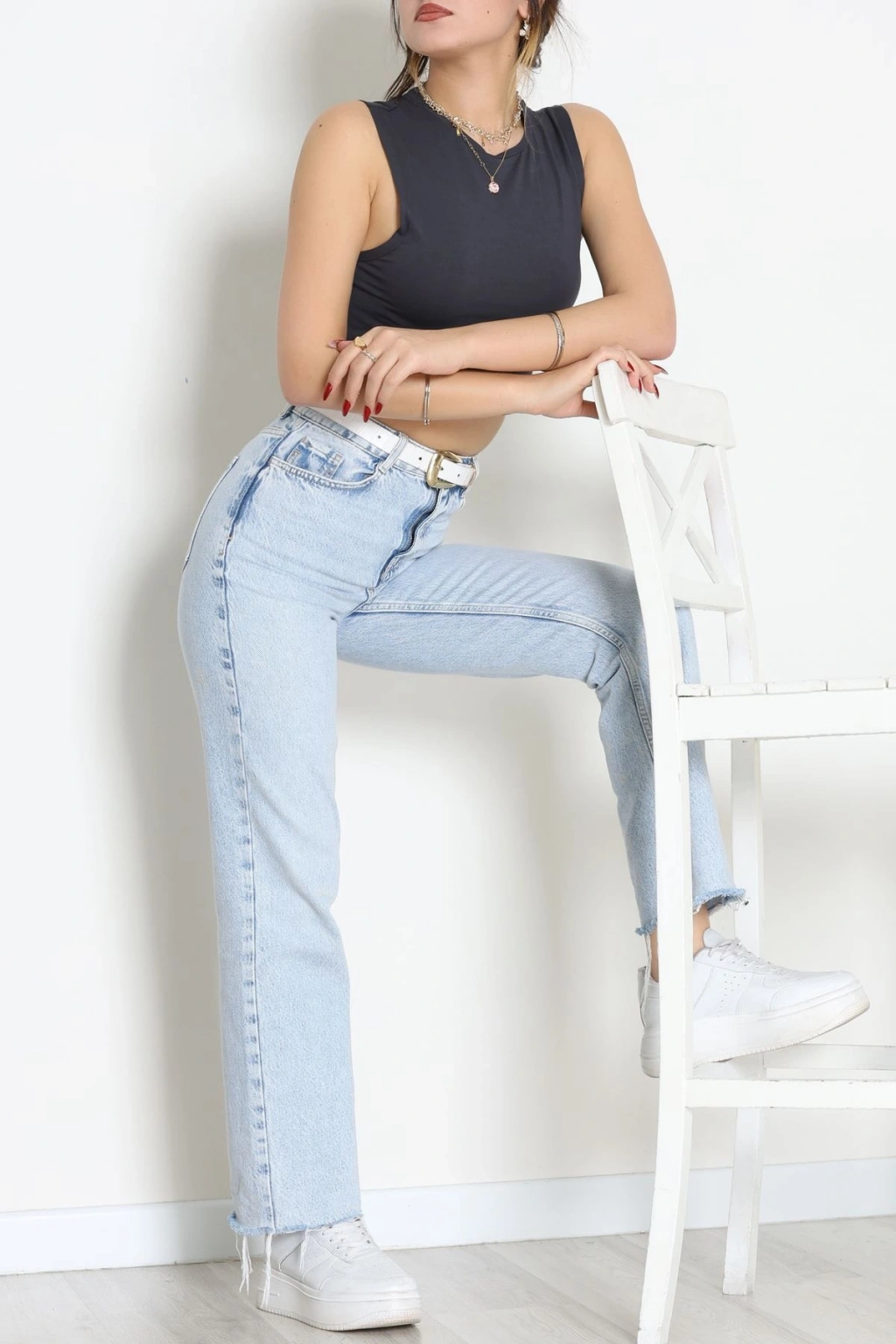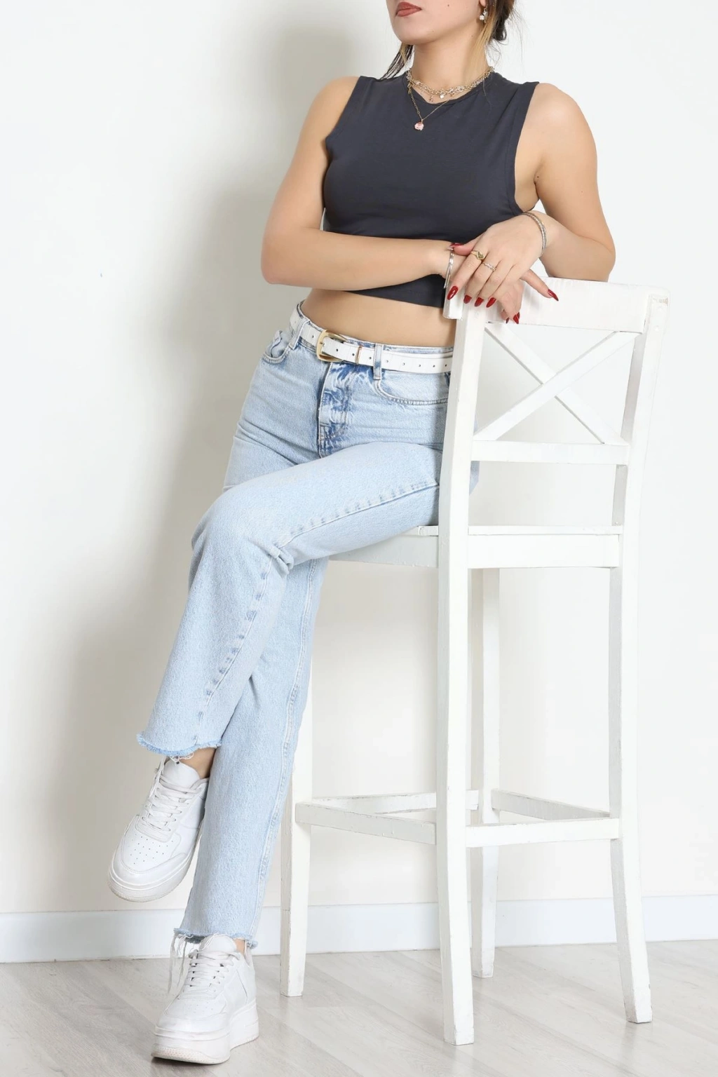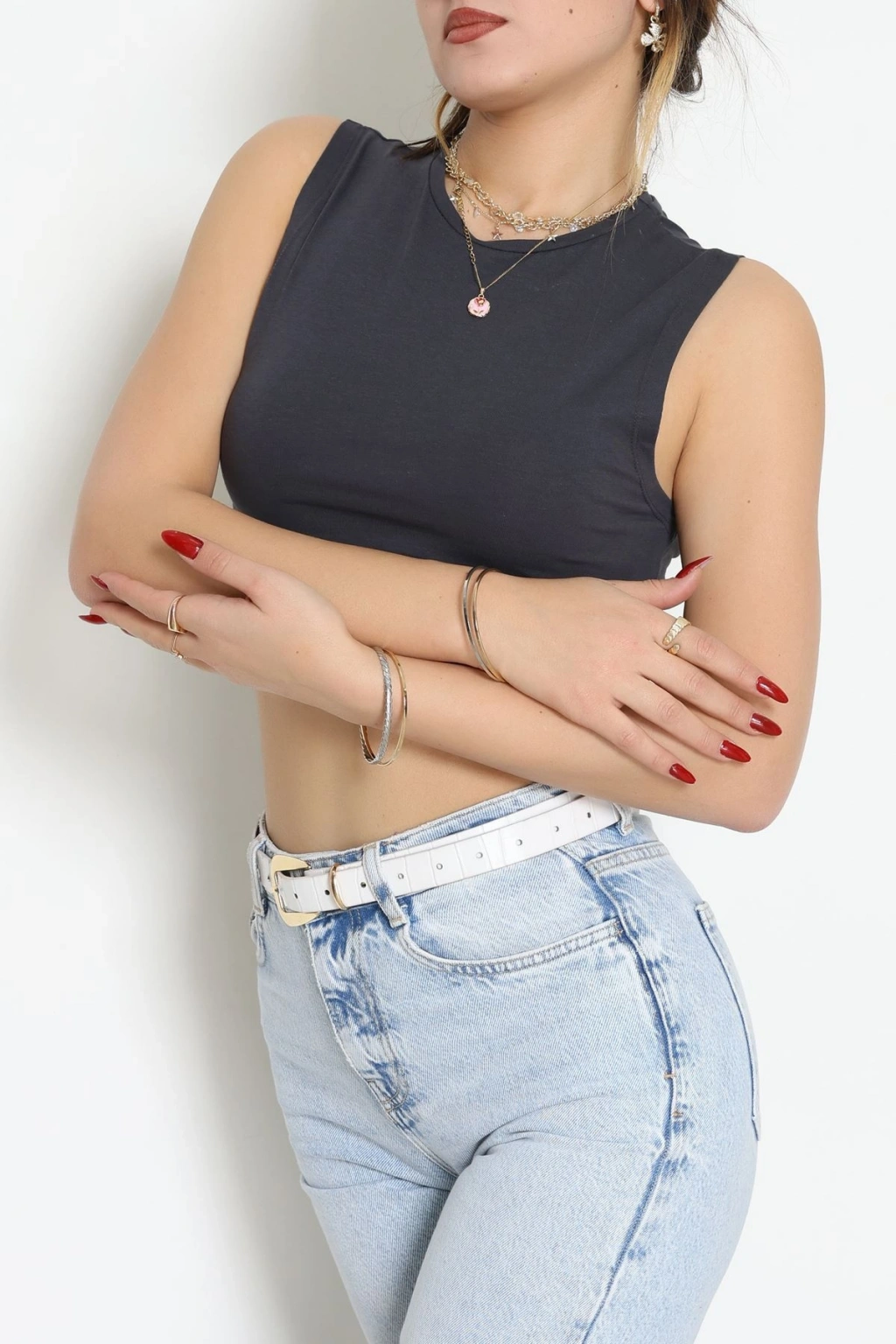 Biyeli Kalın Askılı Crop Atlet Beyaz - 9032.125.