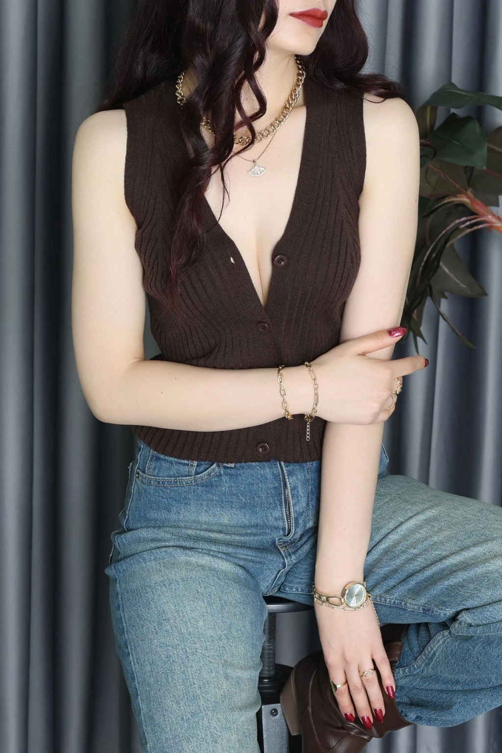 Kolsuz Düğmeli Triko Bluz Acıkahve - 71761.444.