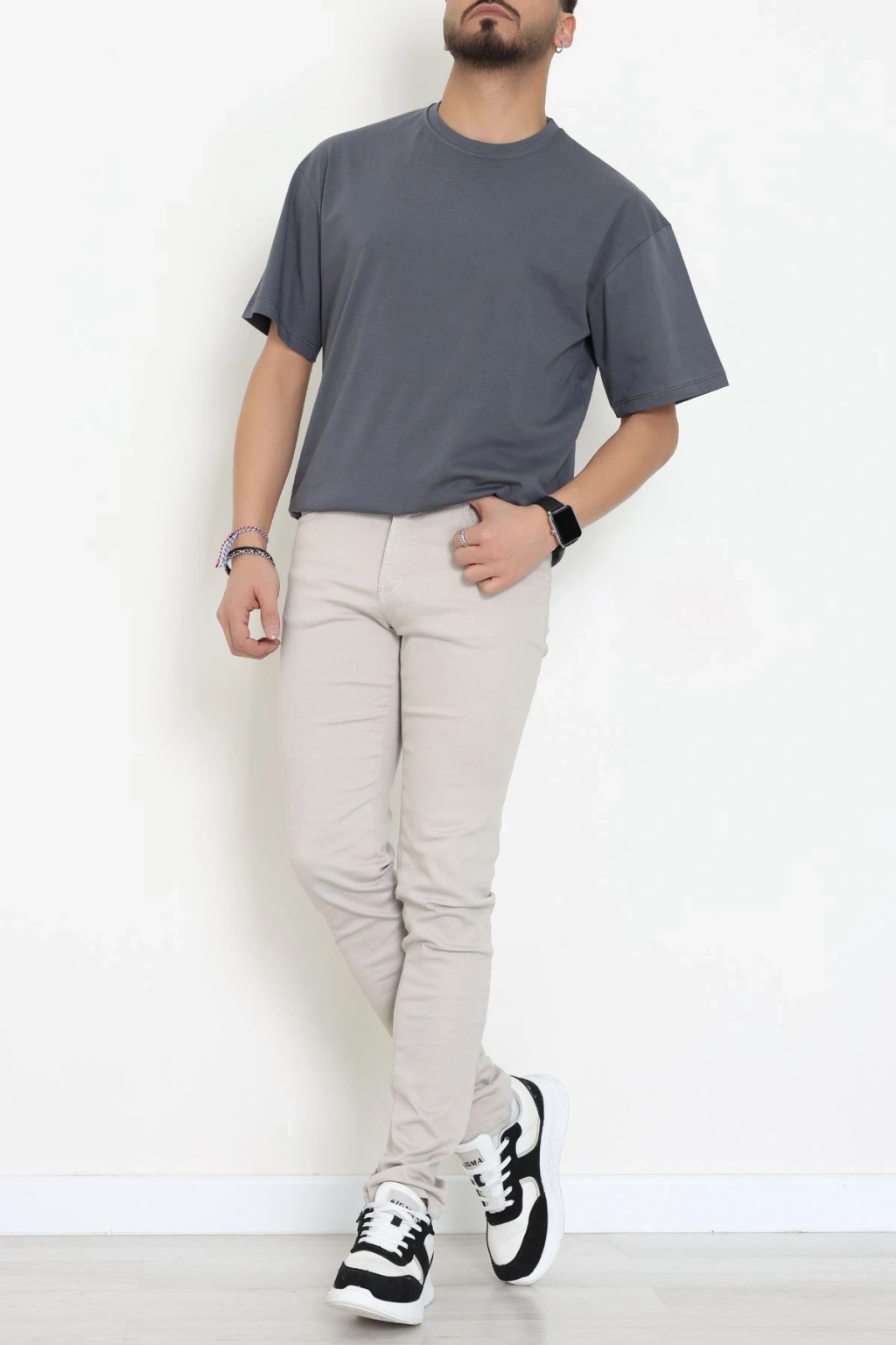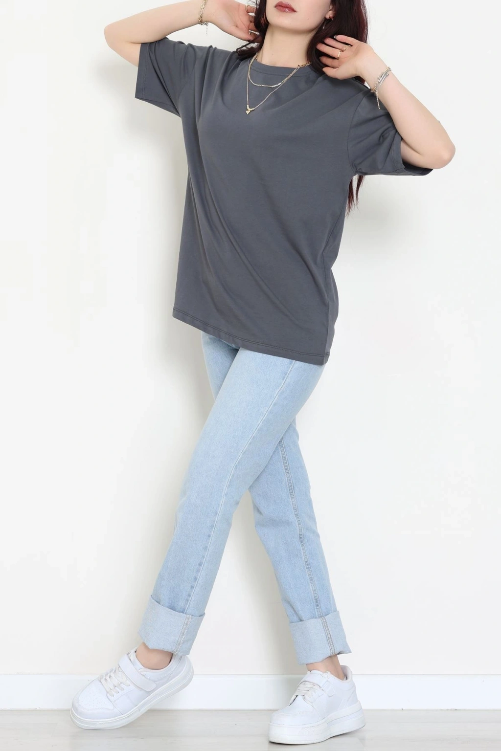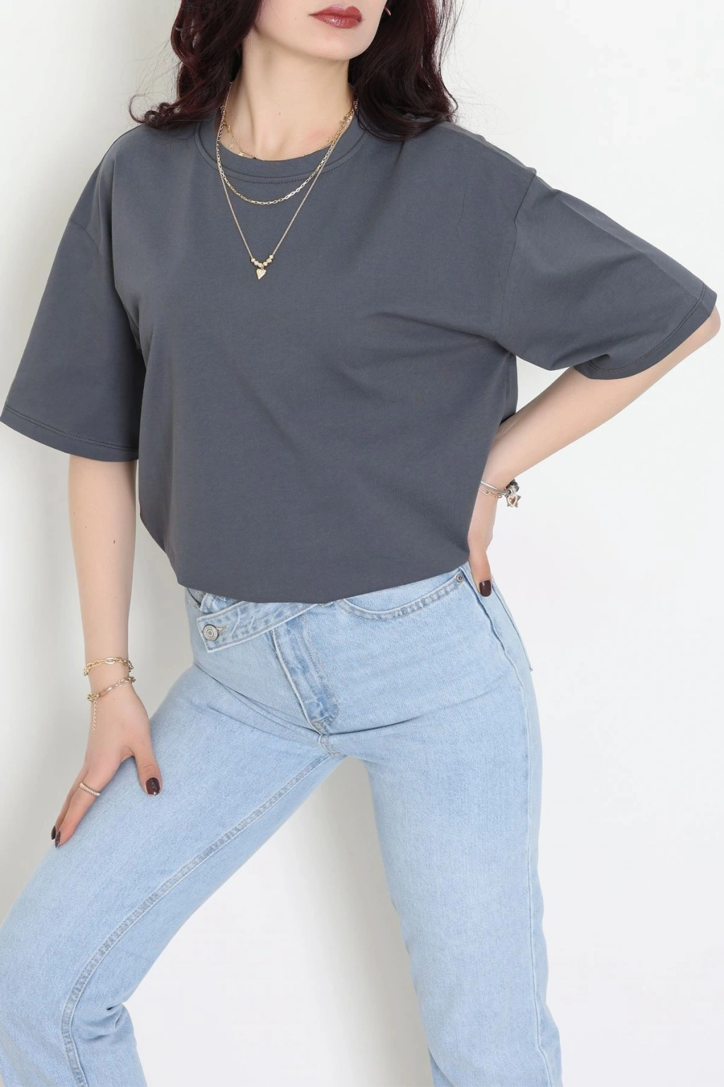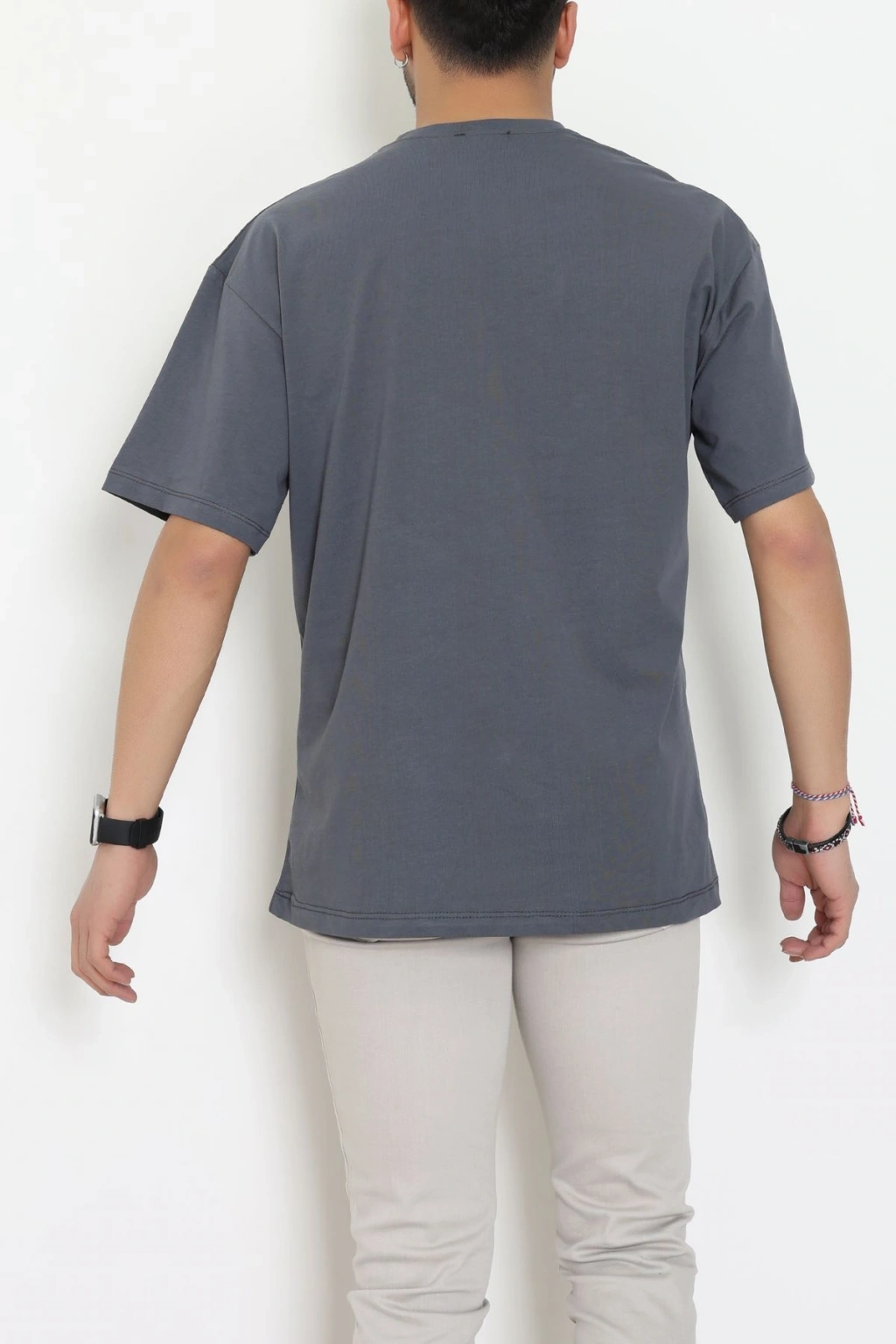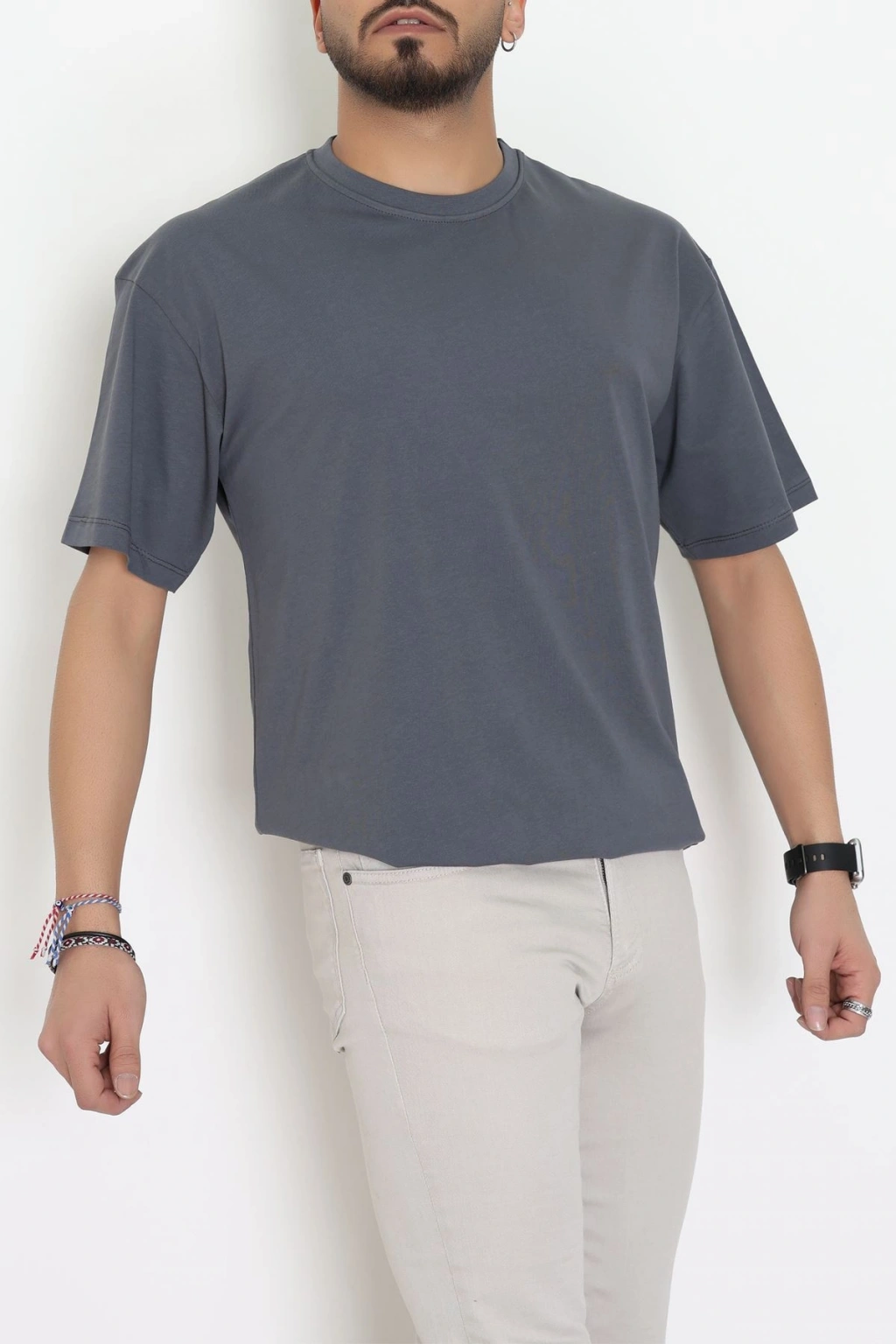 Kompak Penye Ünisex Baskısız Oversize Tişört Antrasit - 55045.1872.