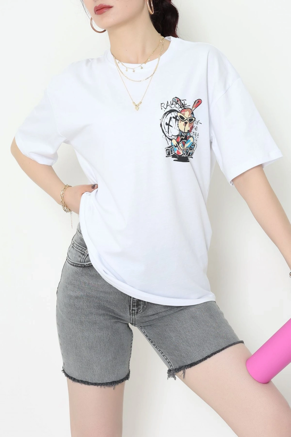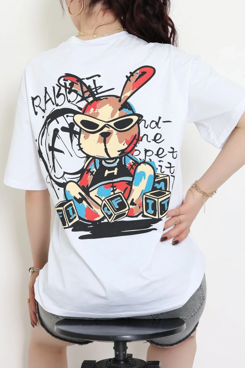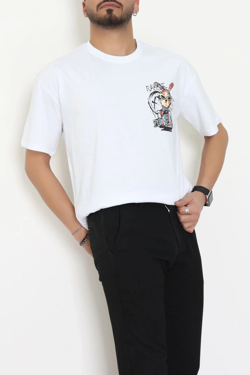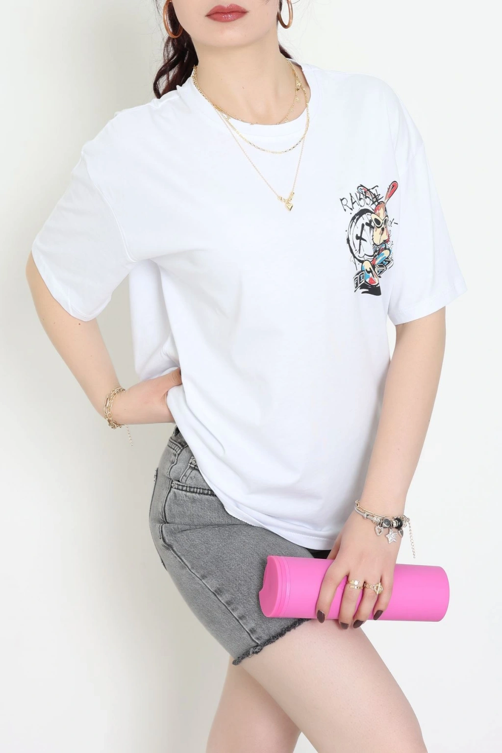 Kompakt Penye Unisex Tişört Beyazkırmızı - 55064.1872.