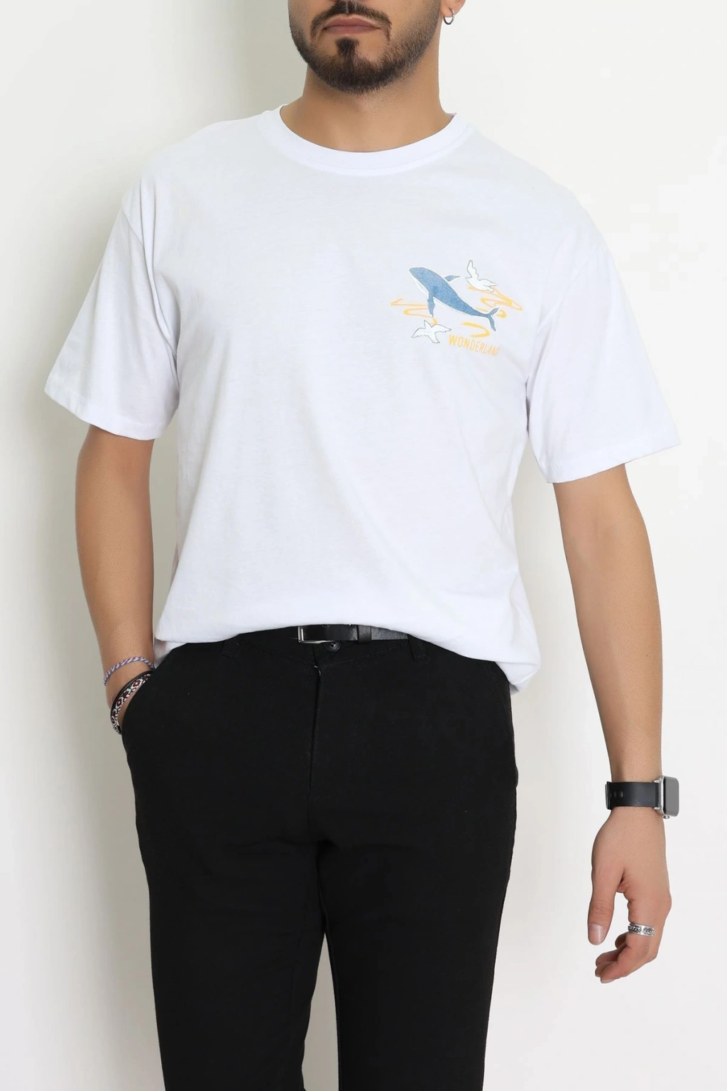 Kompakt Penye Unisex Tişört Beyazmavi - 55064.1872.