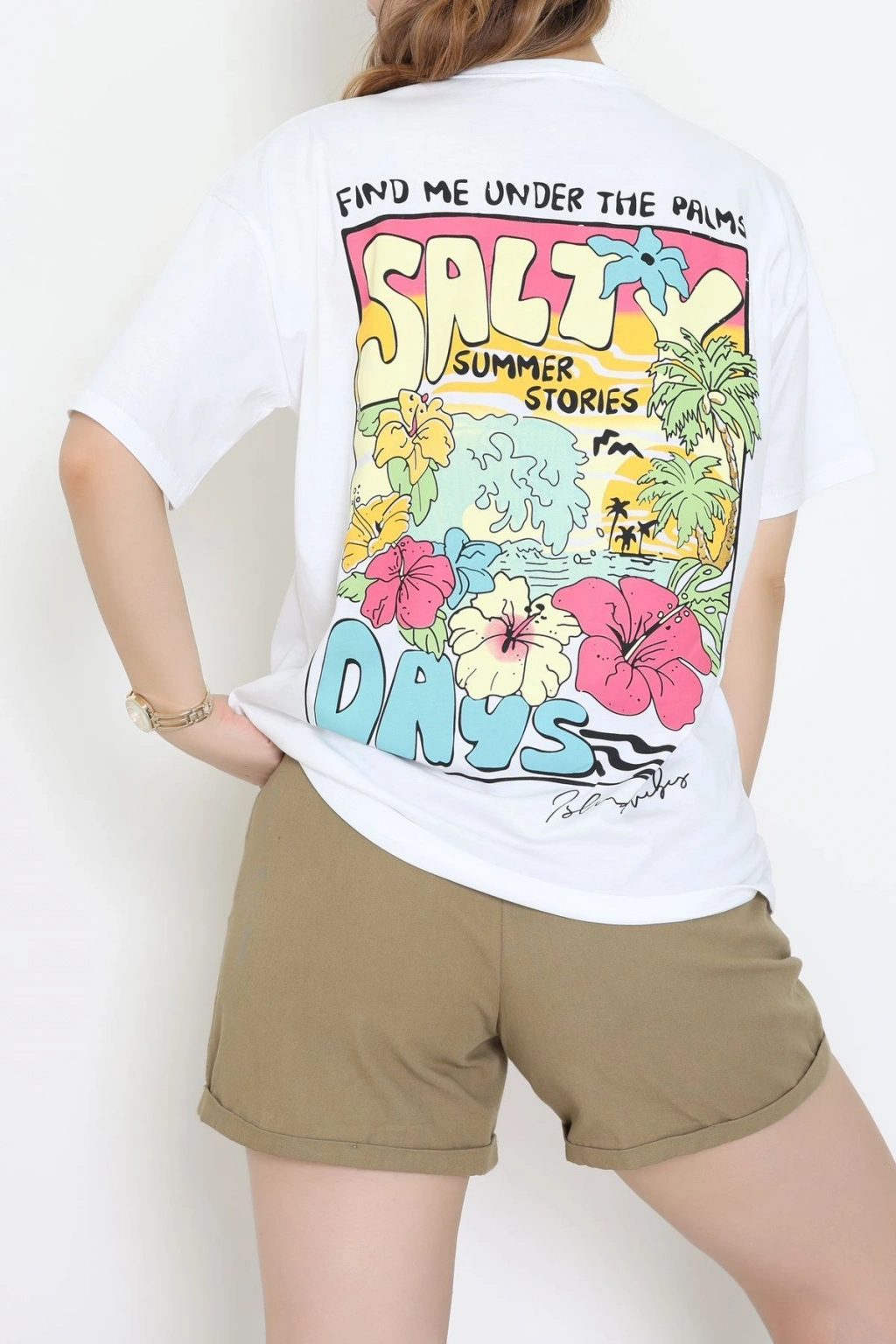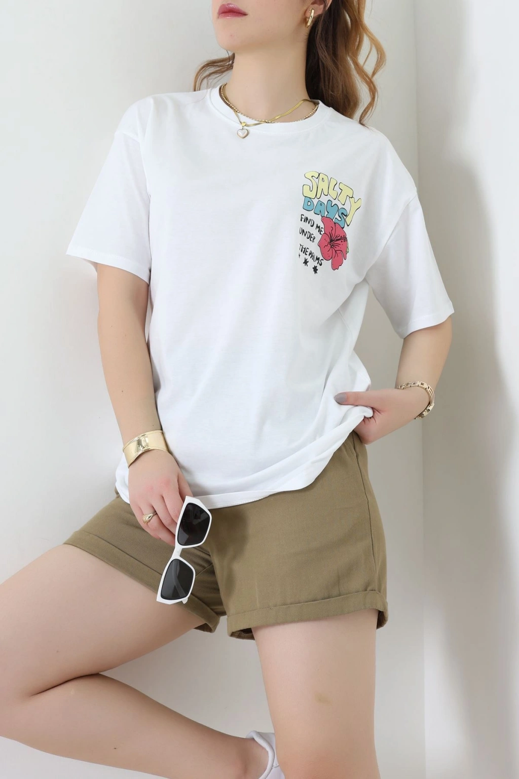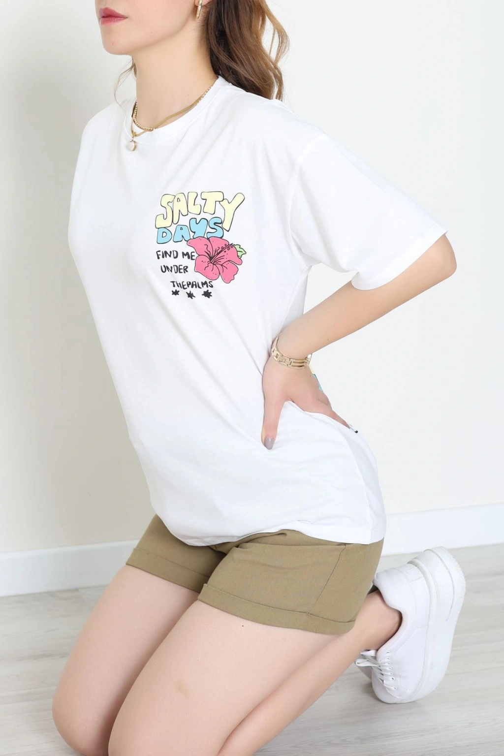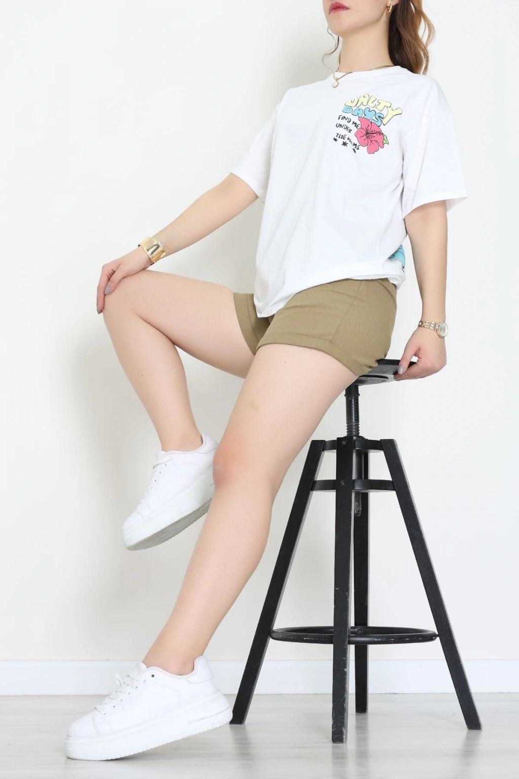 Kompakt Penye Unisex Tişört Beyazsarı - 55064.1872.