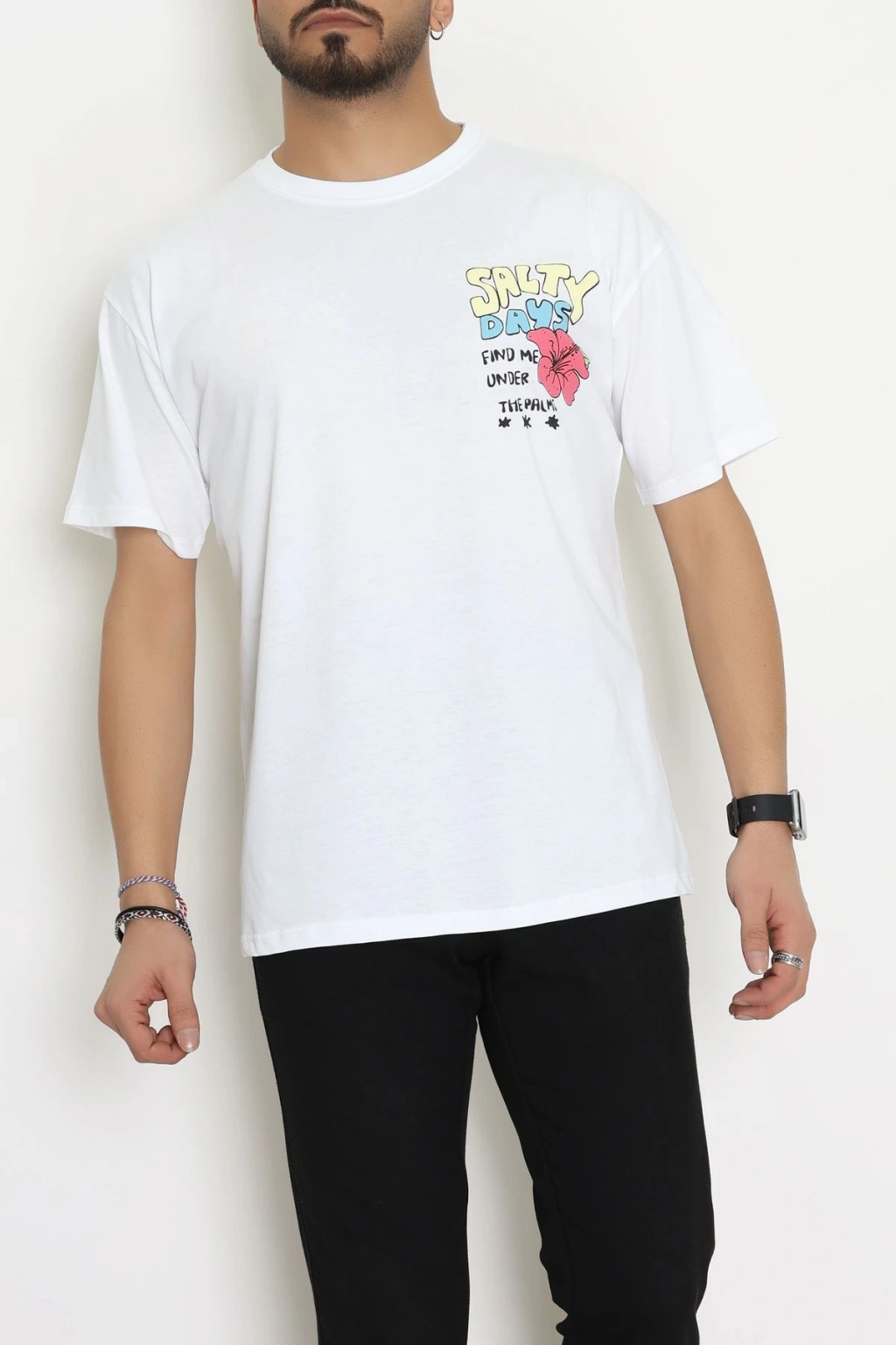 Bisiklet Yaka Çizgili Rejenere Süprem Tişört Beyazsaks - 601.1567.