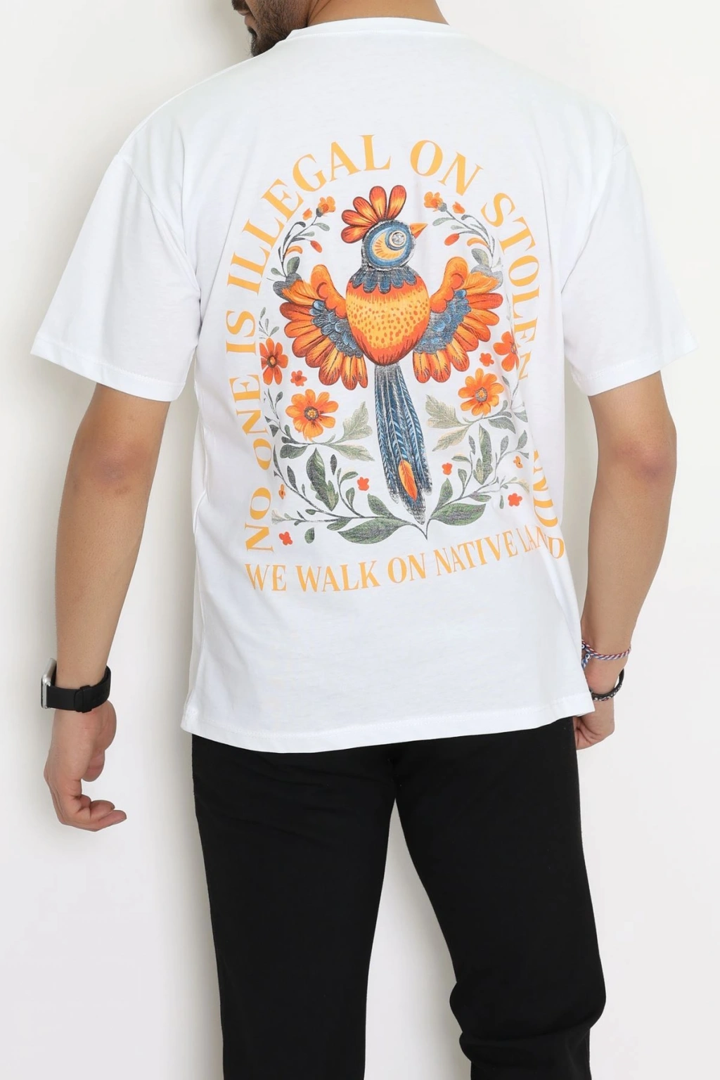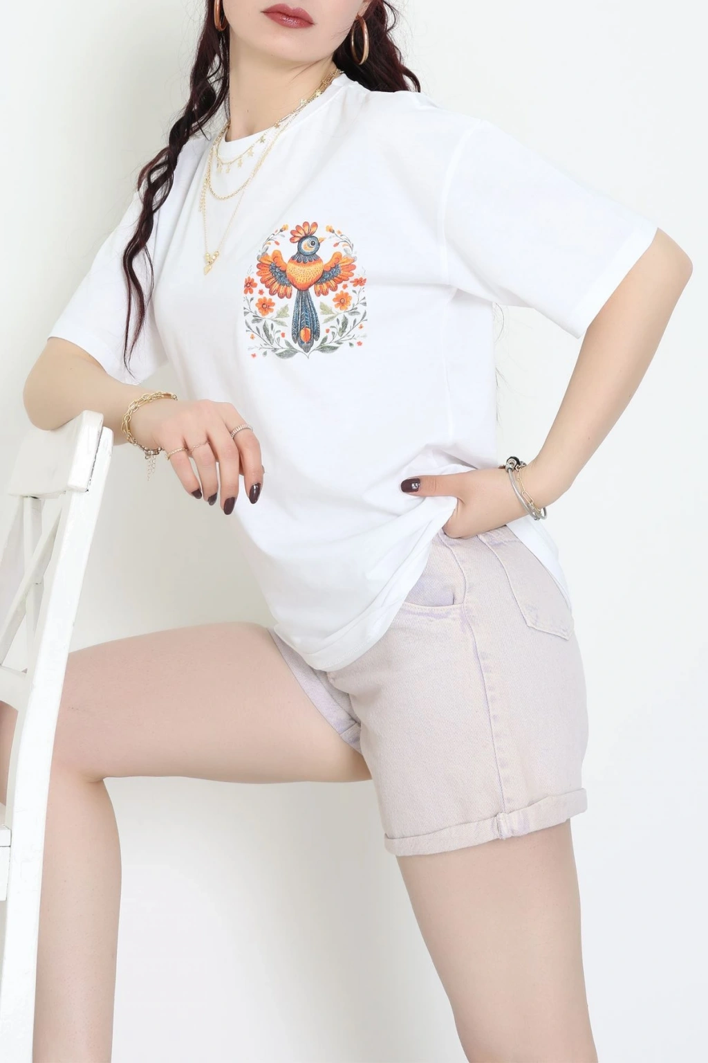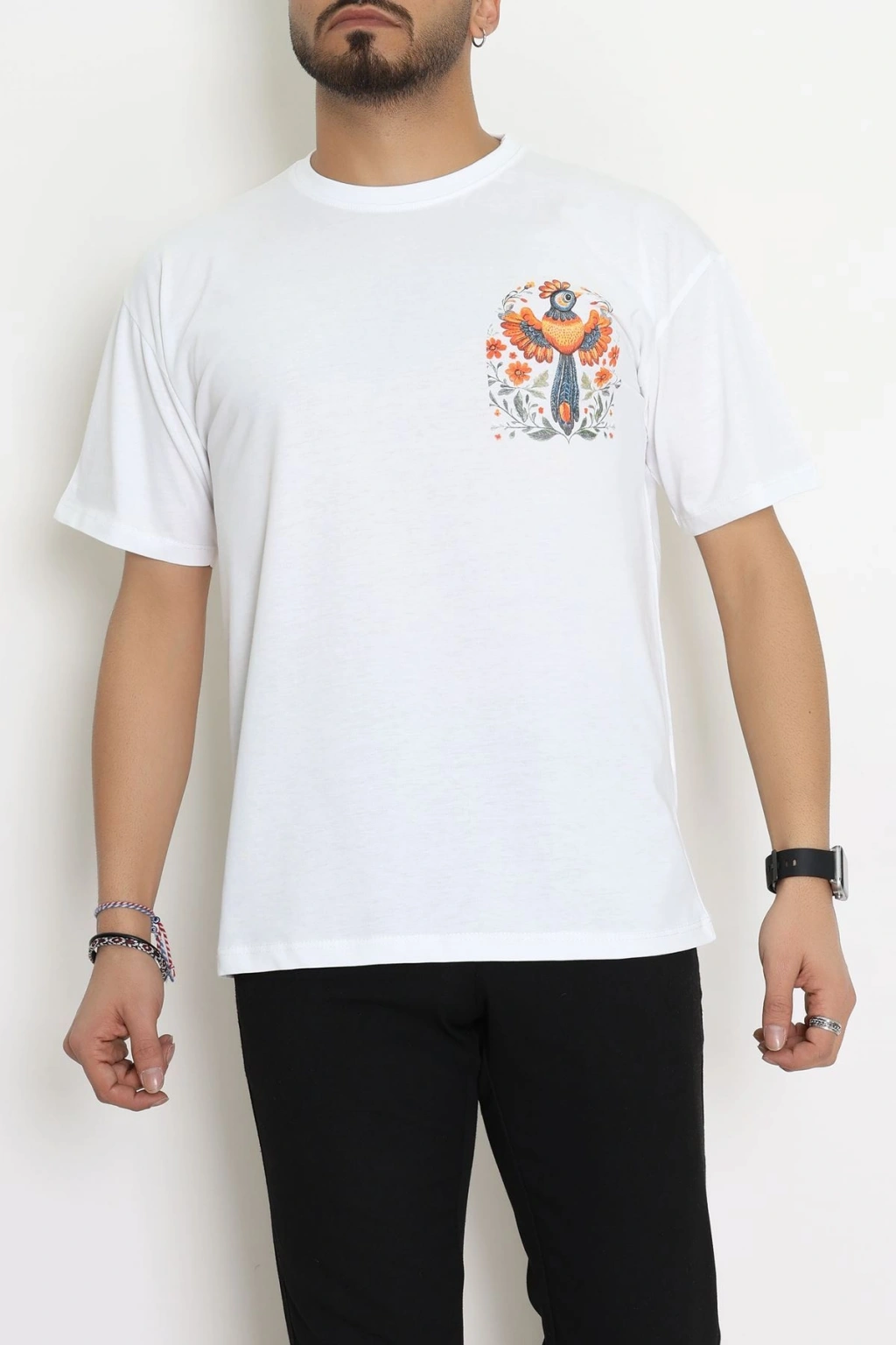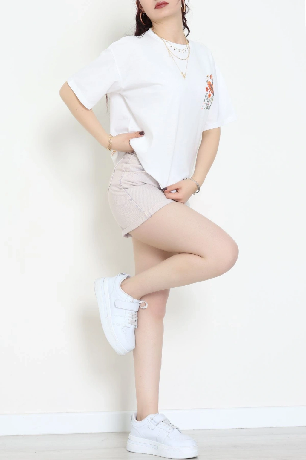 Kompakt Penye Unisex Tişört Beyazturuncu - 55064.1872.