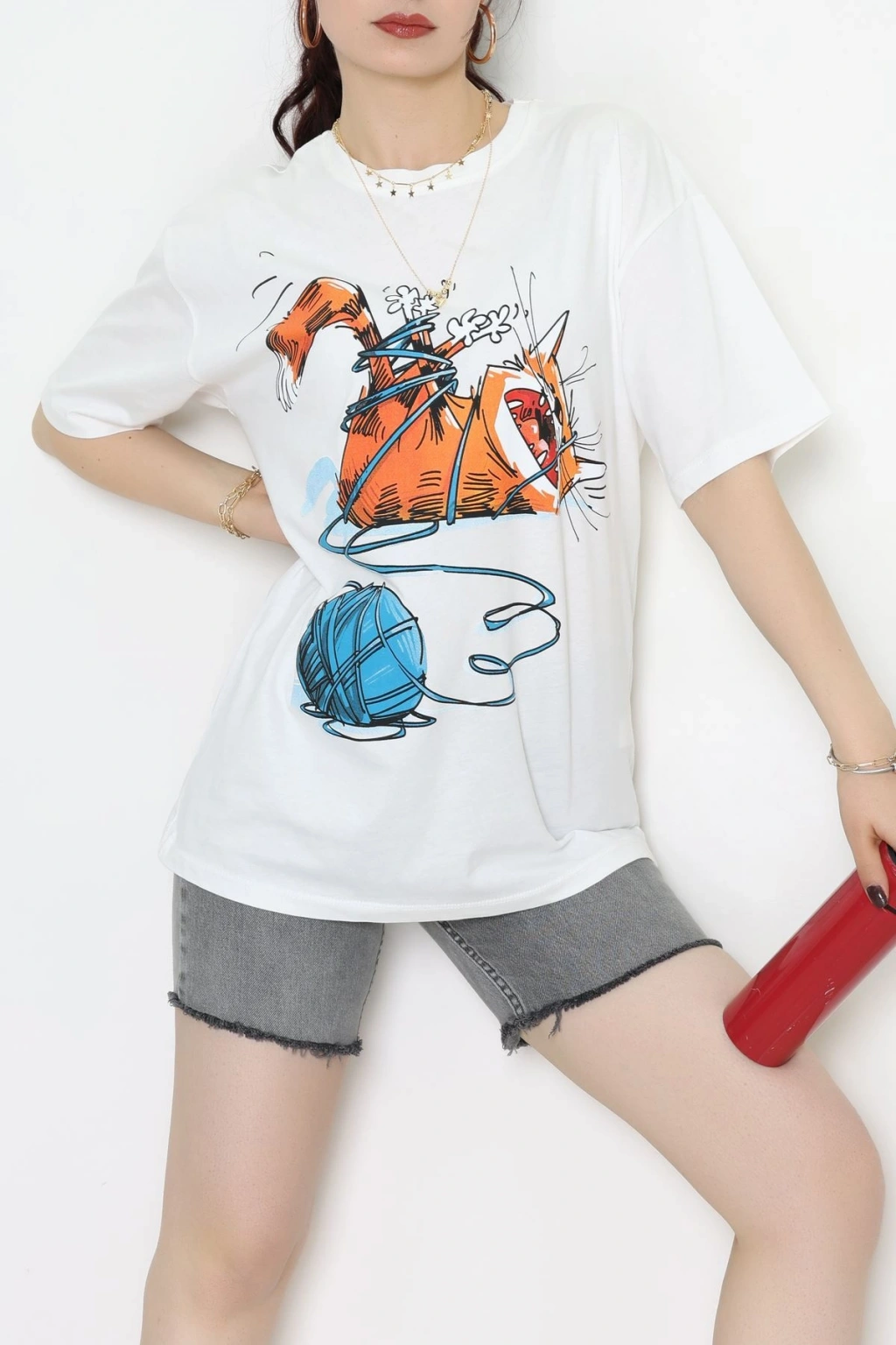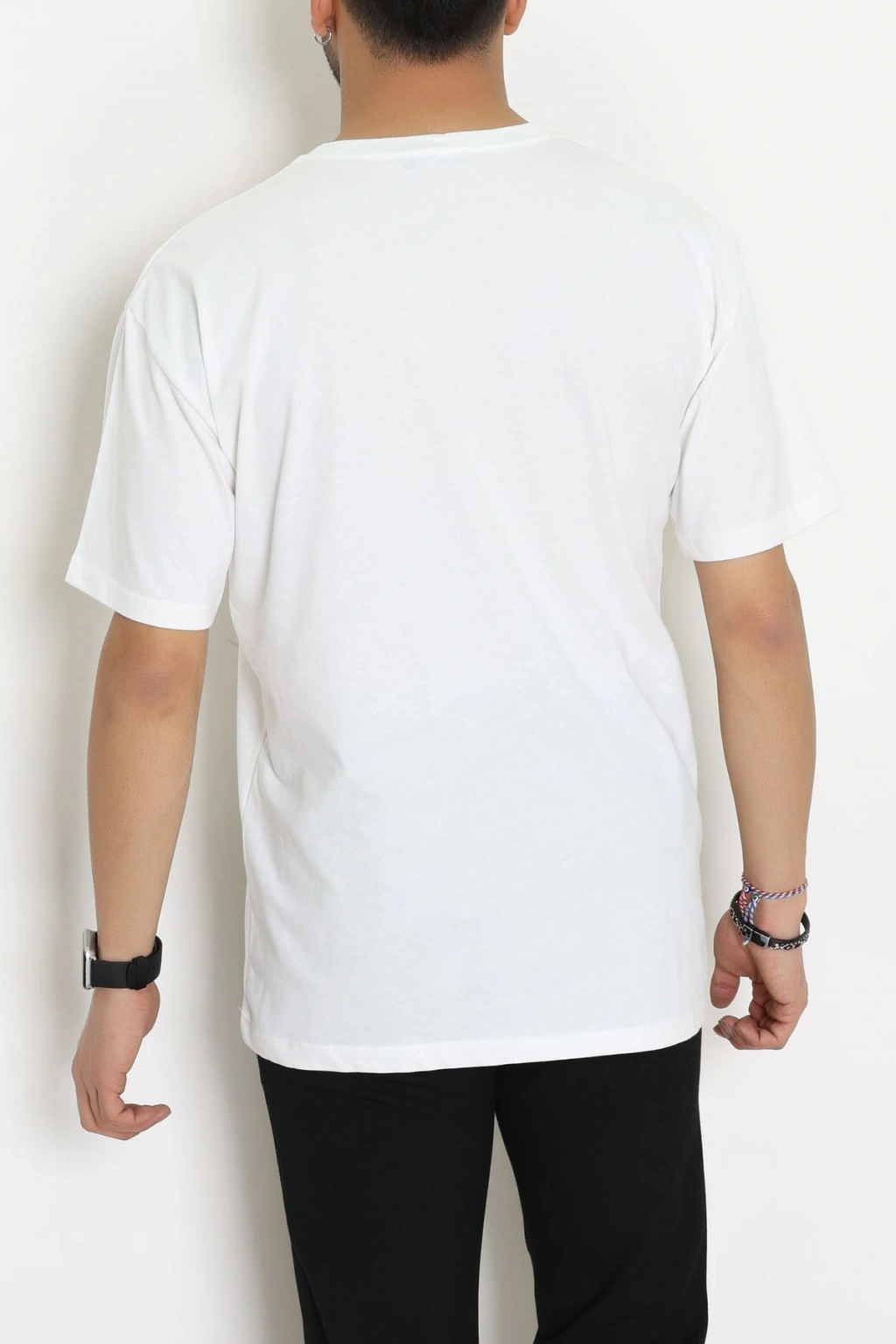 Bisiklet Yaka Çizgili Rejenere Süprem Tişört Beyazsaks - 601.1567.