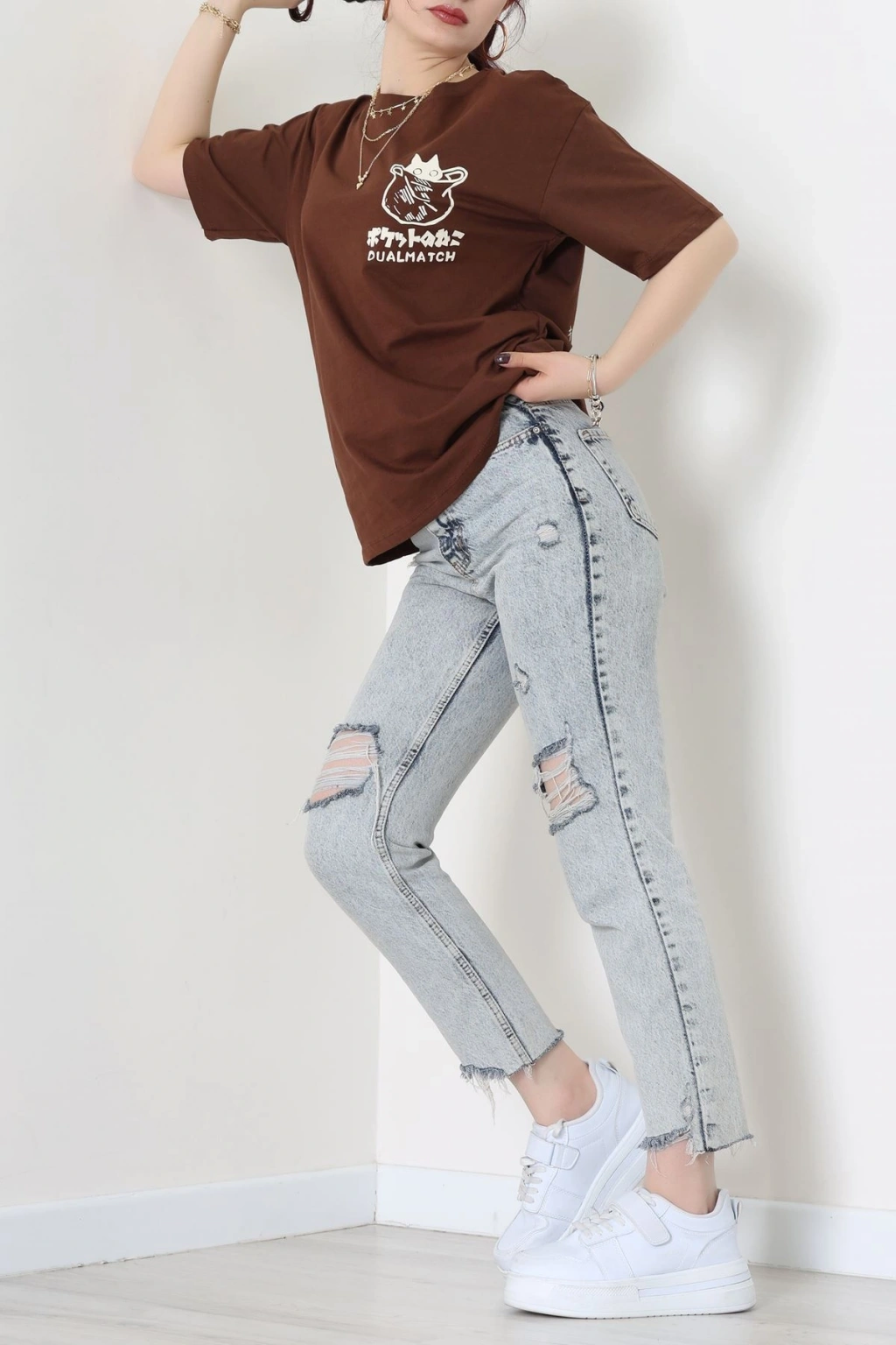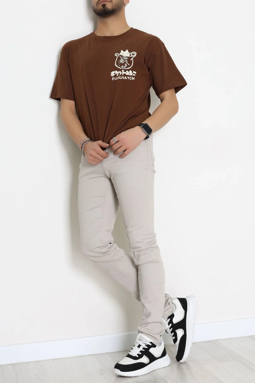 Kompakt Penye Unisex Tişört Kremkahve - 55064.1872.