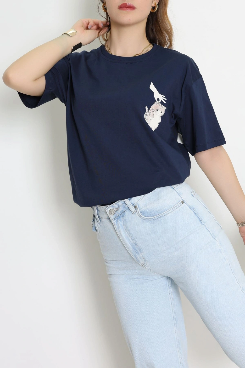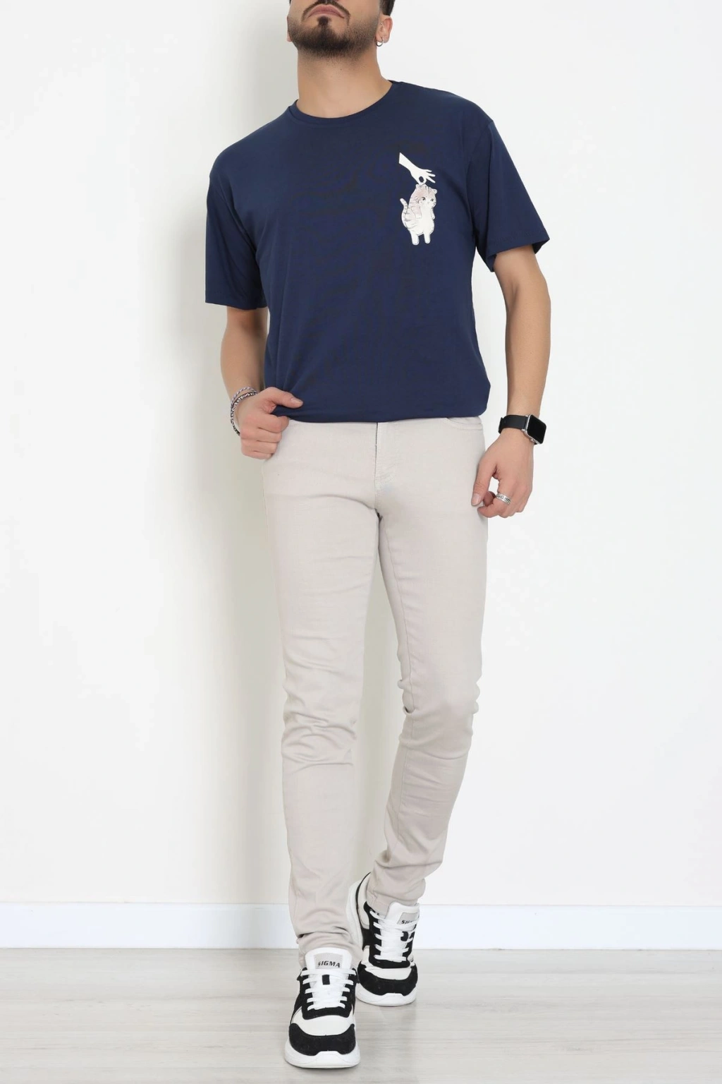 Kompakt Penye Unisex Tişört Lacivertkrem - 55064.1872.