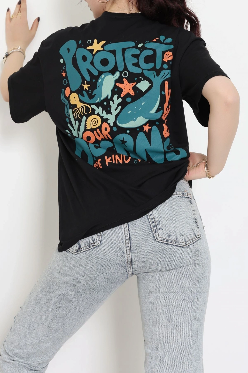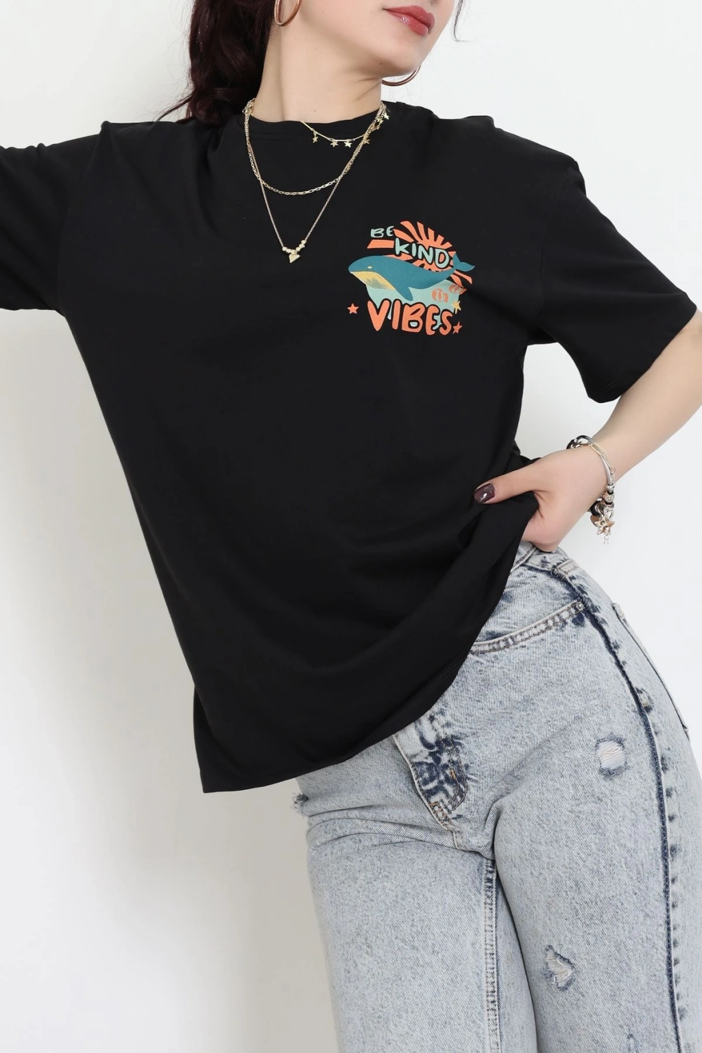 Kompakt Penye Unisex Tişört Siyahoranj - 55064.1872.
