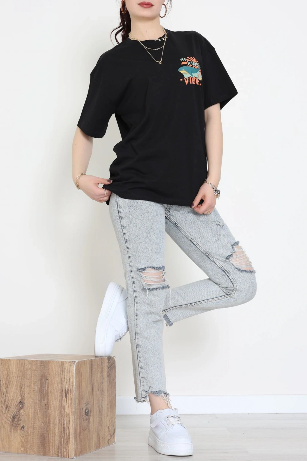 V Yaka Fermuarlı Rejenere Süprem Tişört Siyahbeyaz - 600.1567.