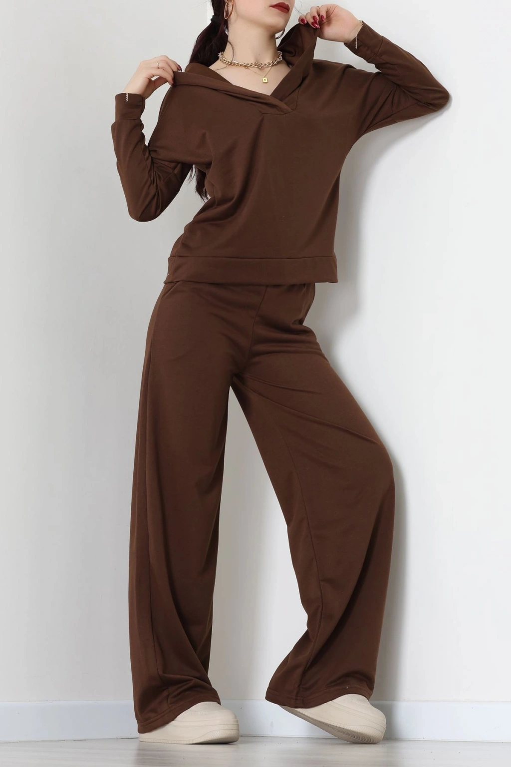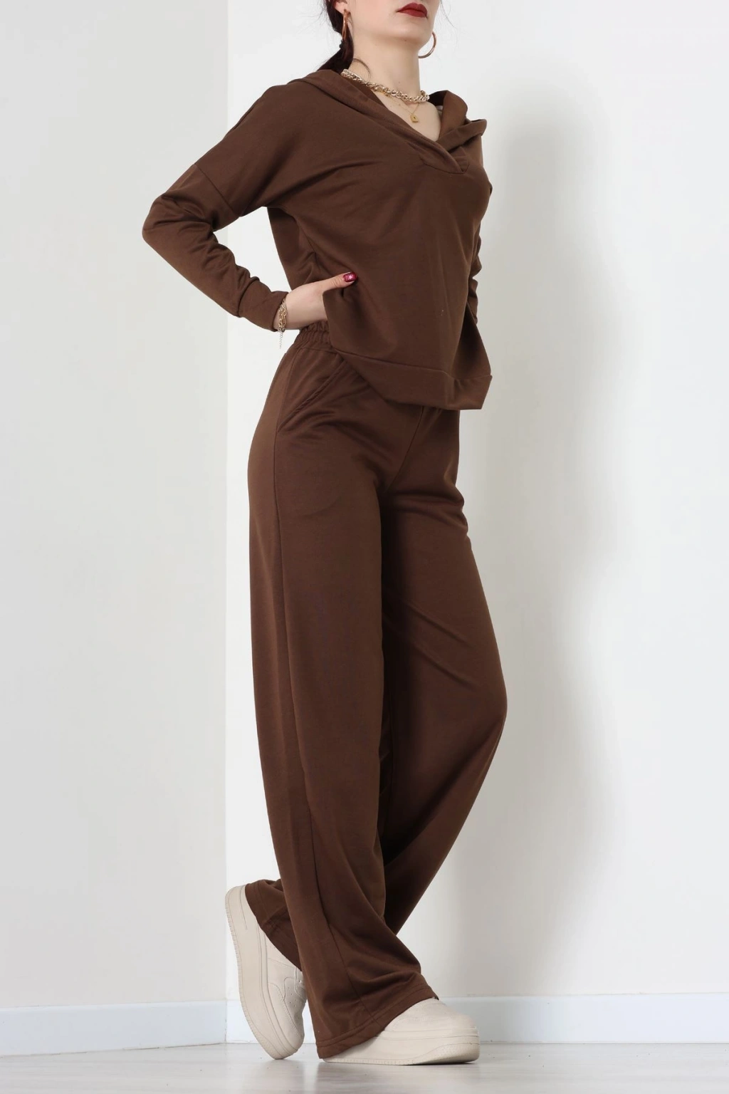 Kruvaze Yaka Kapşonlu Takım Kahve - 30094.1857.