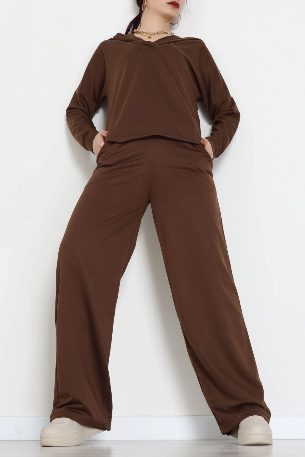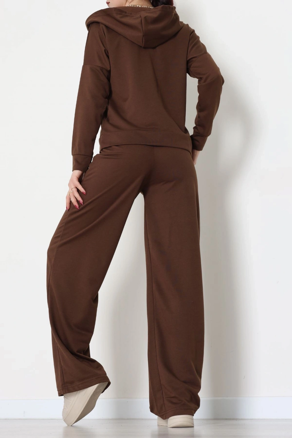 Üç İplik Crop Eşofman Takımı Kahve - 70778.1878.
