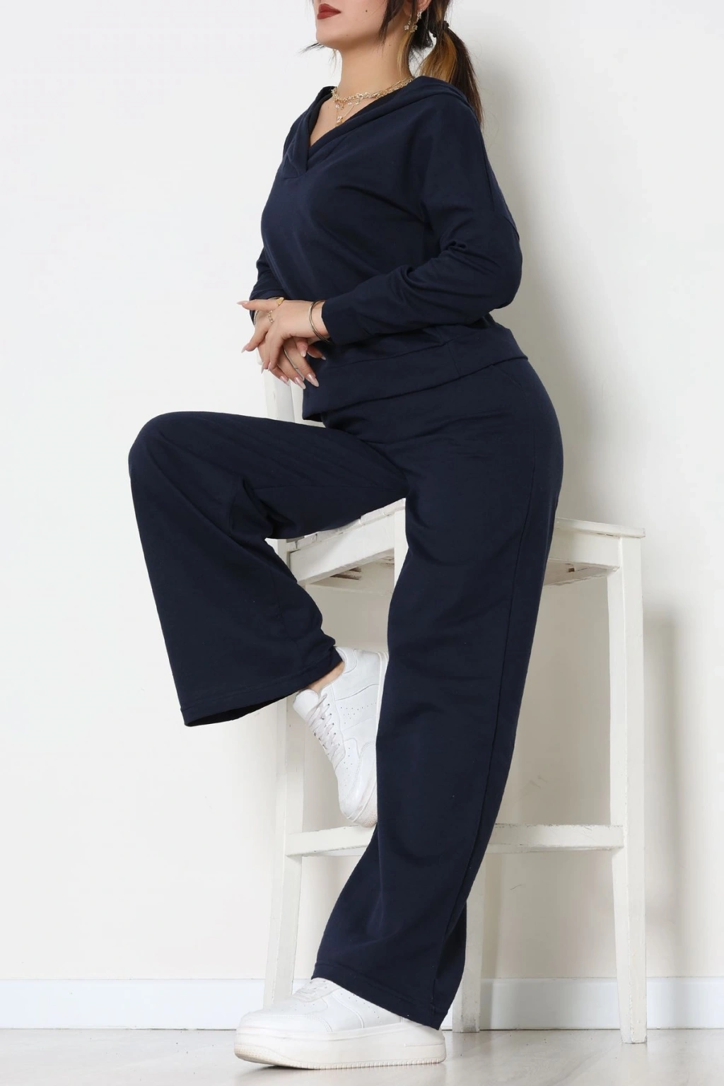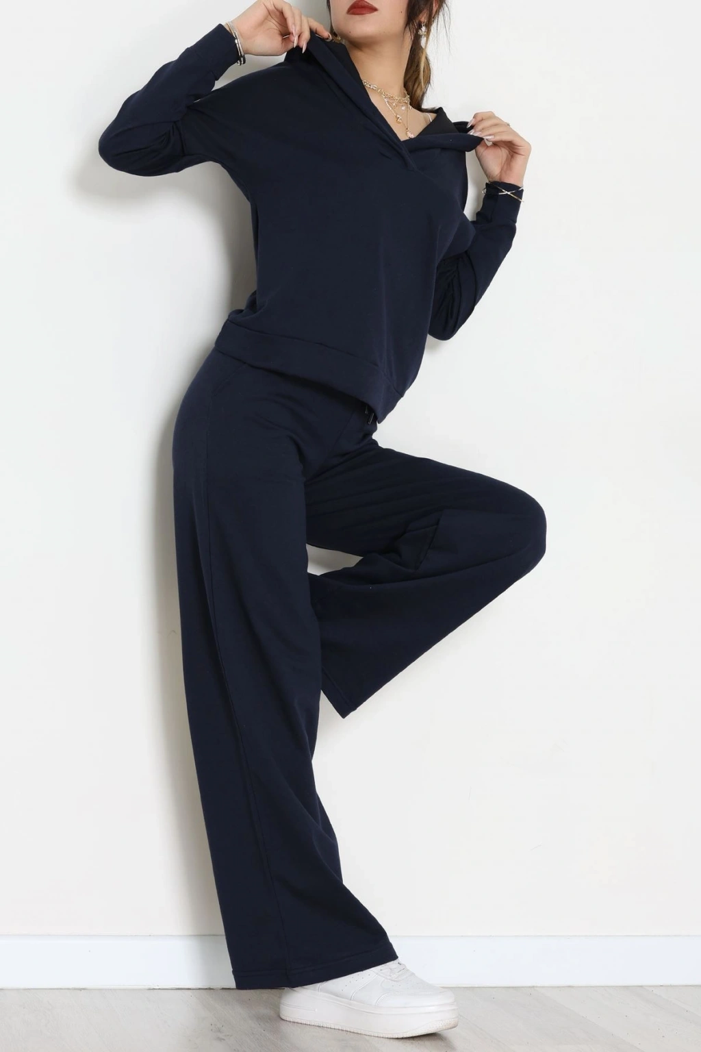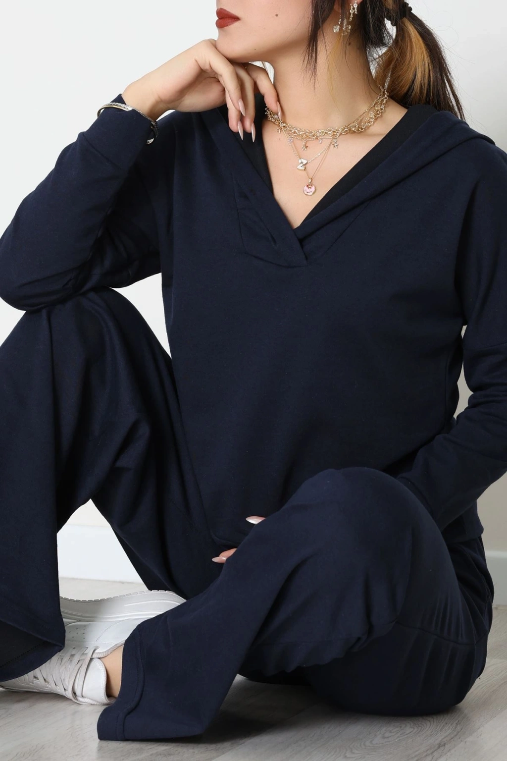 Kruvaze Yaka Kapşonlu Takım Lacivert - 30094.1857.