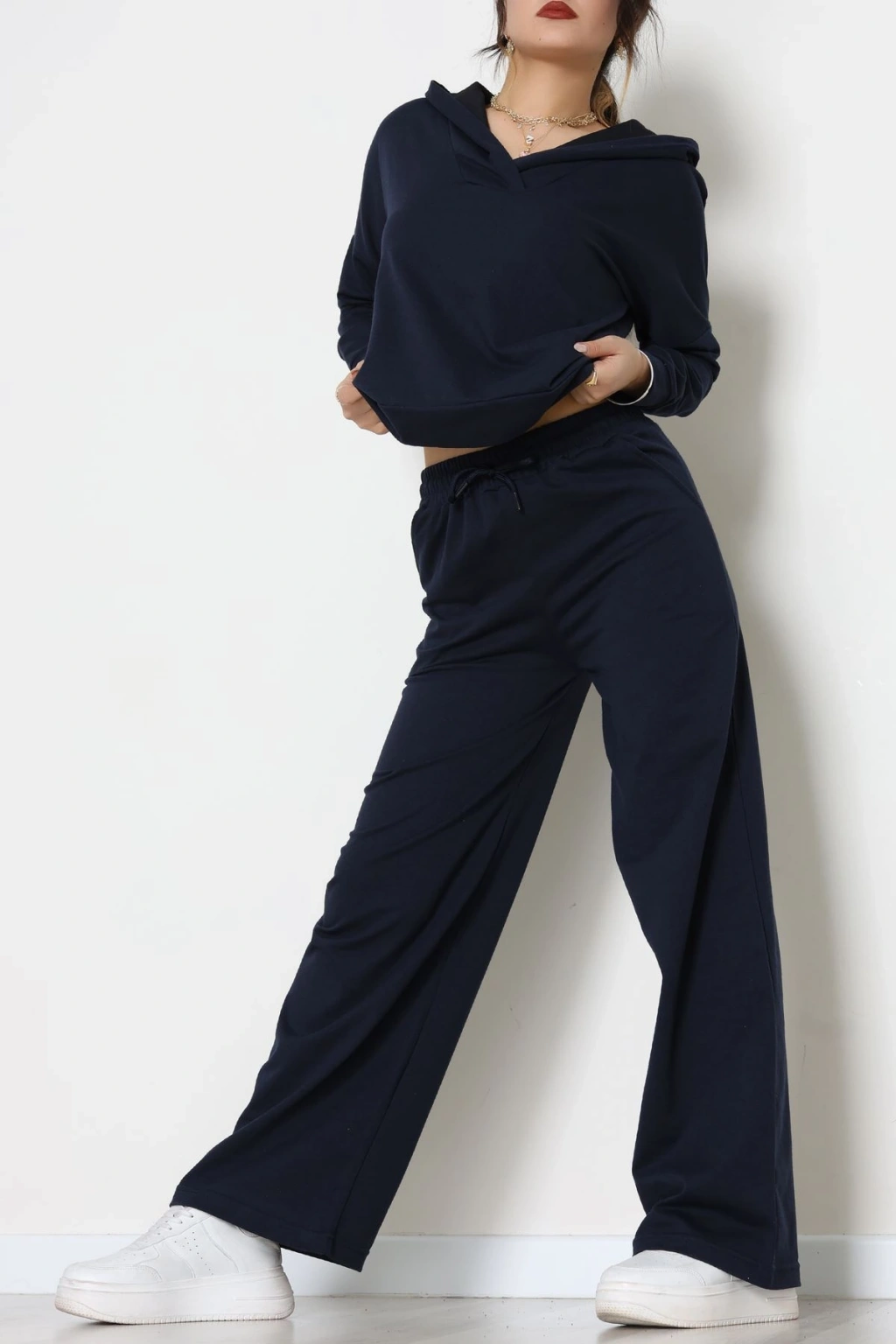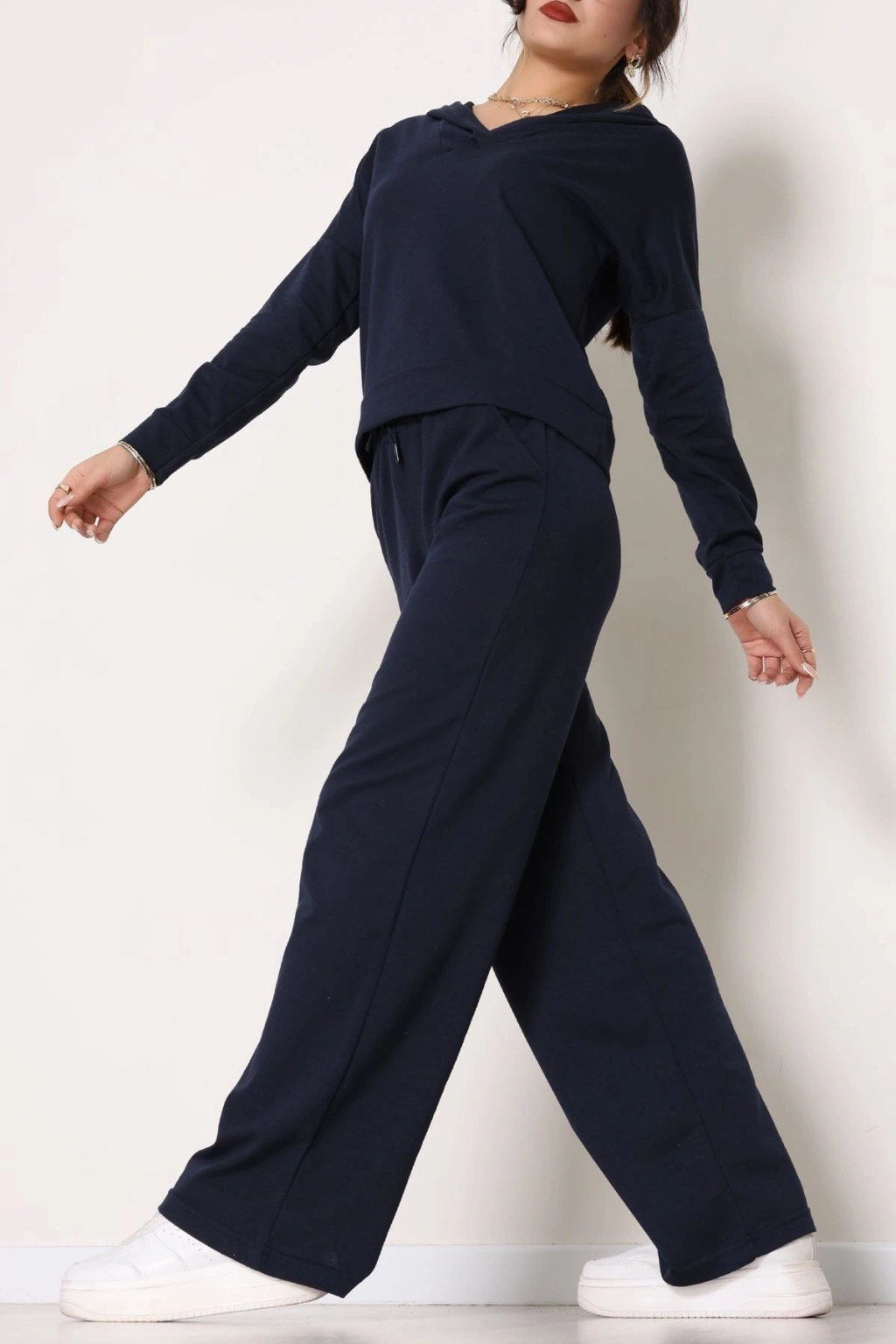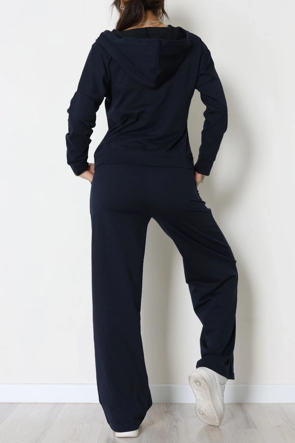 Kruvaze Yaka Kapşonlu Takım Lacivert - 30094.1857.