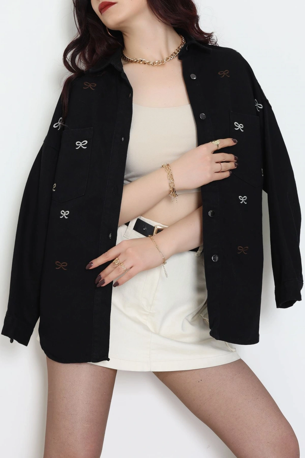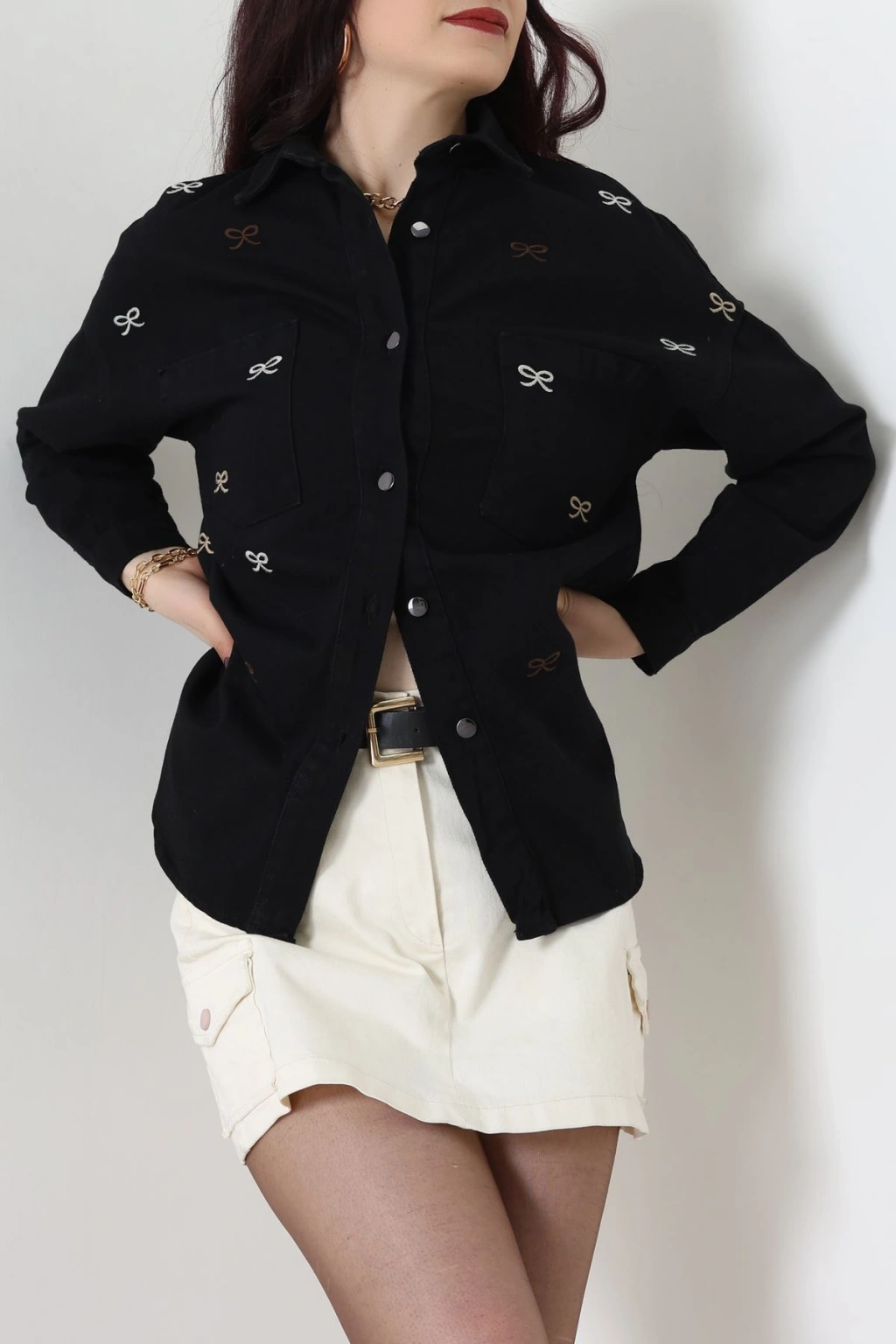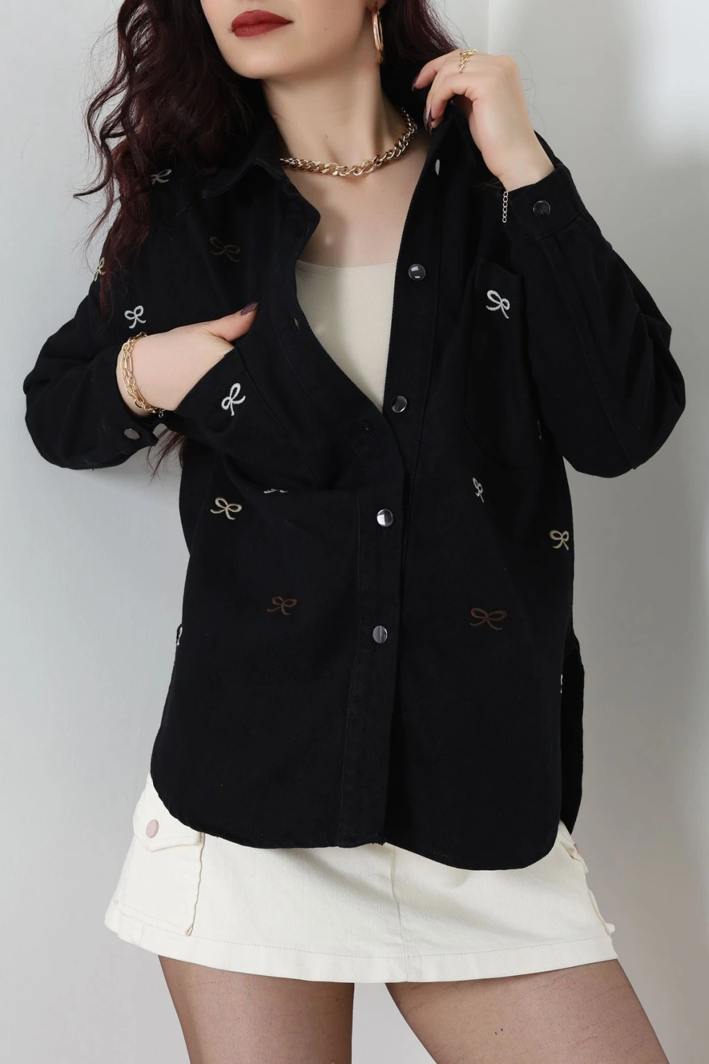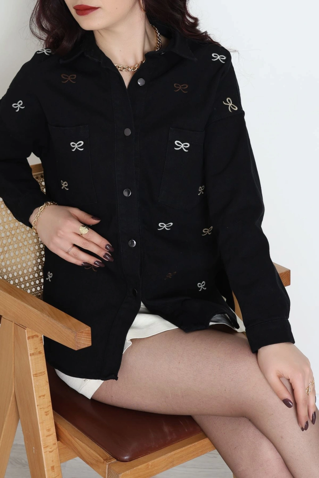 Kurdele Nakışlı Kot Ceket Siyah - 31785.683.