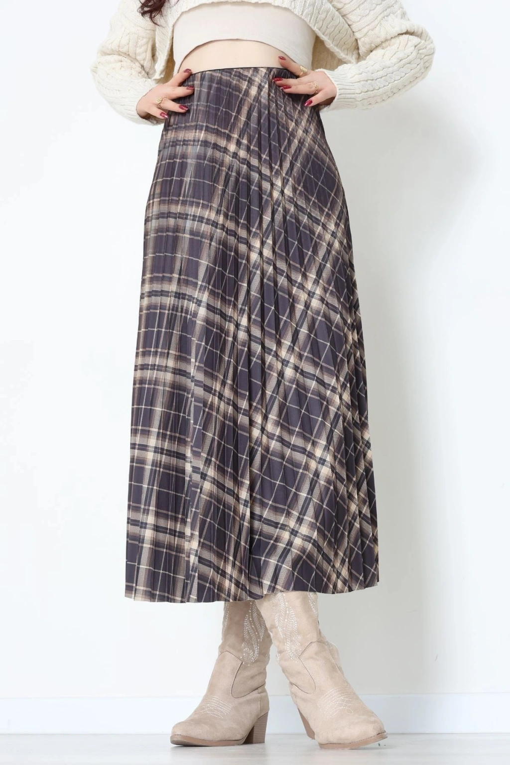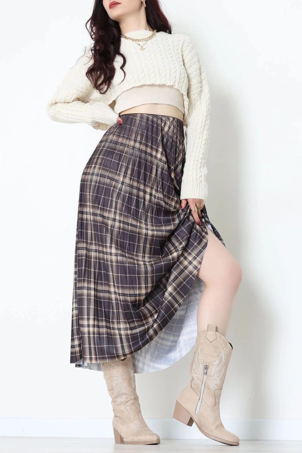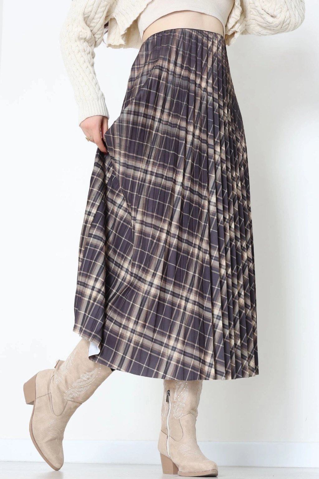 Laklı Denye Piliseli Ekose Etek Haki - 51252.2036.